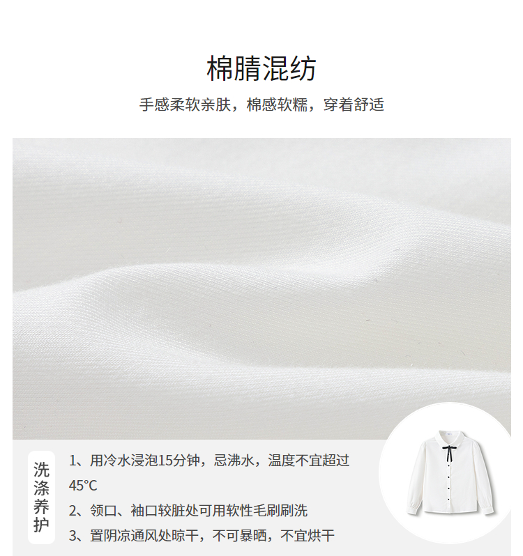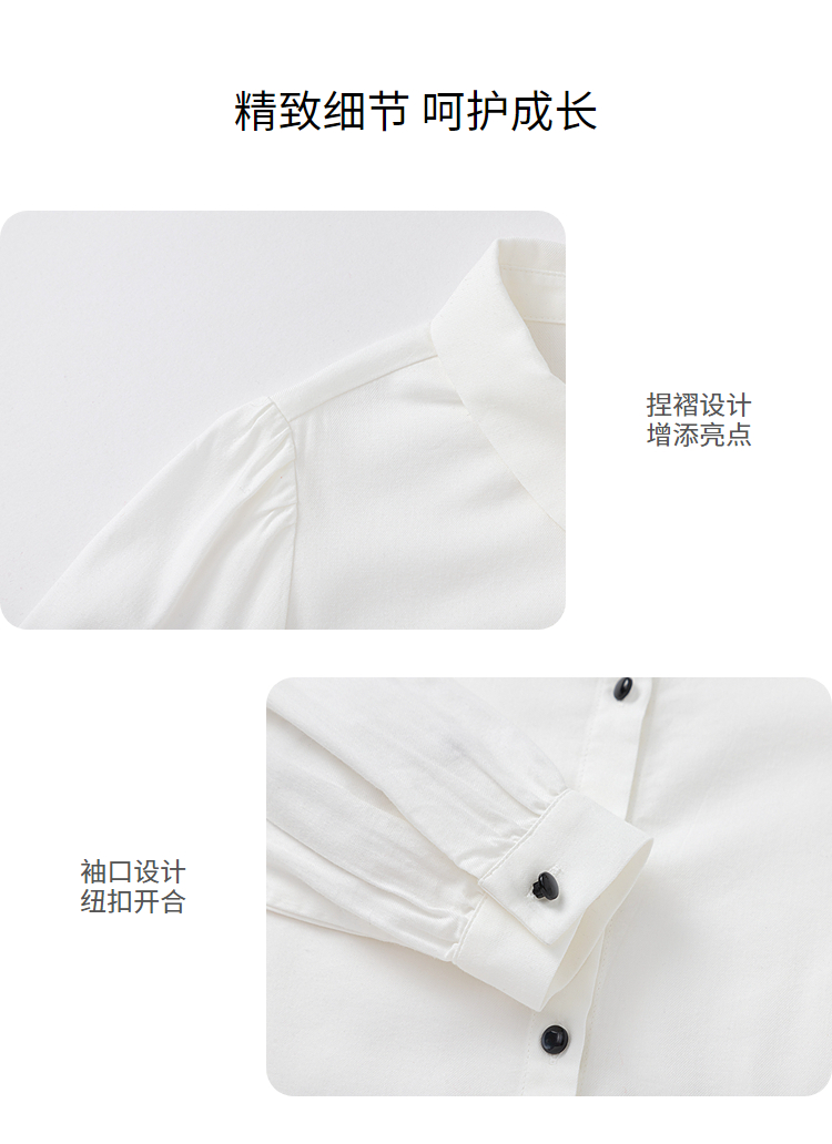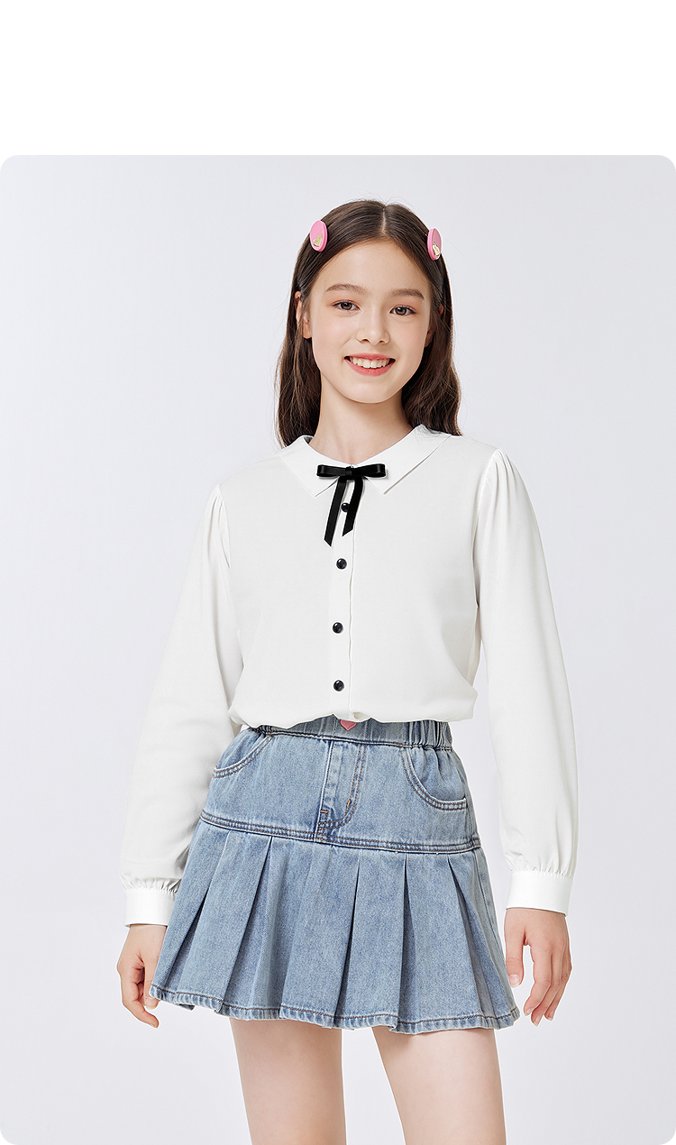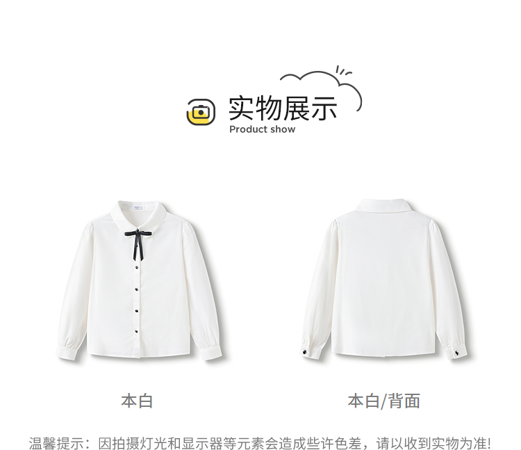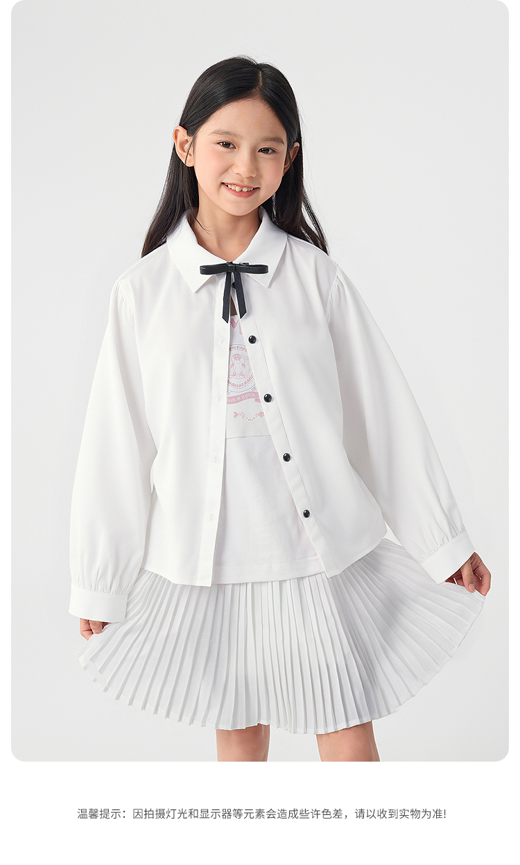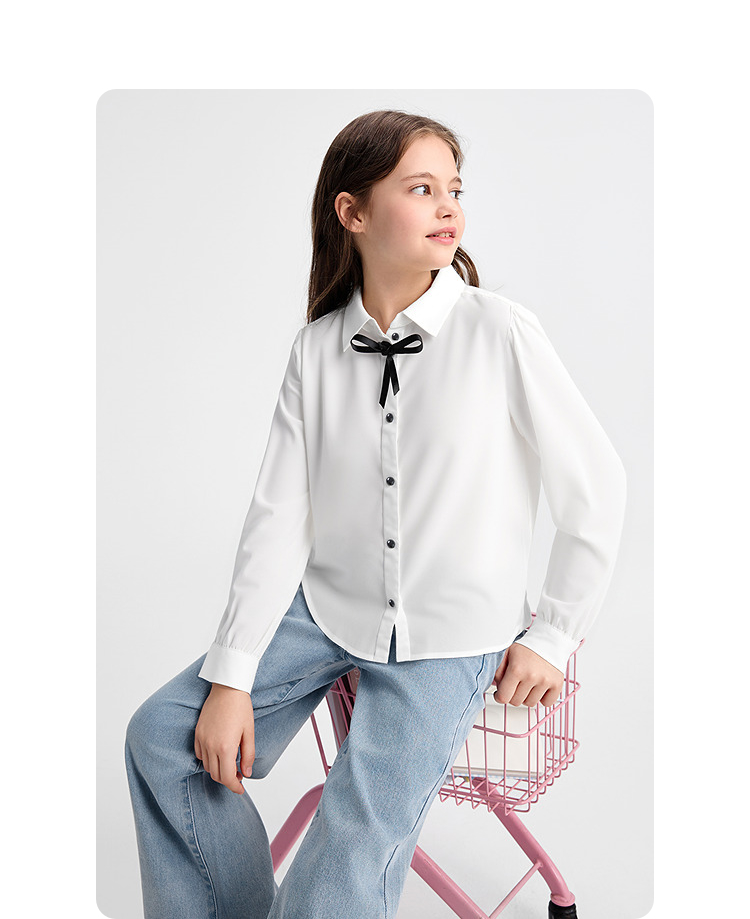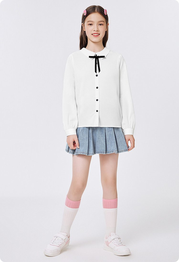 巴拉巴拉儿童长袖衬衫女童春装中大童学院风棉感白色衬衣柔软舒适