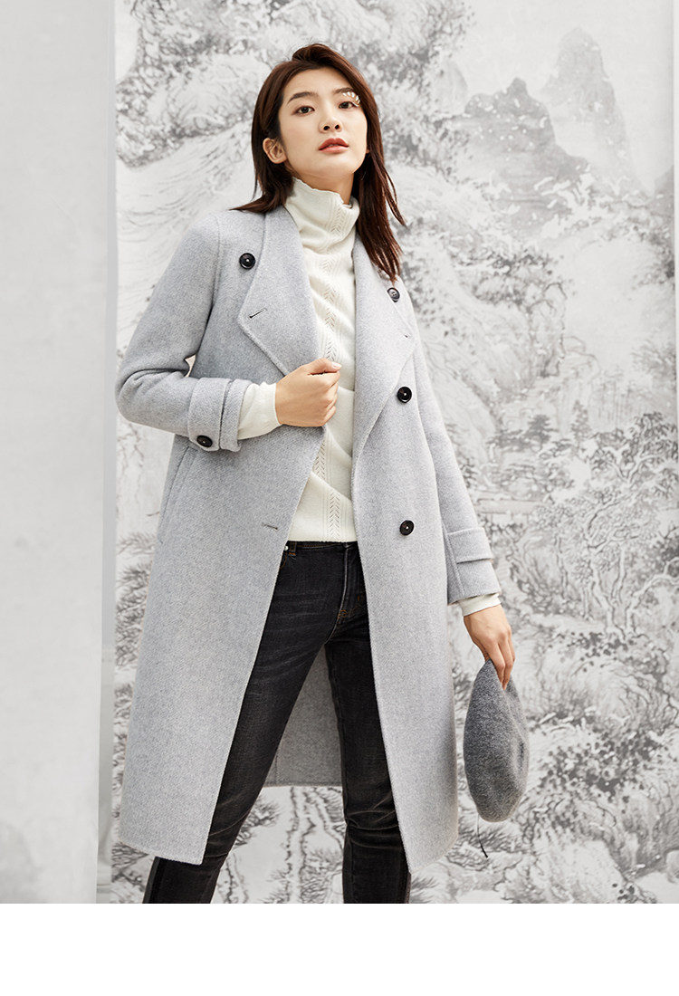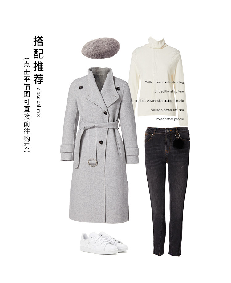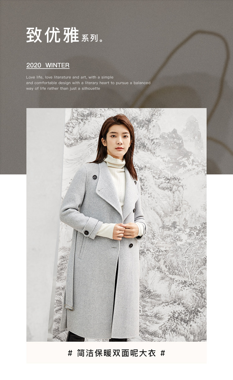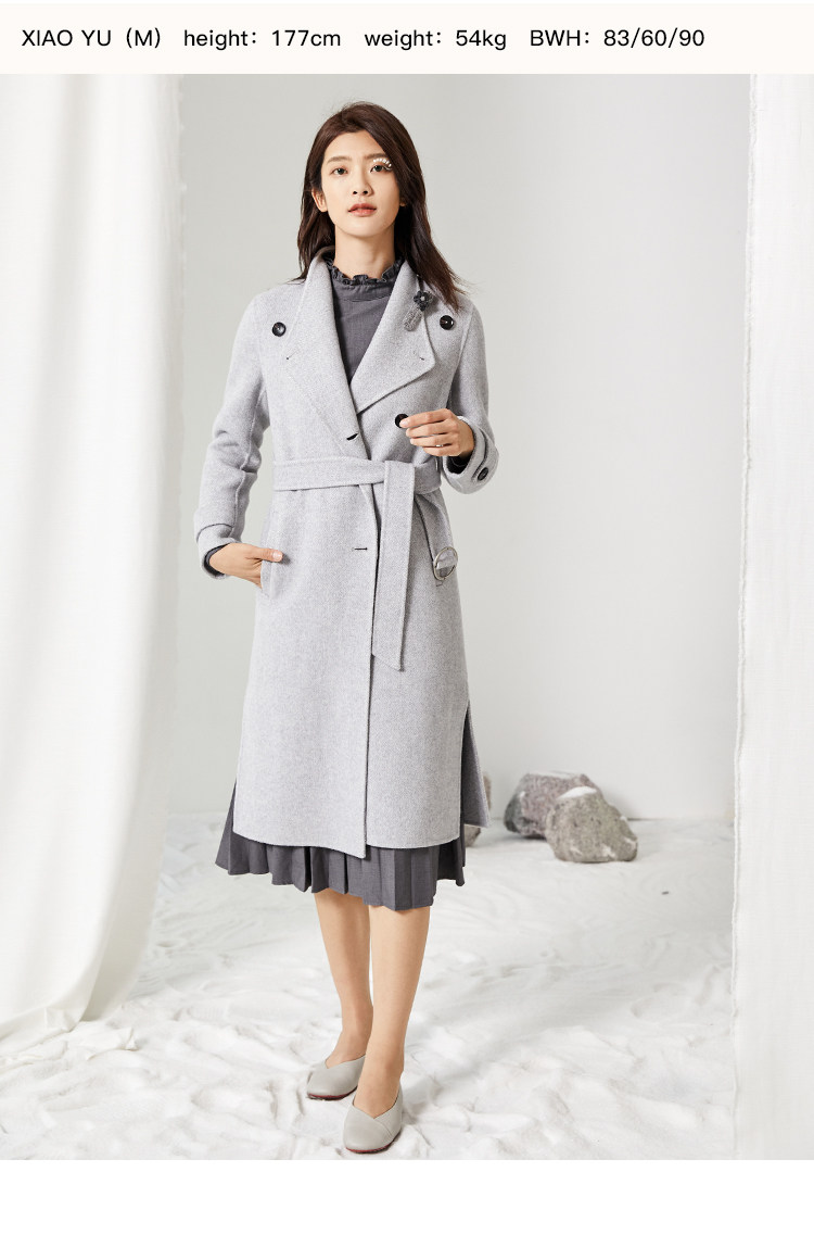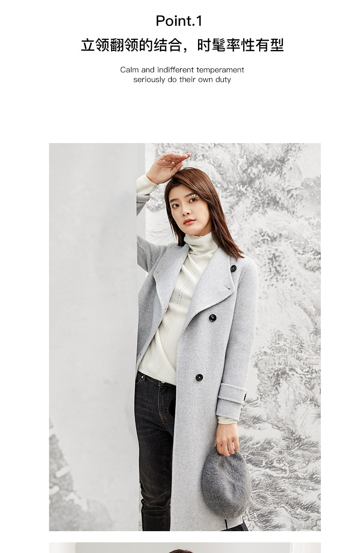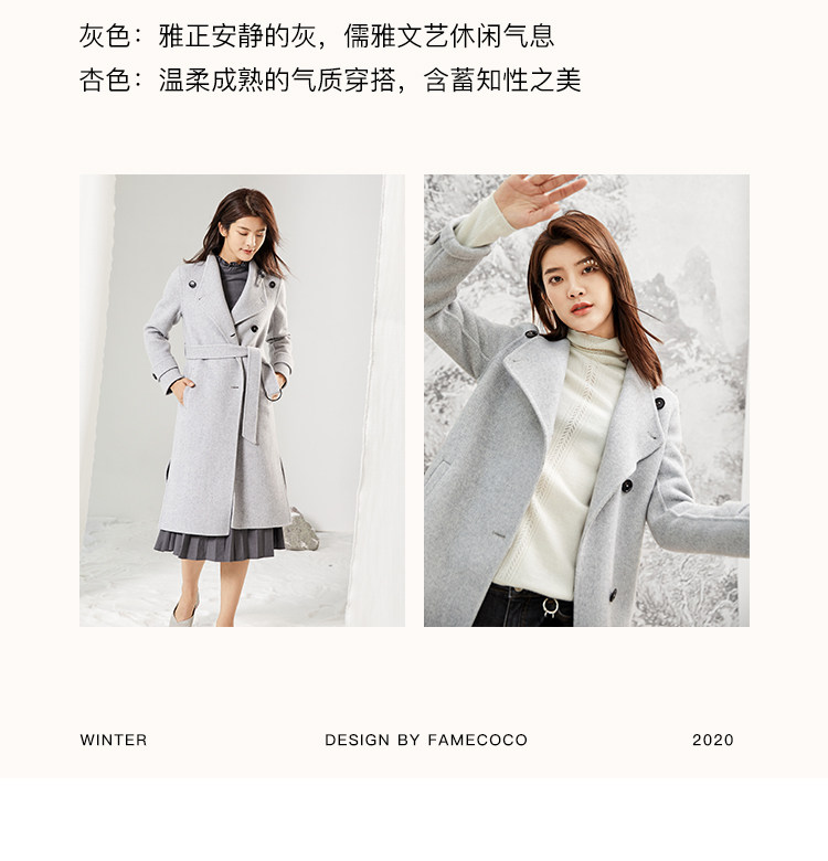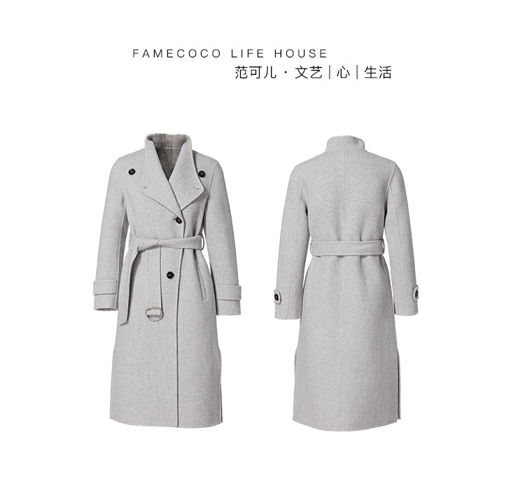 famecoco范可儿毛呢外套秋冬赫本风双面呢大衣中长款F208AC110