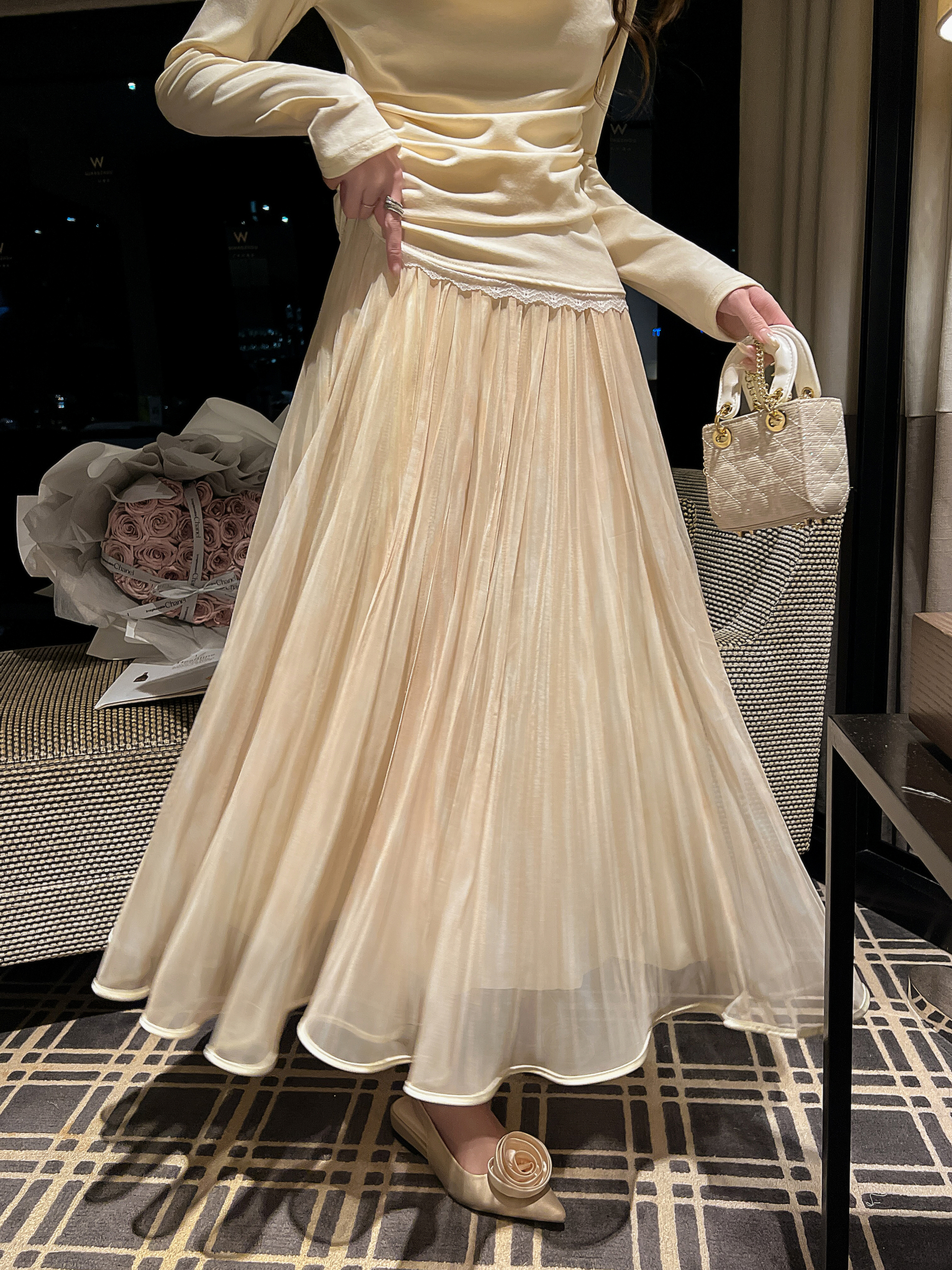 张心子【鎏金腮红裙】温柔大裙摆褶皱半身裙中长款女春新款仙女裙 U2602053