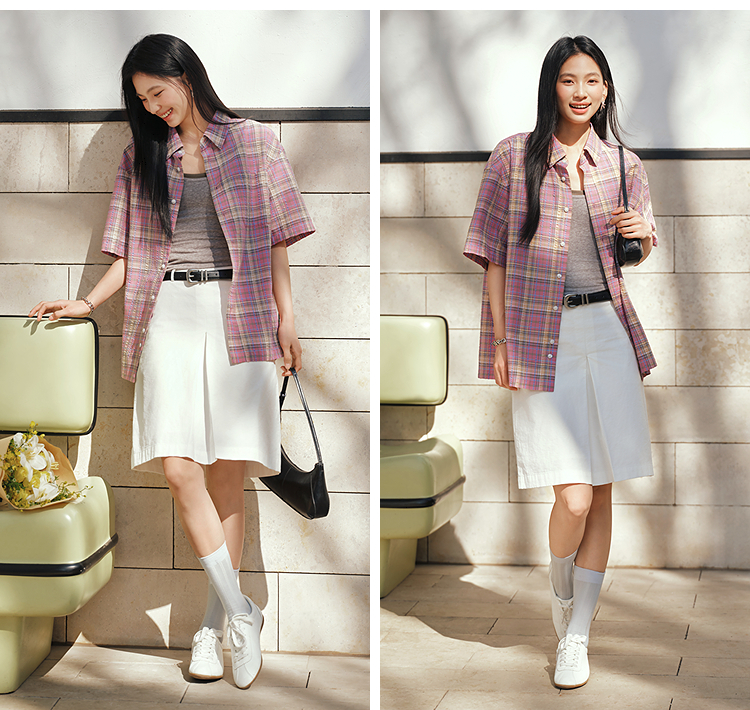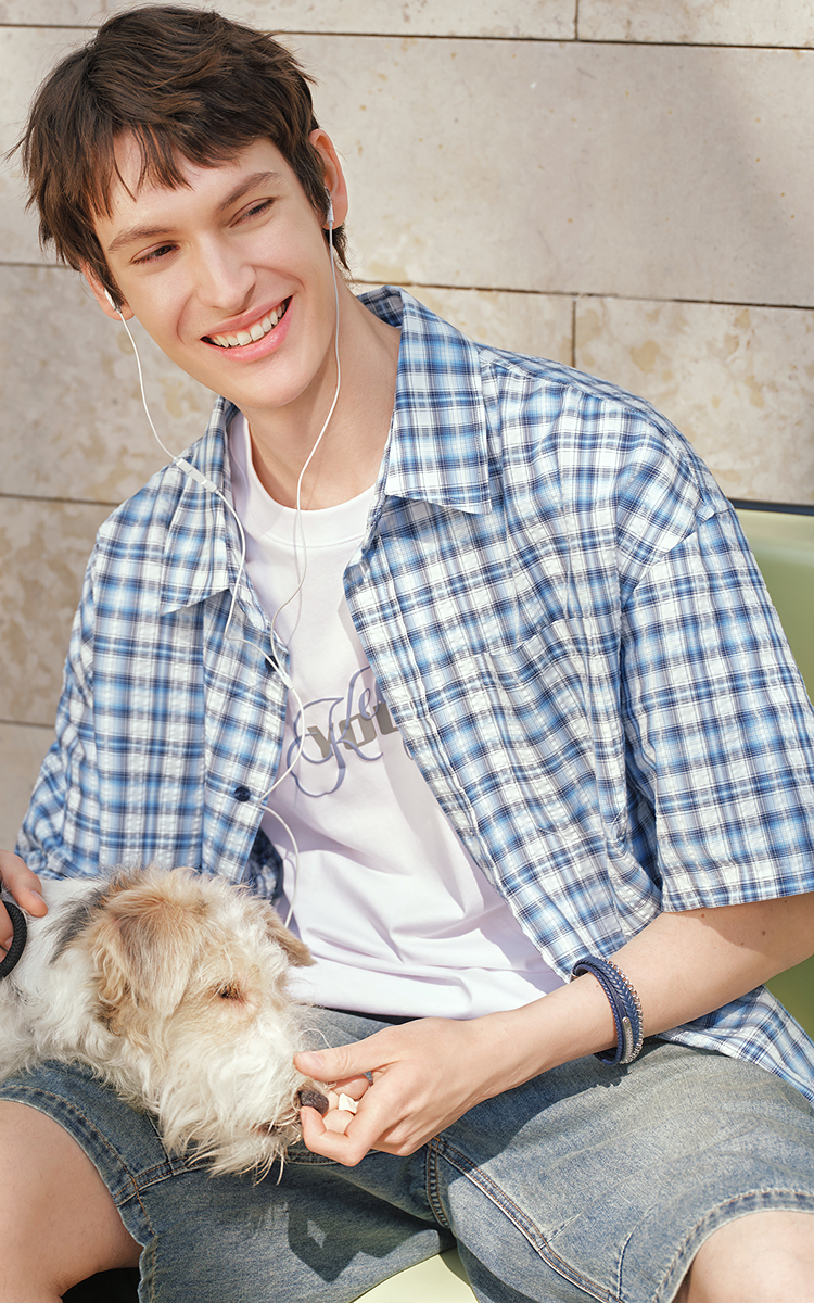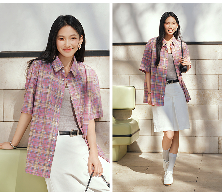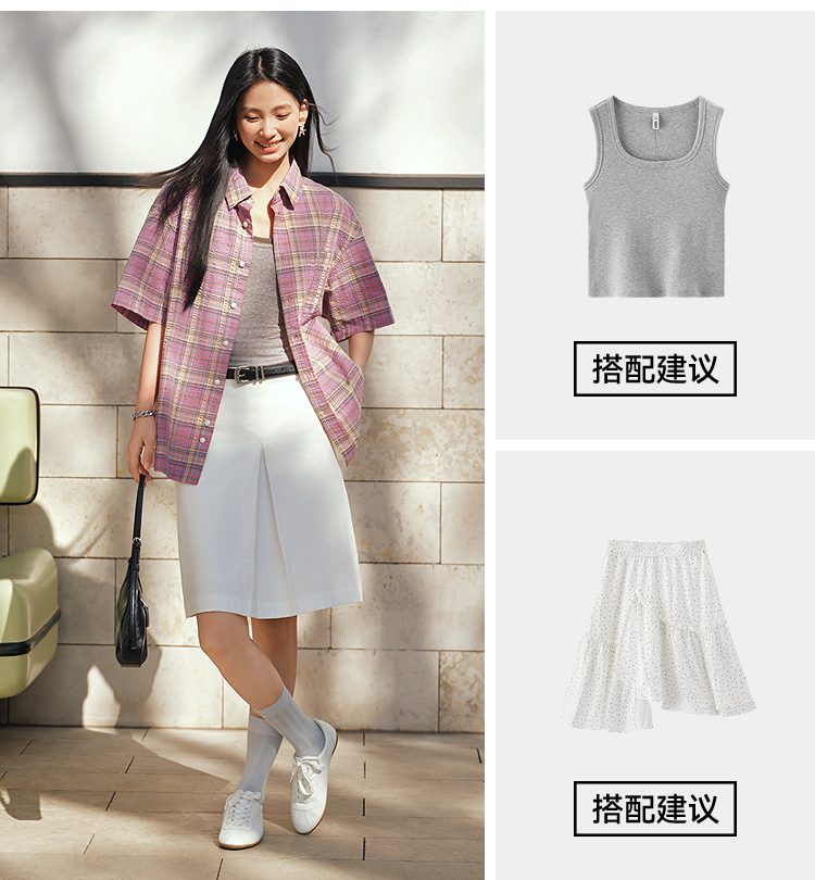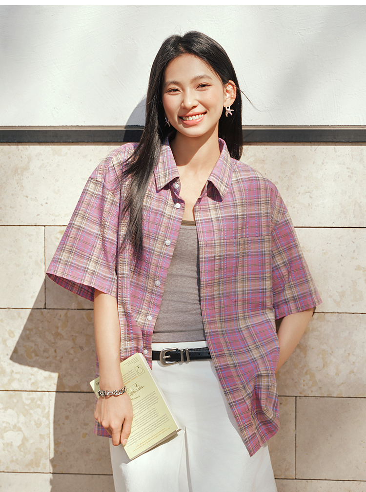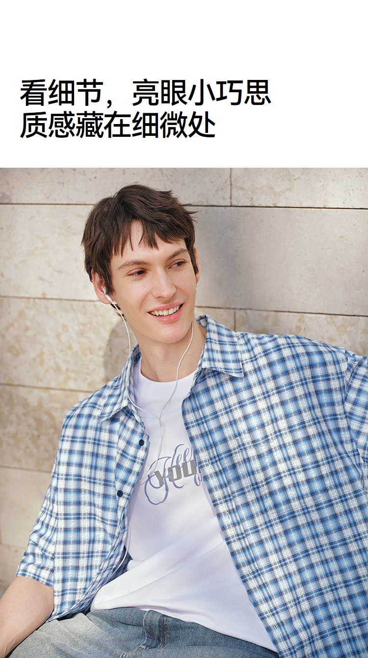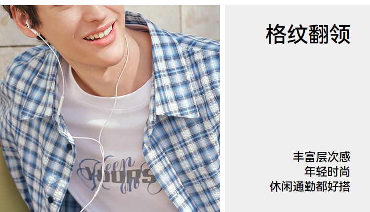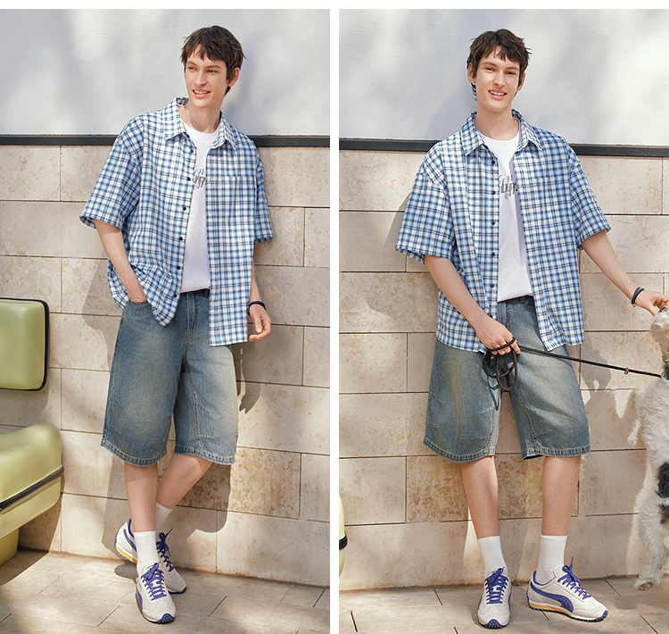 森马短袖衬衫男夏宽松格纹翻领上衣2026新款时尚贴袋衬衣休闲百搭