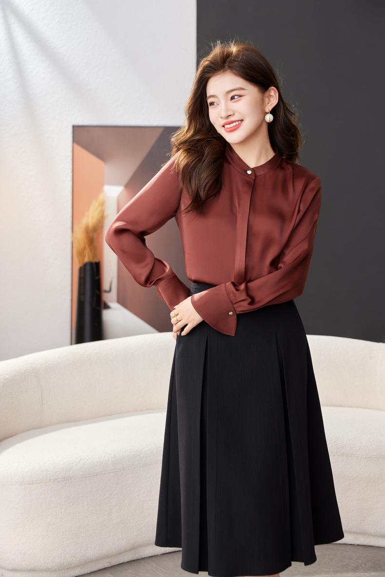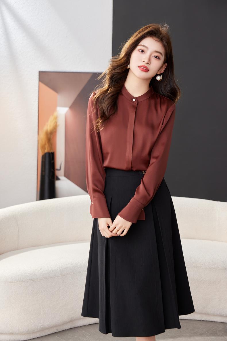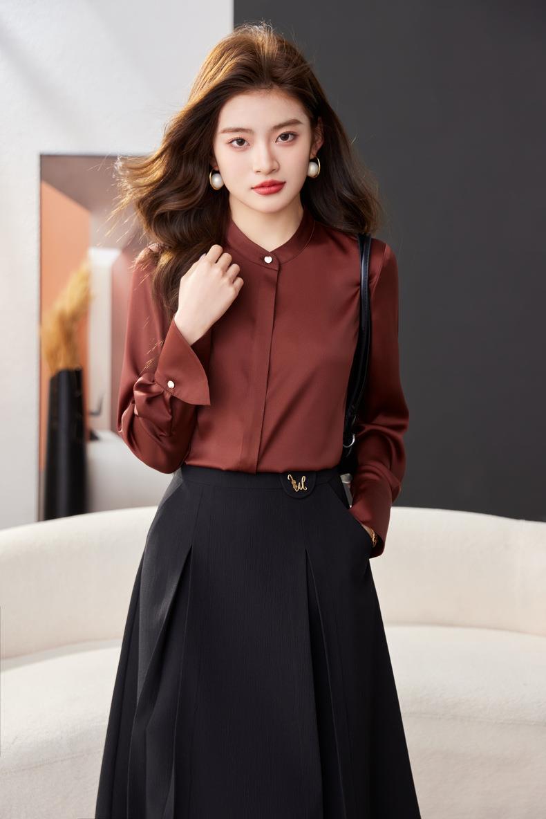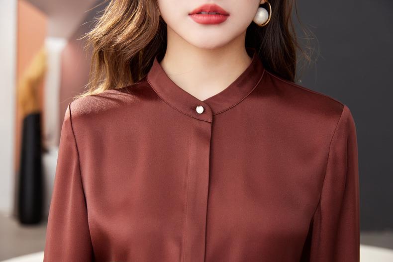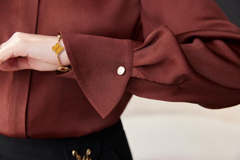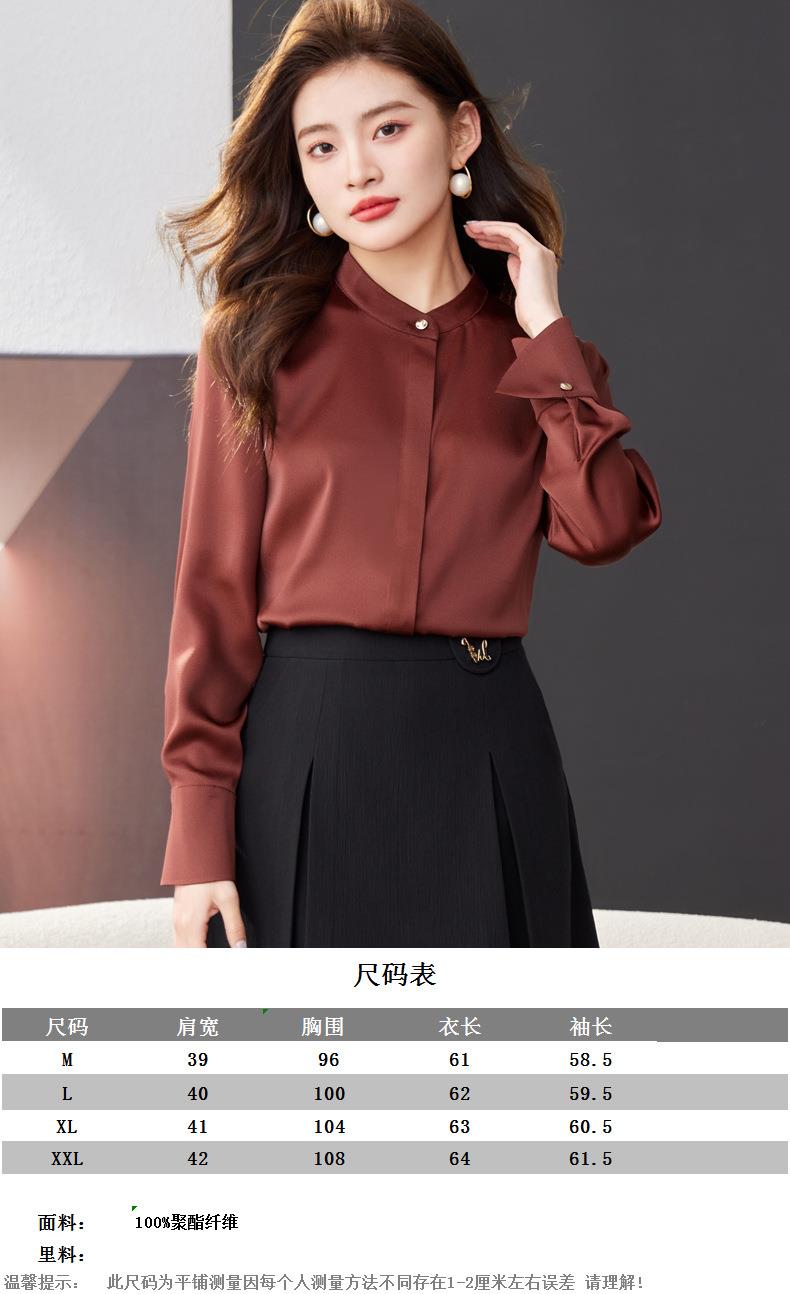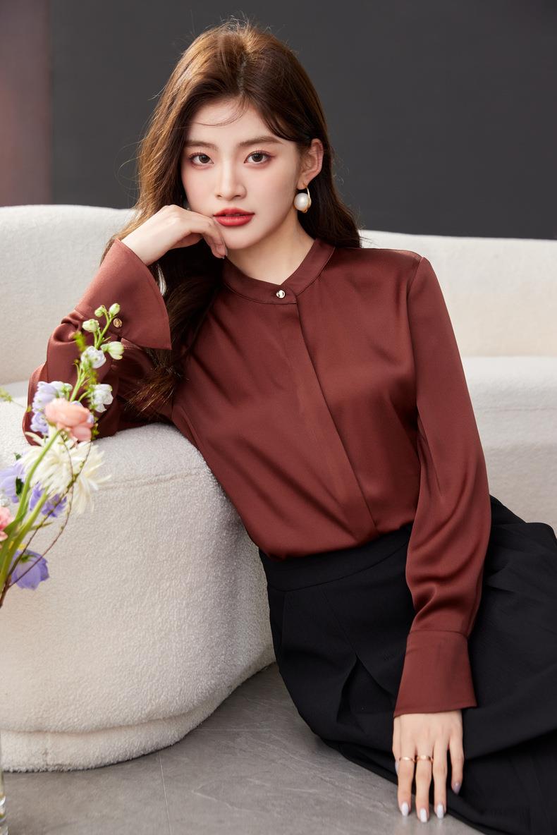红色雪纺衫女上衣2024春装新款立领洋气小衫长袖女衬衣1782