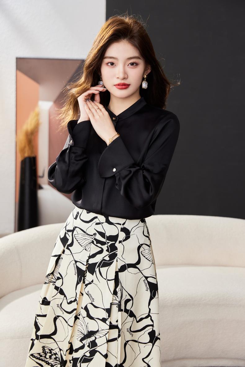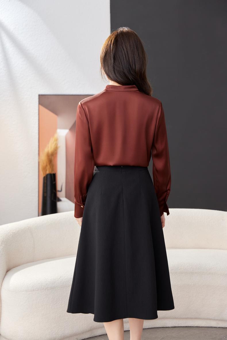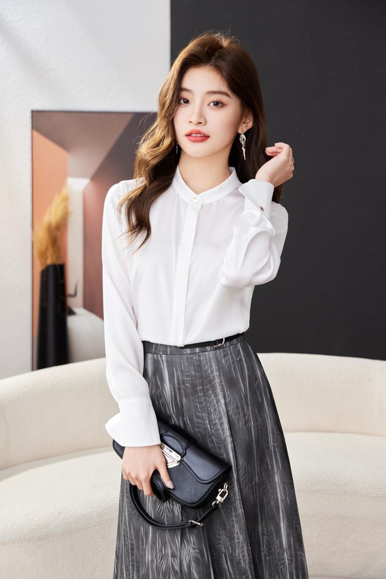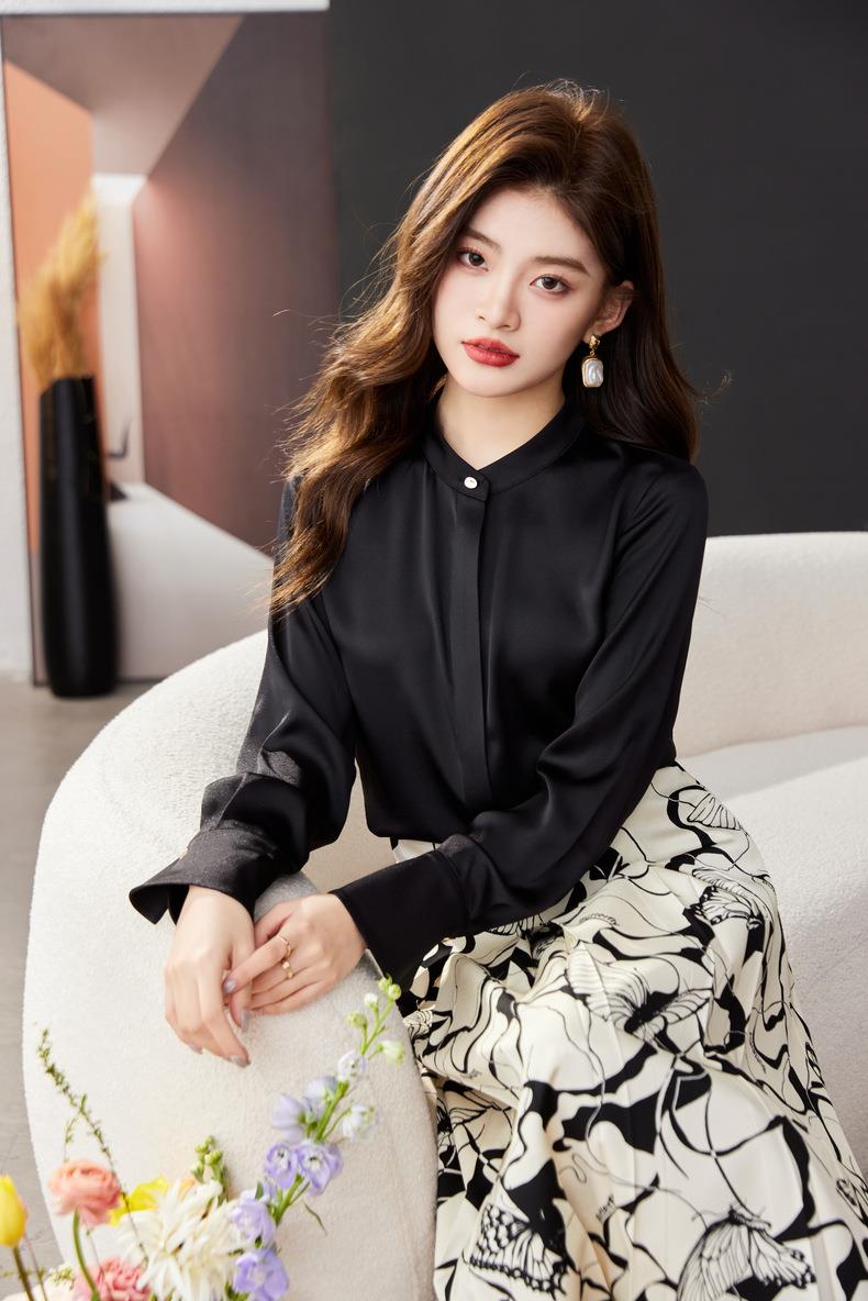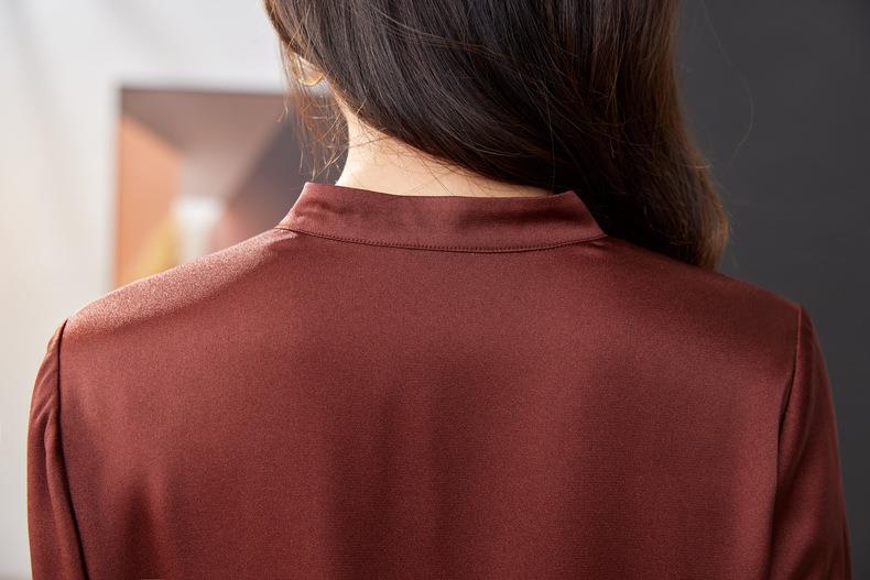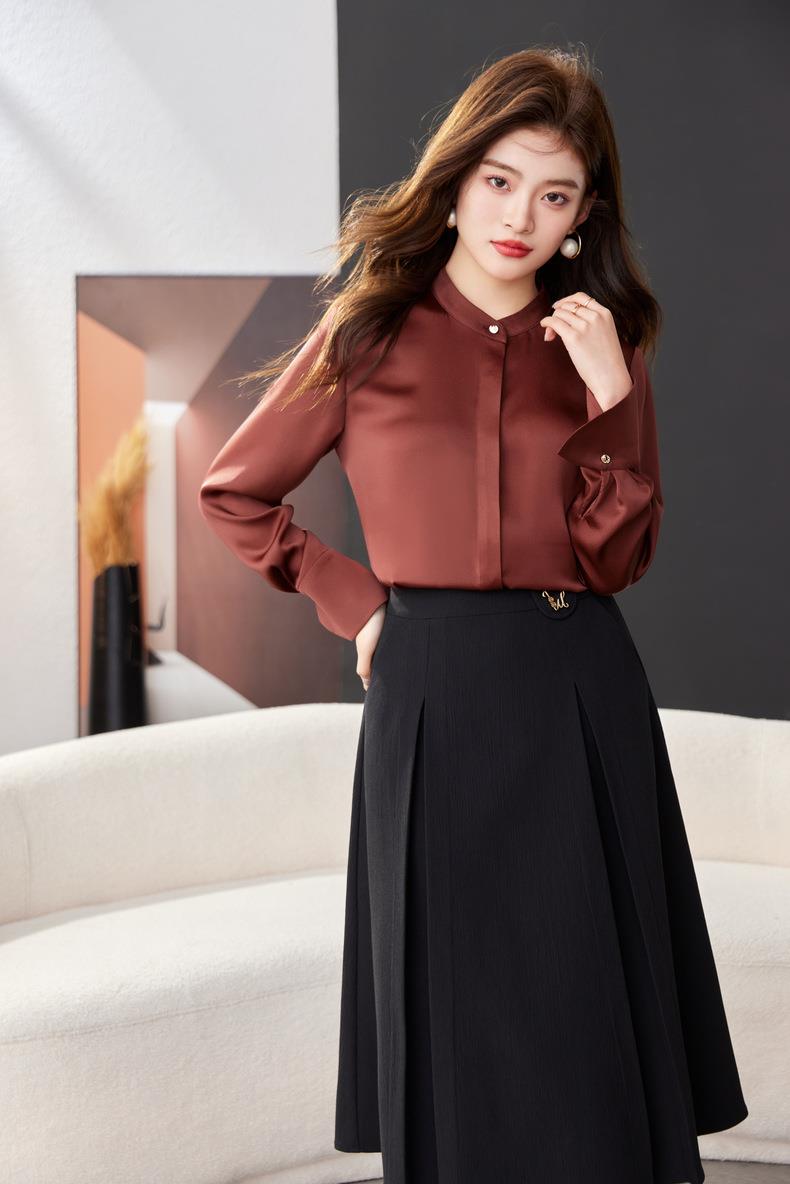红色雪纺衫女上衣2024春装新款立领洋气小衫长袖女衬衣1782