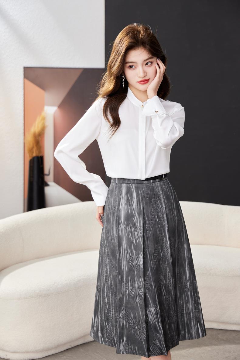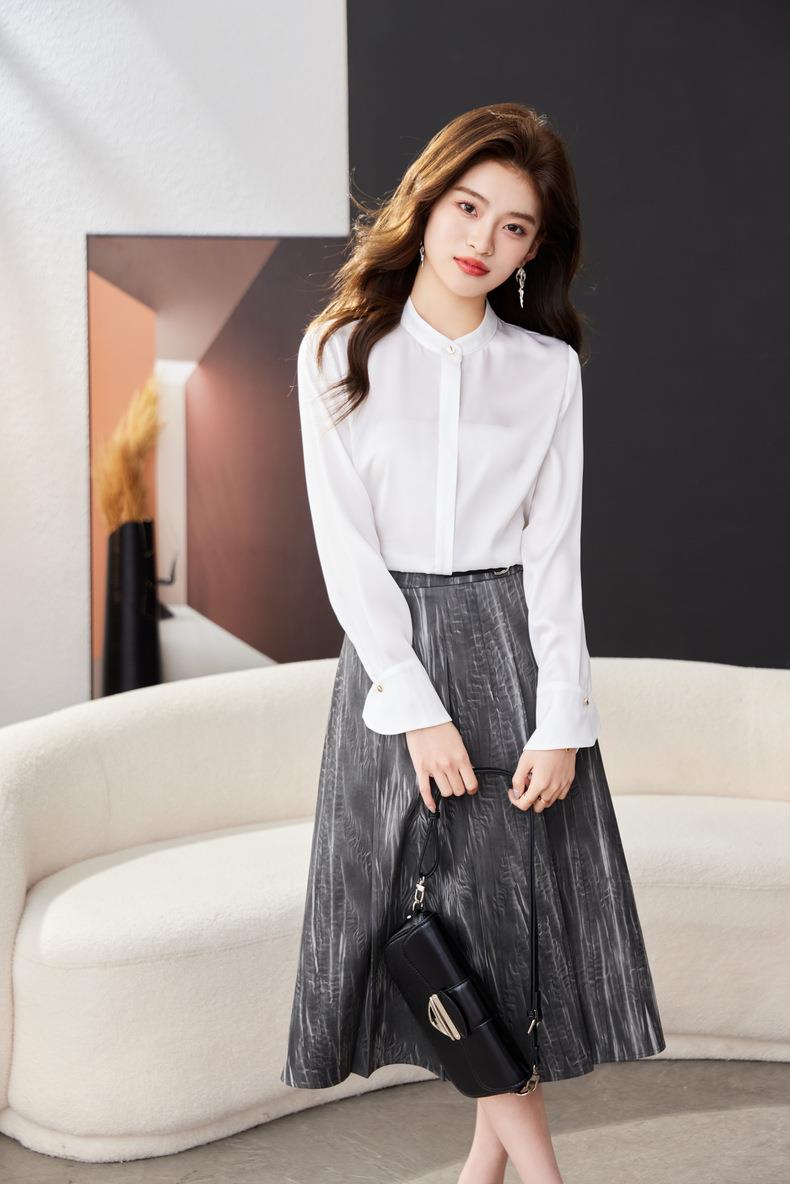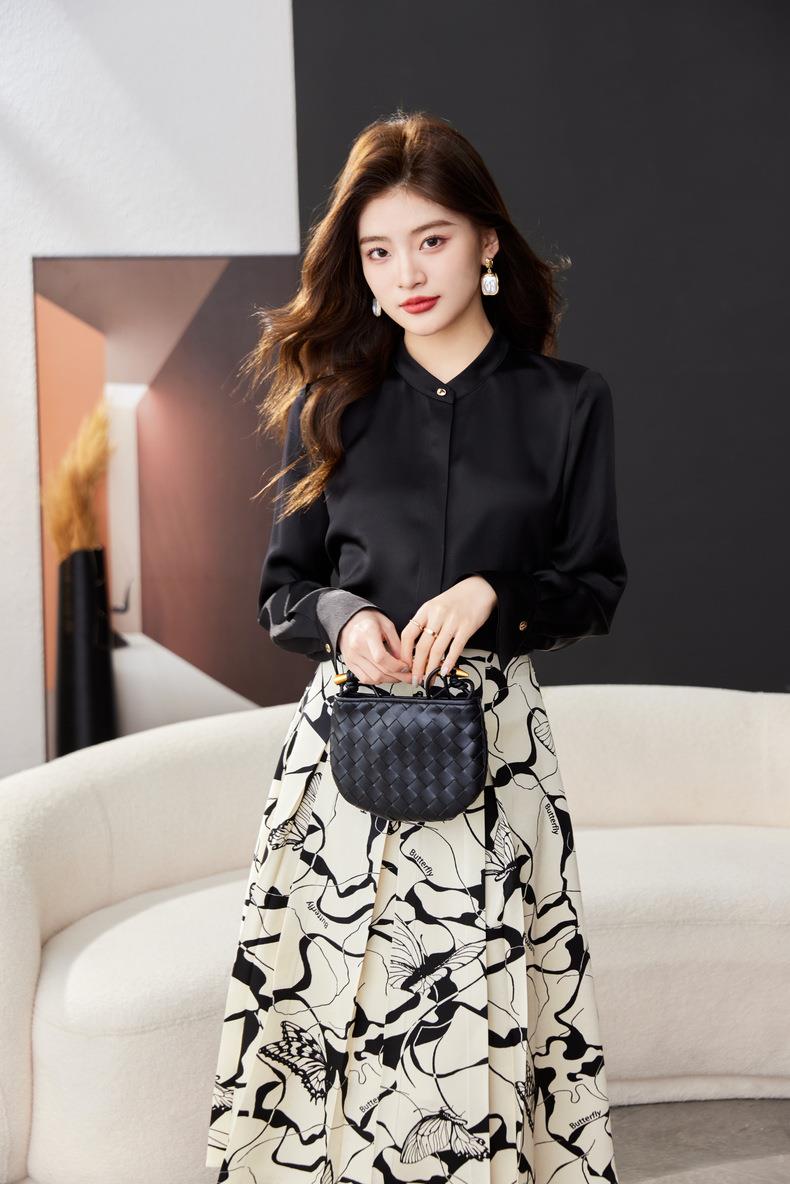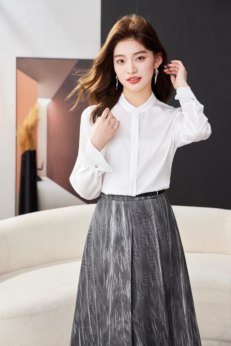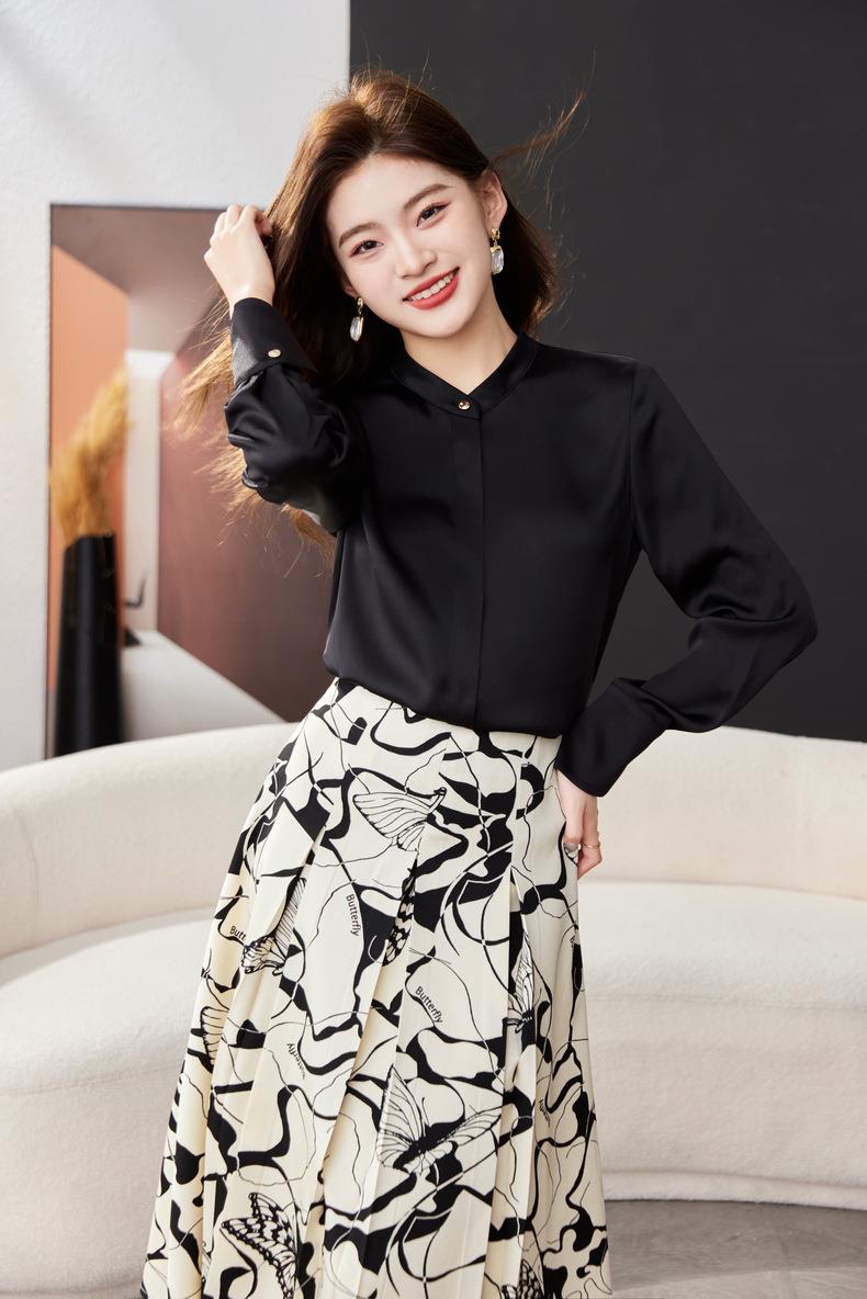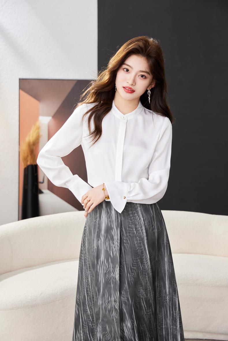 红色雪纺衫女上衣2024春装新款立领洋气小衫长袖女衬衣1782