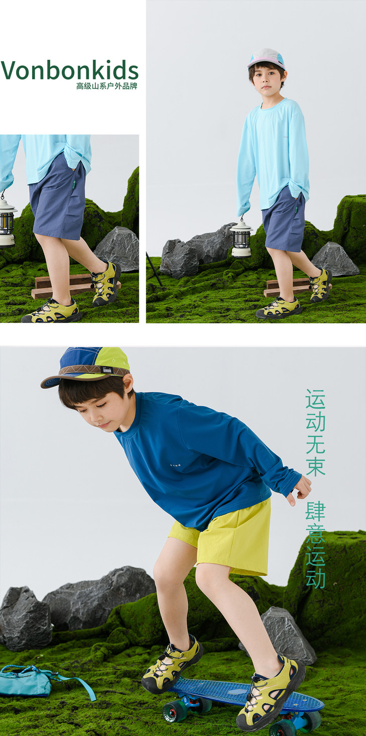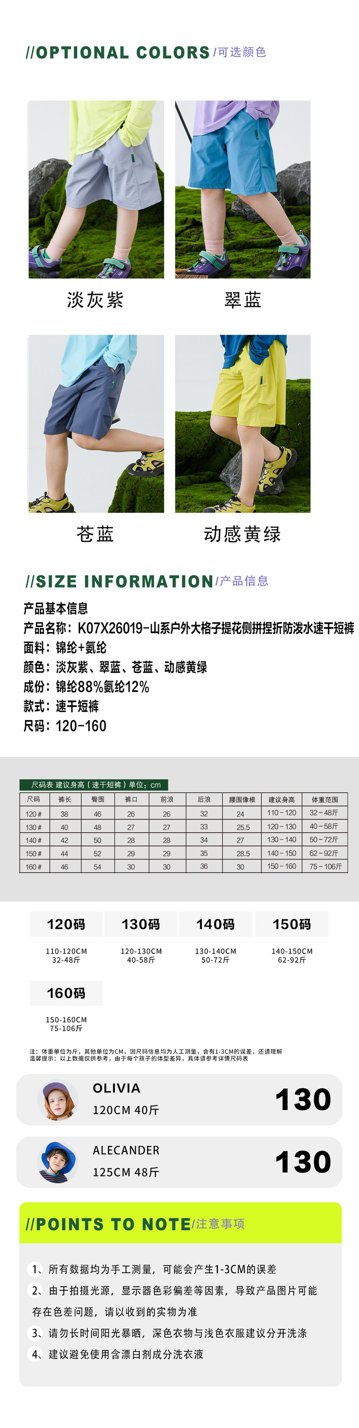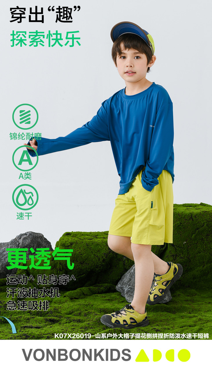 🌸【 Vonbonkids 山系户外大格子提花侧拼捏折防泼水速干短裤K07X26019款】💯 颜值与实力并存❤️户外运动说走就走🏃 让流汗不在难受😣运动起来肆意自由😄