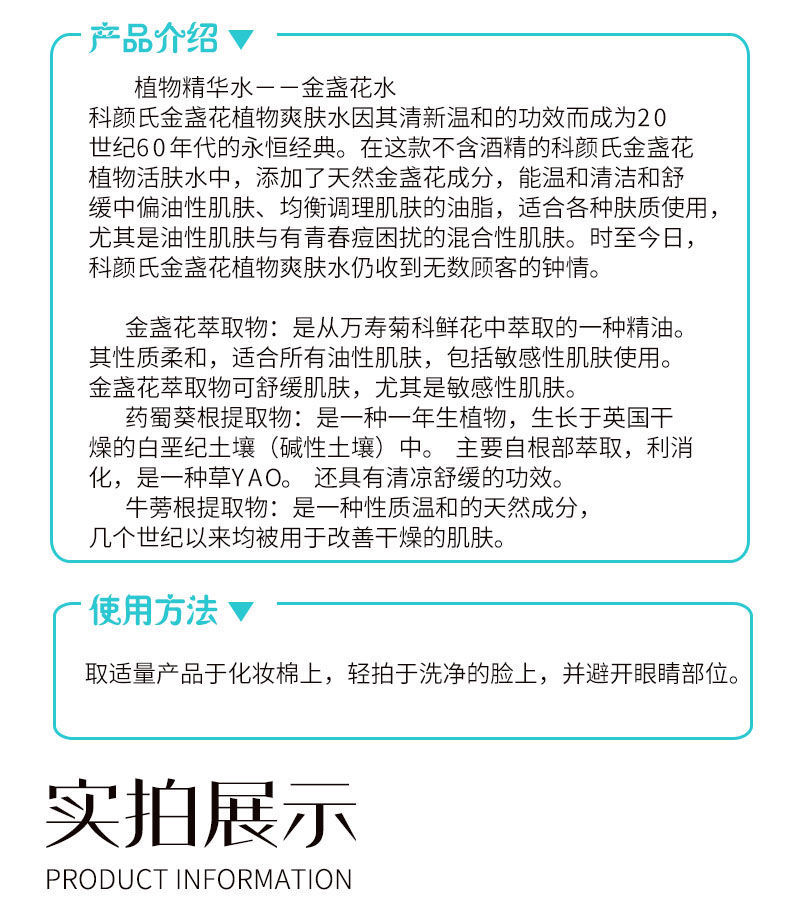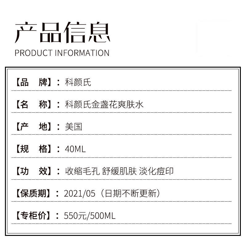 【爆款超低价预售 急单慎拍】国内专柜科颜氏金盏花植萃精华爽肤水40ml小样淡痘印控油收毛孔