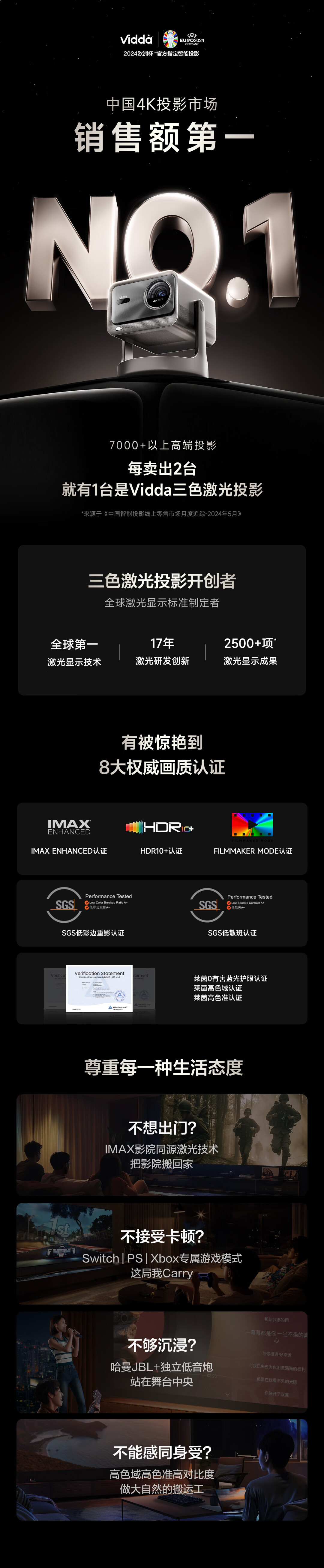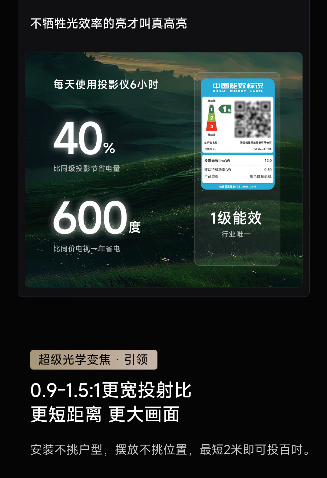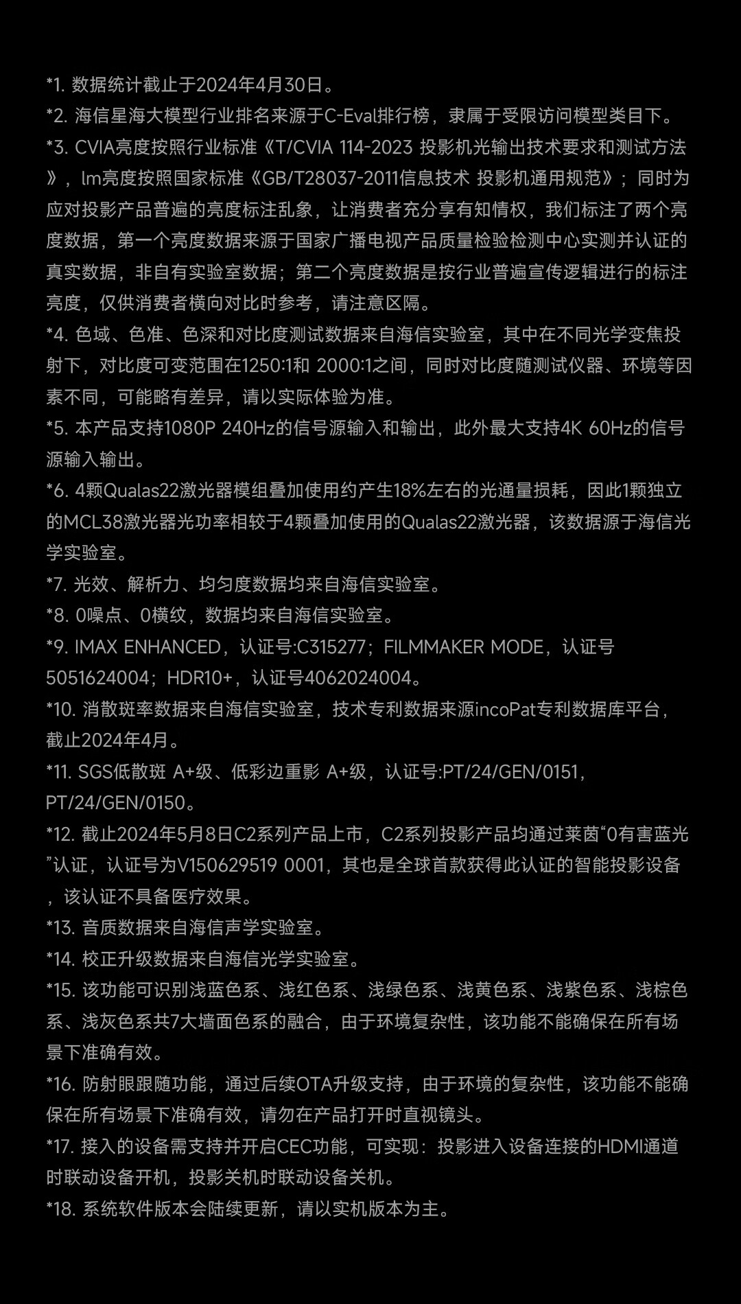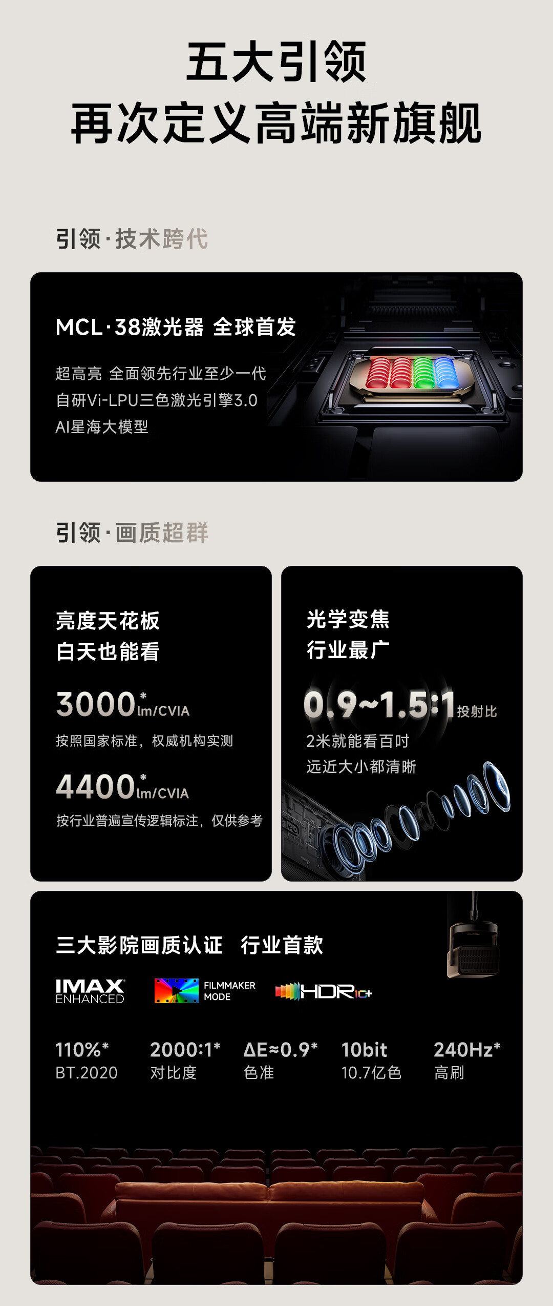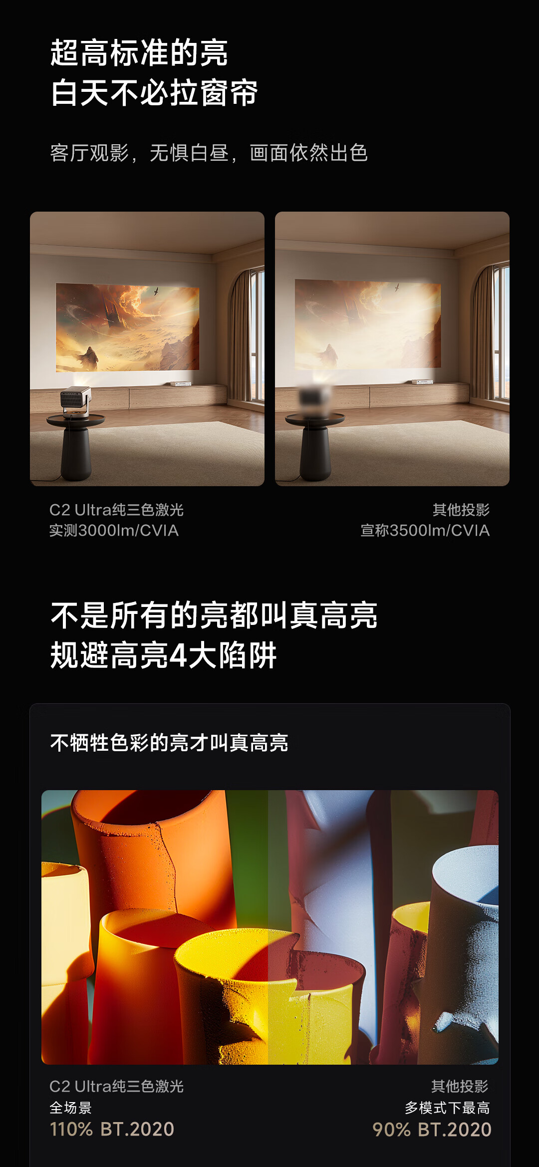 Vidda C2 Ultra海信4K超高清纯三色激光云台投影仪家用家庭影院白天投墙(MCL38激光器+超级光学变焦)