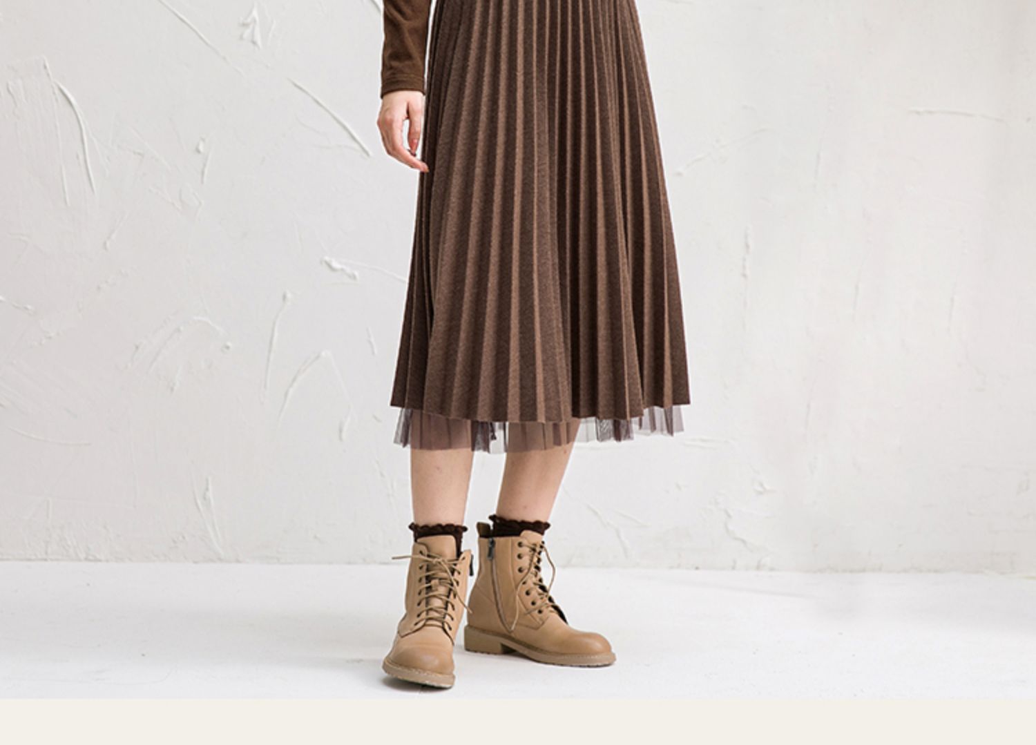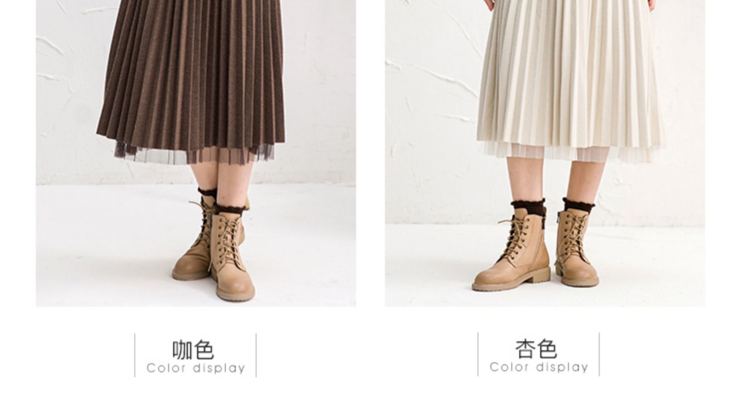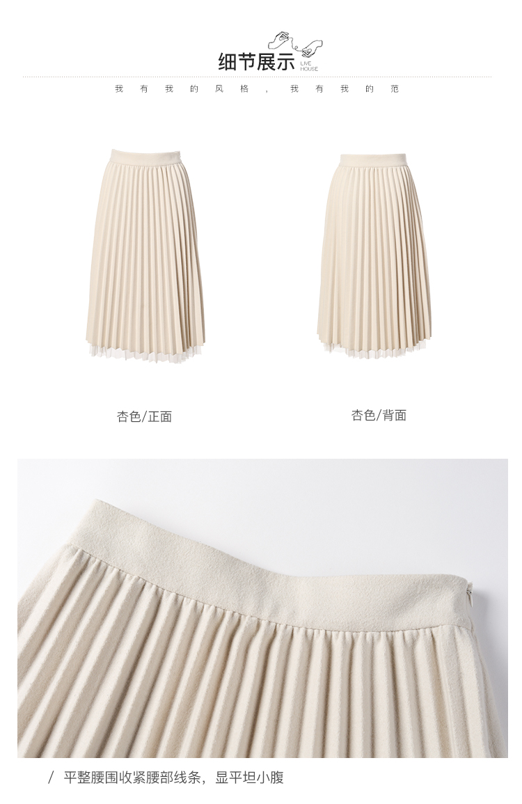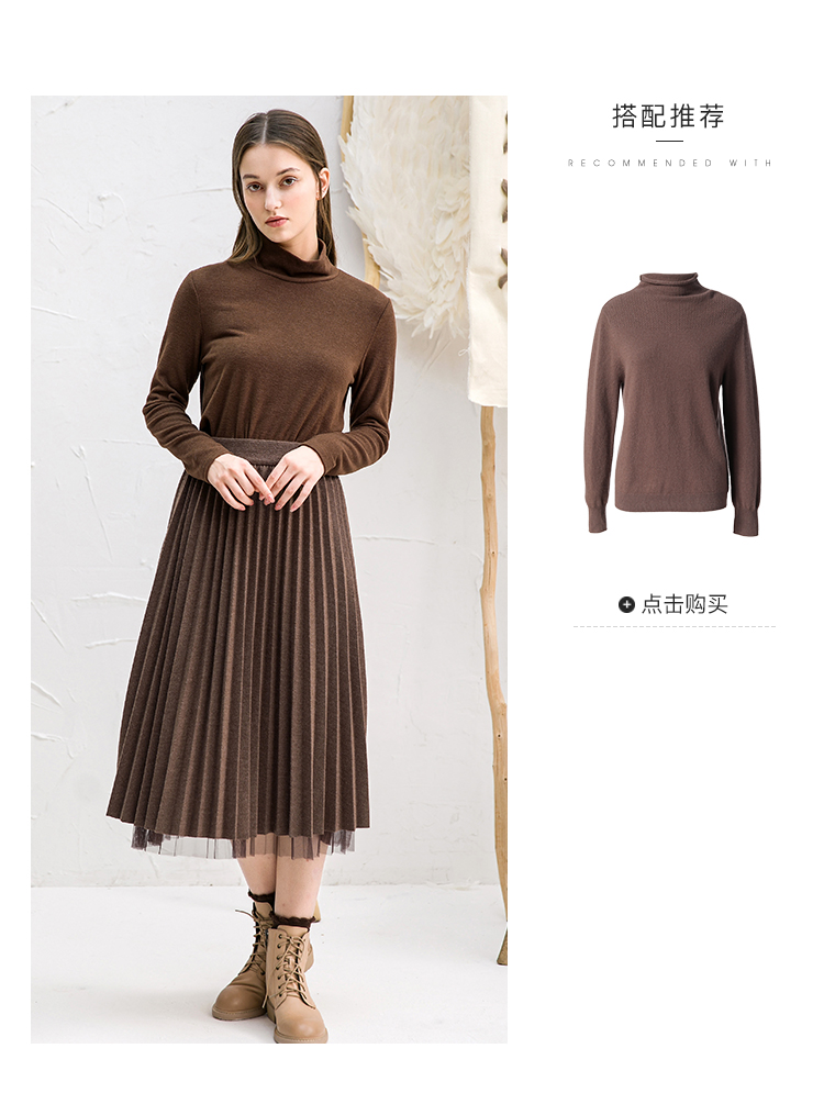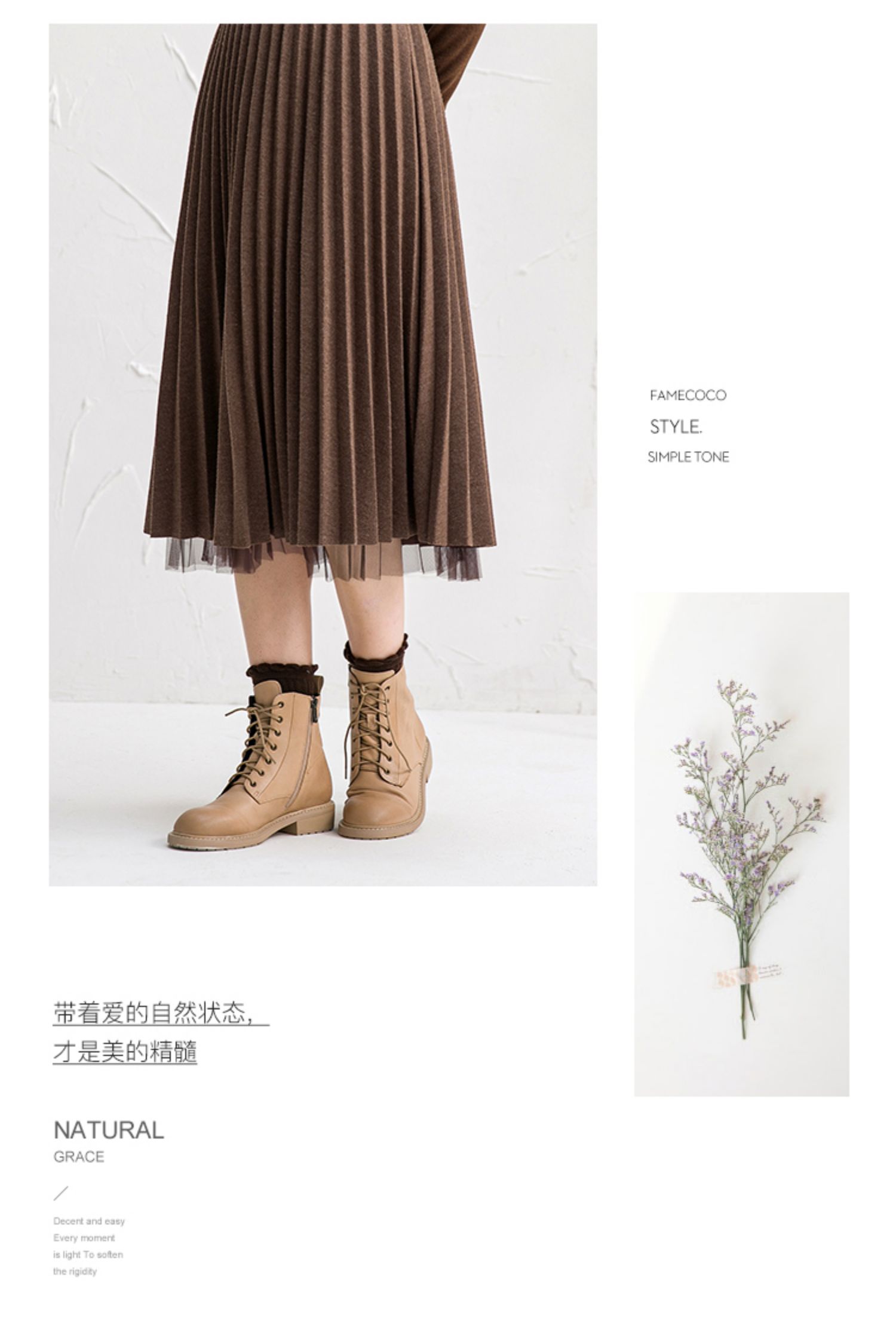 Famecoco范可儿纯色半身裙女秋冬季网纱拼接百褶裙F218HA004