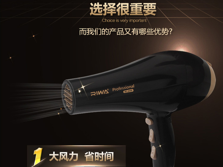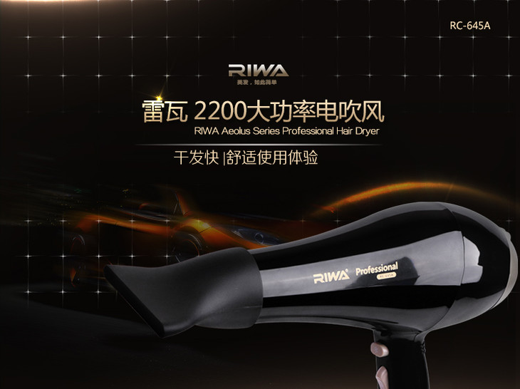 雷瓦 (RIWA)2000w大功率电吹风家用吹风机速干恒温护发造型风筒 RC-645A 黑色