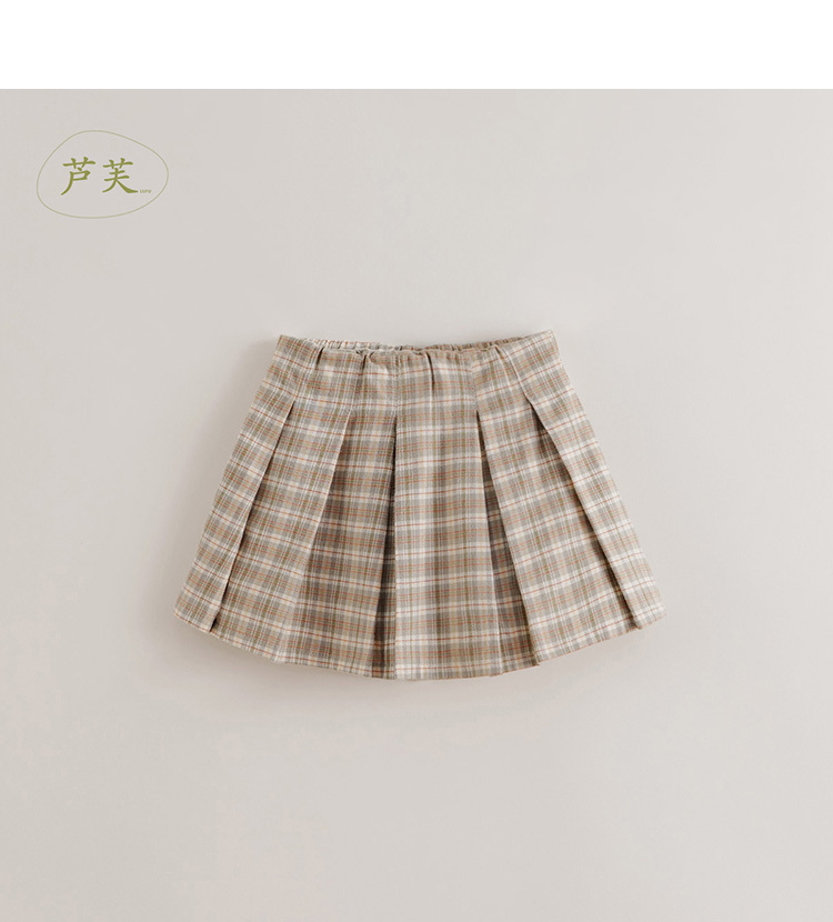 【马克珍妮 芦芙】春装新款 女童法兰绒格纹百褶裙裤230302