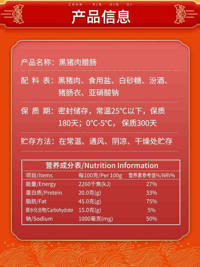 【海南农垦】【海垦福猪】黑猪腊肠袋装 90g & 225g