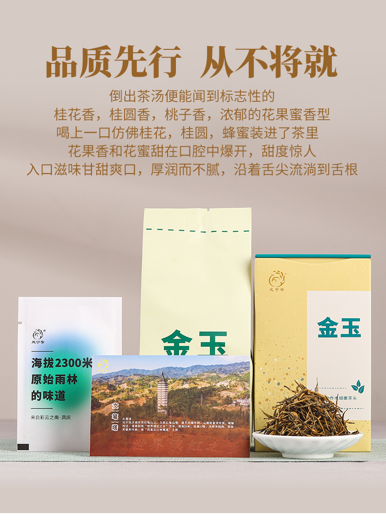 - 滇红世家,一味相承。凤宁号于1959年由第一代滇红制茶人黄开厚在凤庆创立,沿袭三代至今,已成为滇红茶代表品牌之一。