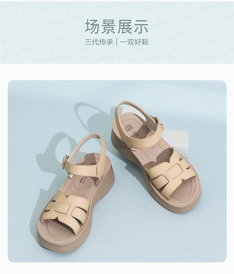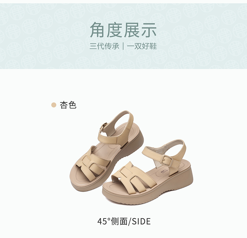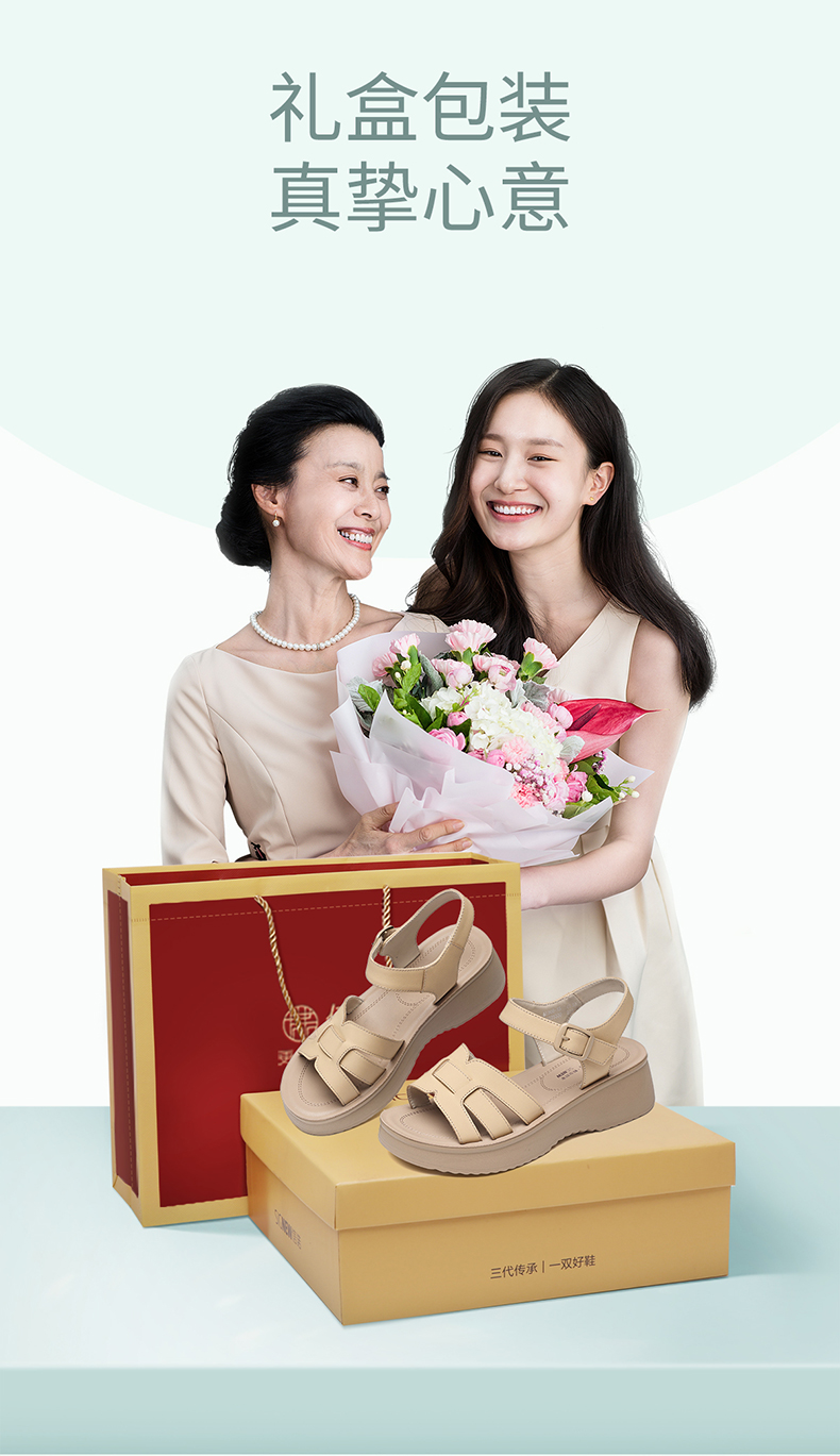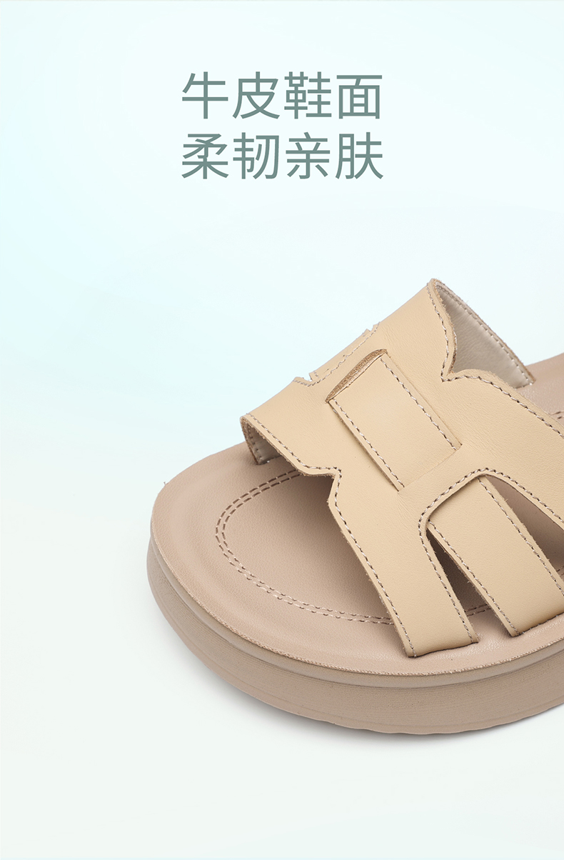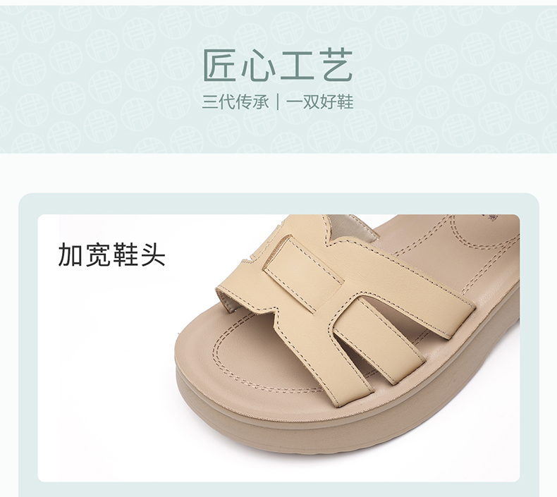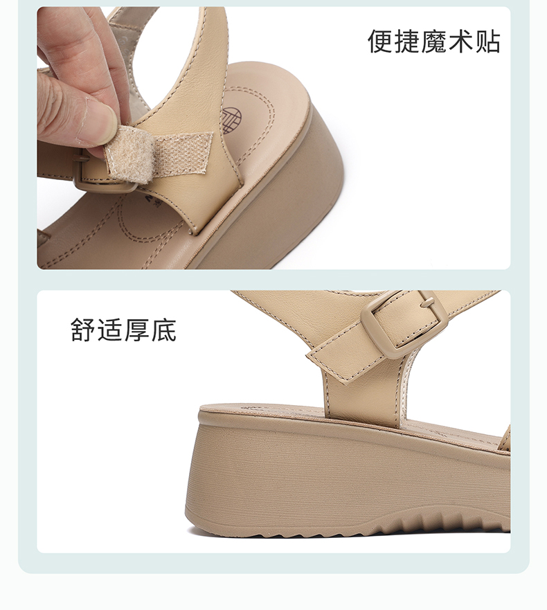 信诺妈妈凉鞋女真皮软底舒适中老年鞋子一字带沙滩鞋2026夏季新款6L950-66