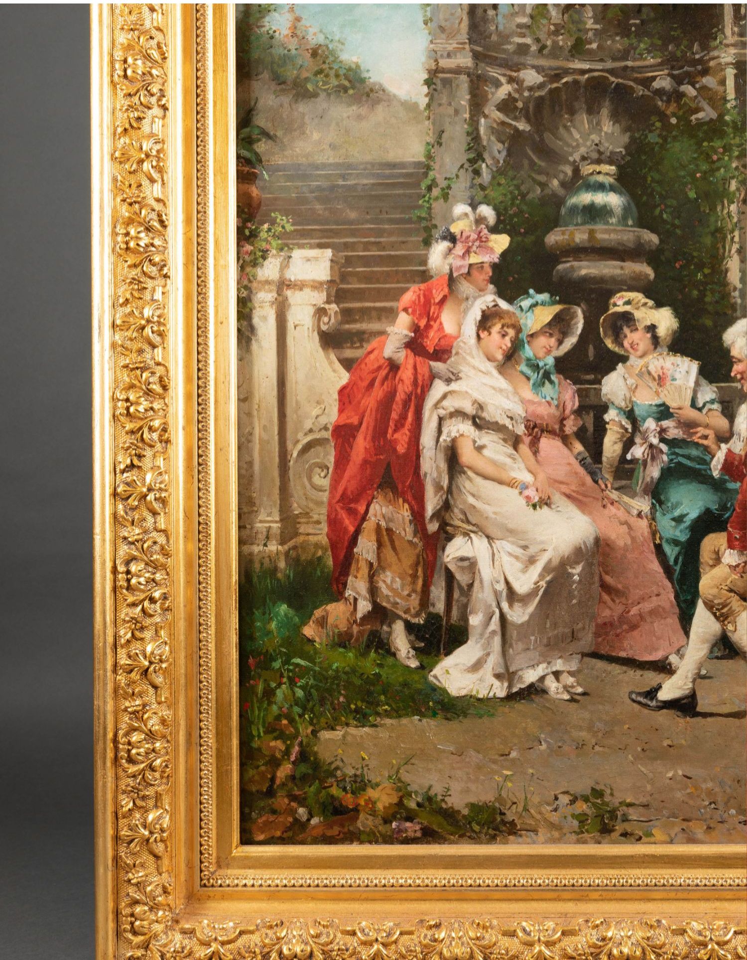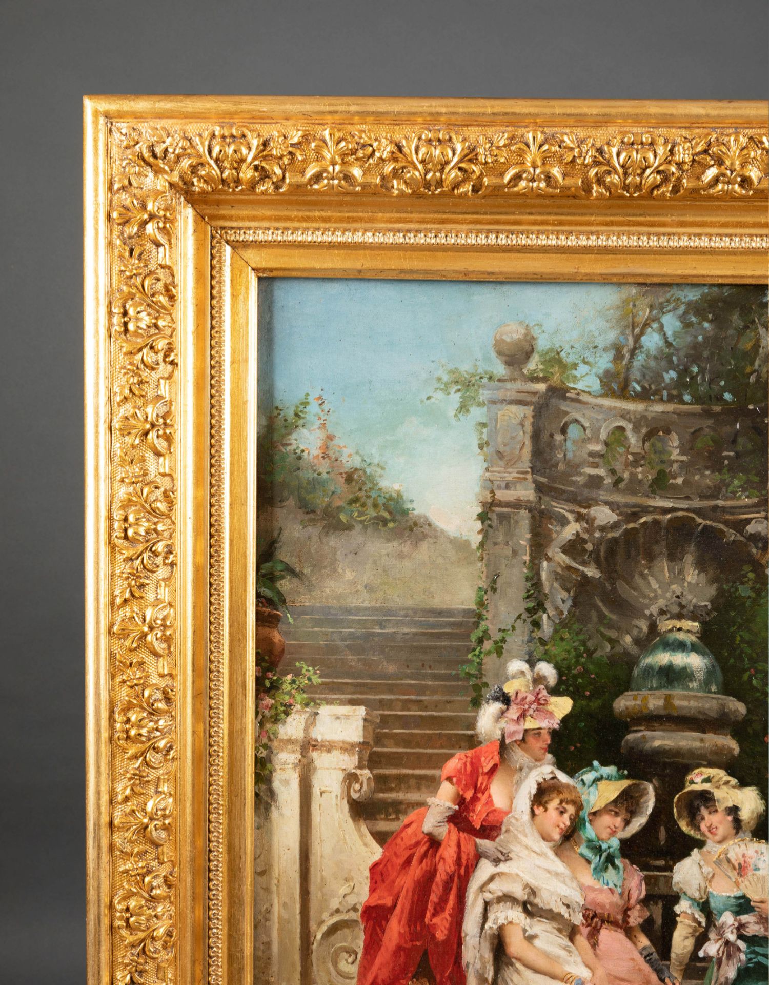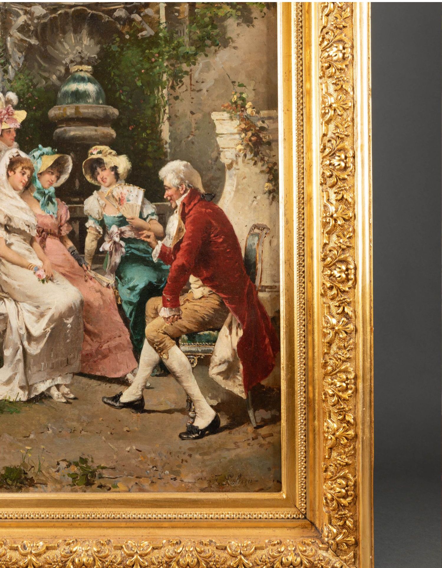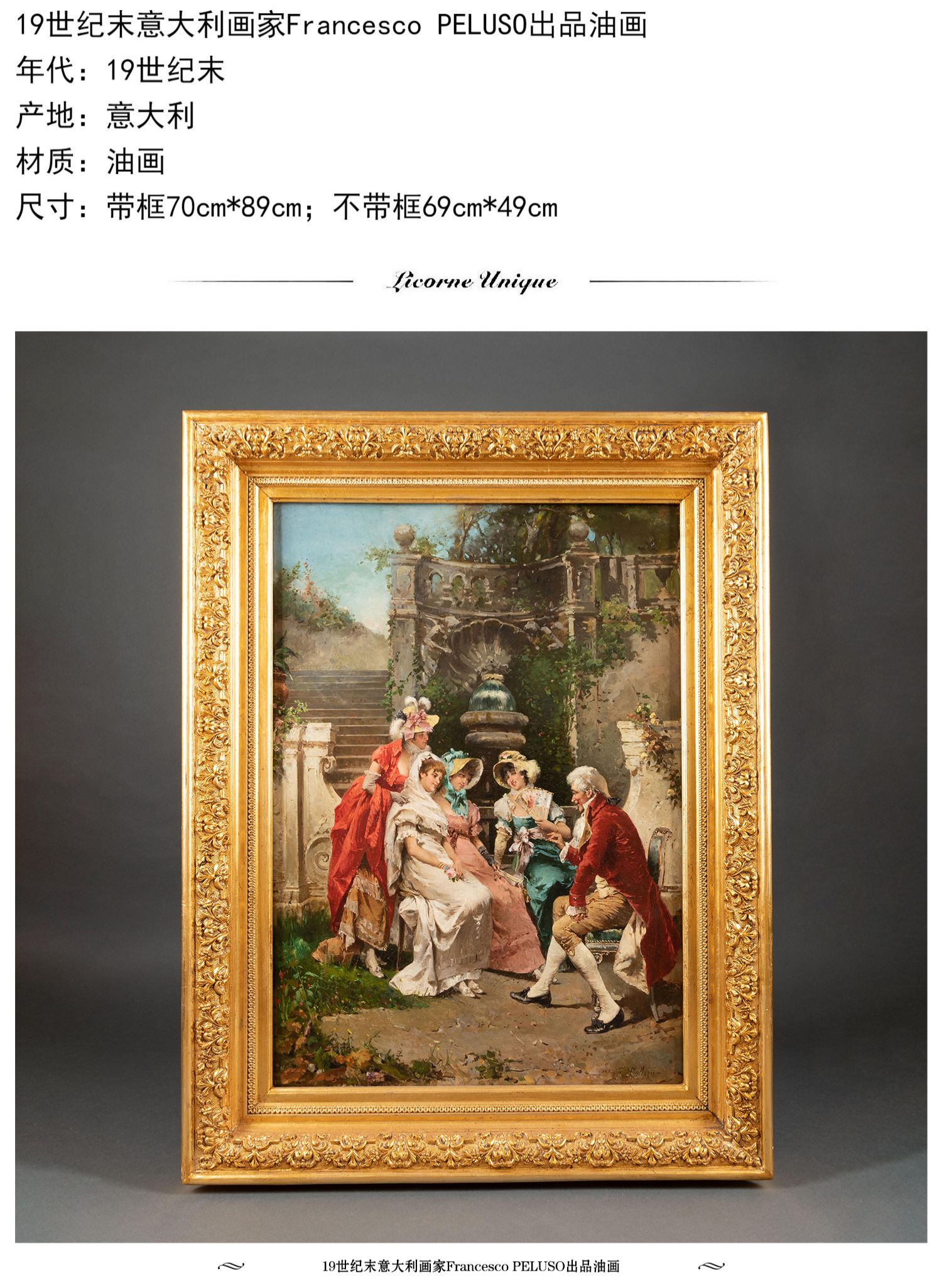 独角鹿西洋古董19世纪末意大利画家Francesco PELUSO出品油画