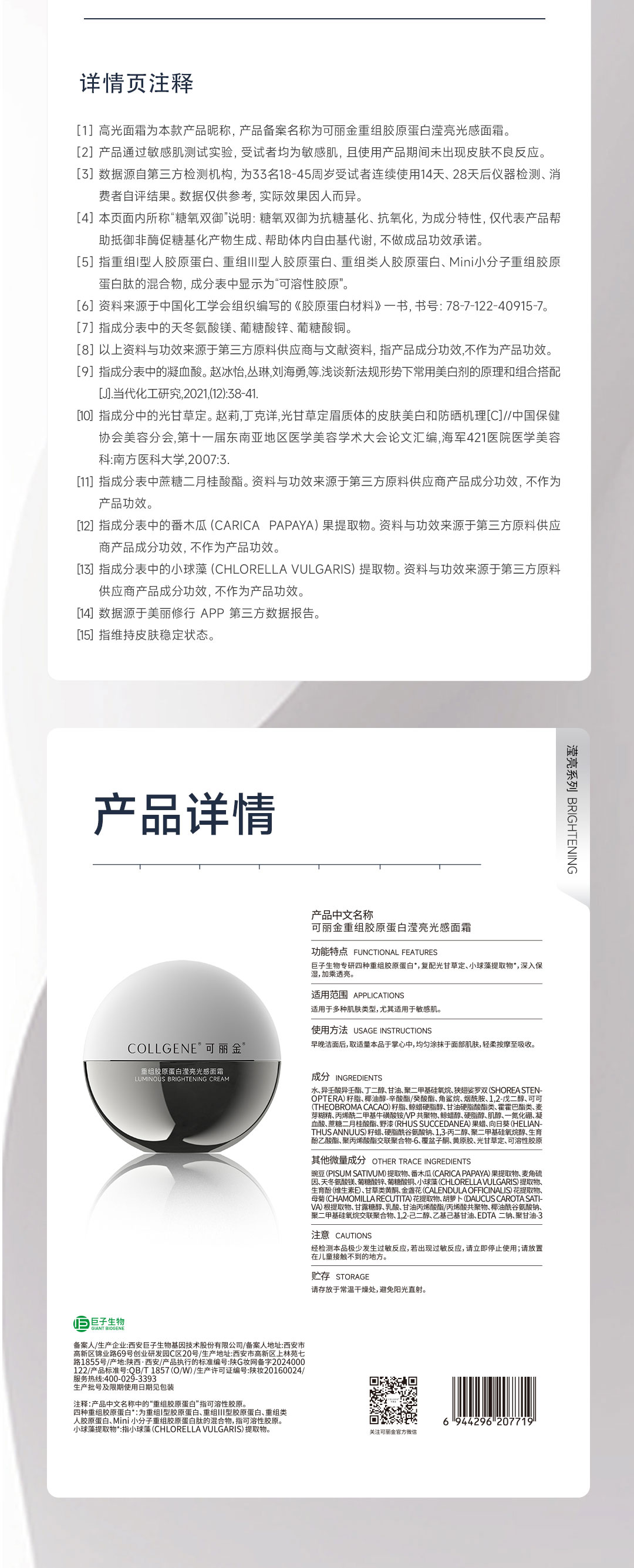 官方直发 拒绝假货【新品】可丽金重组胶原蛋白滢亮光感面霜50g