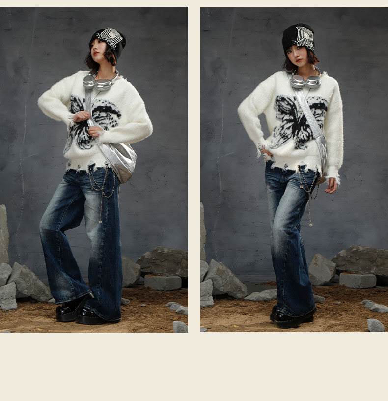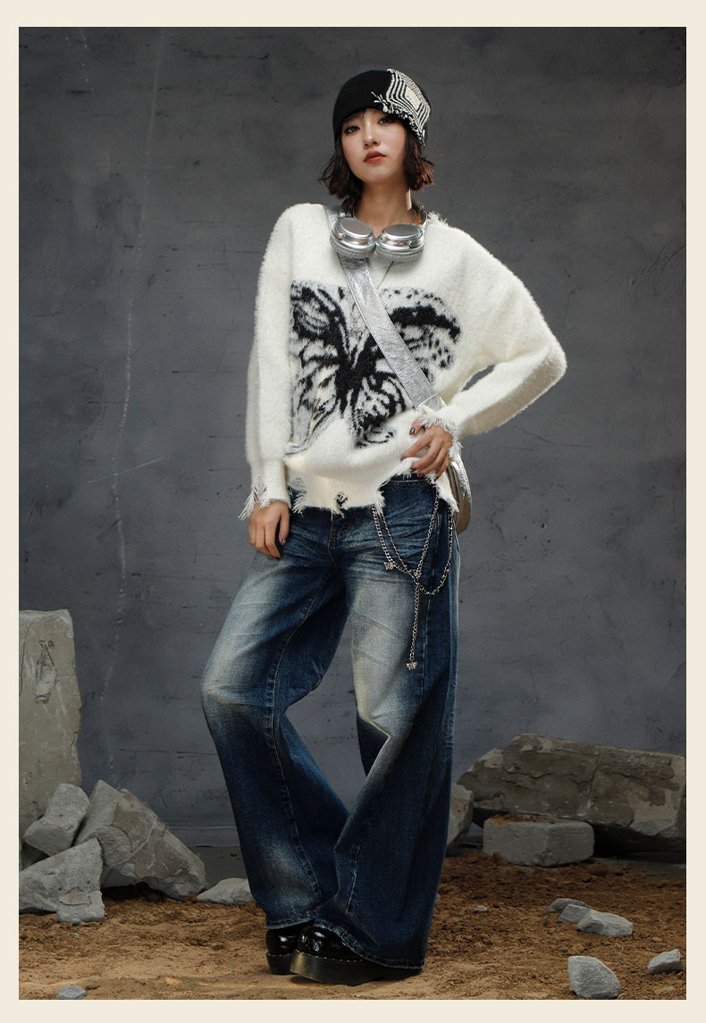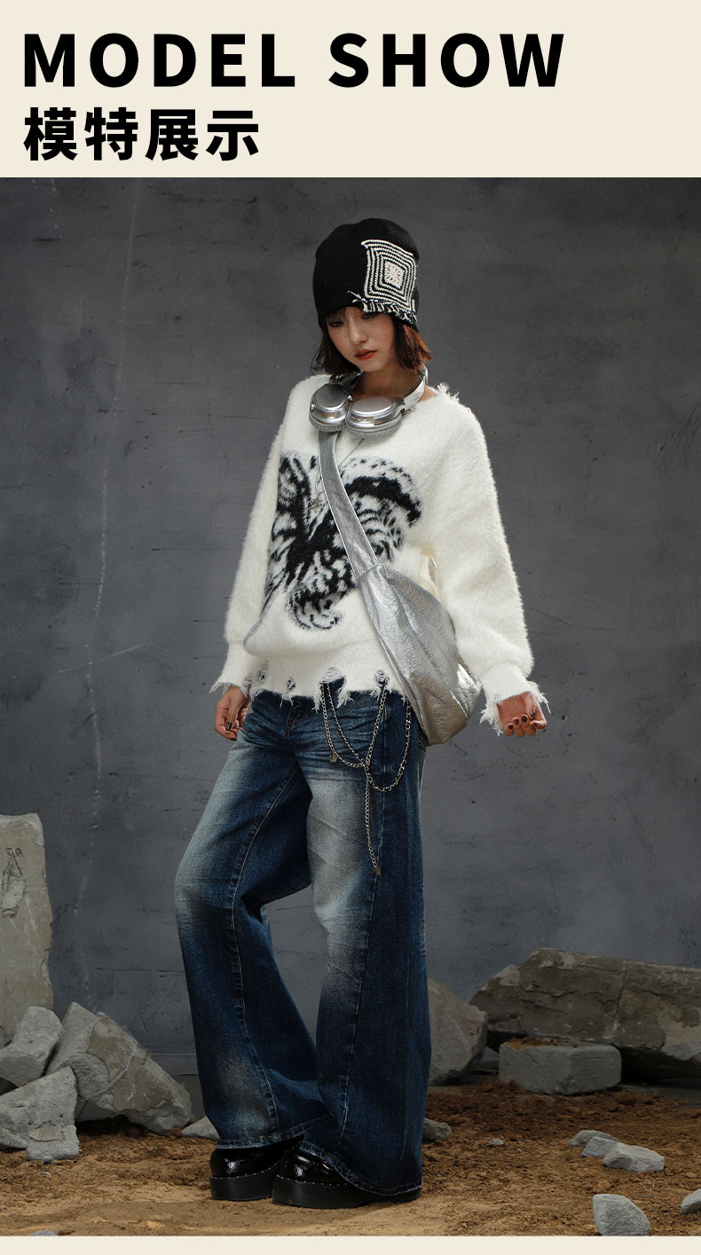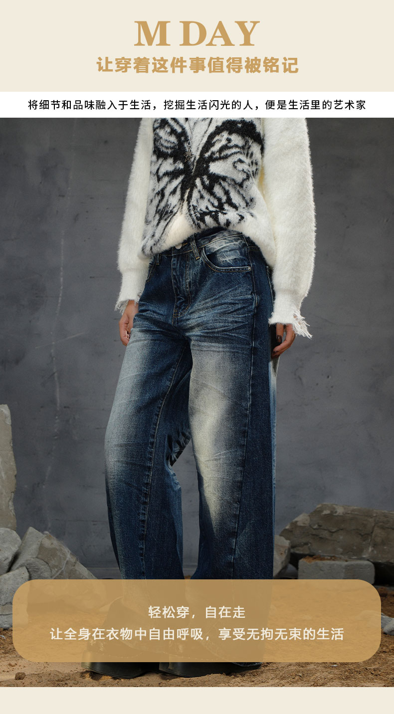 荒诞猫须洗水牛仔裤-纪念日百货门店同款166594241