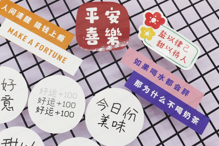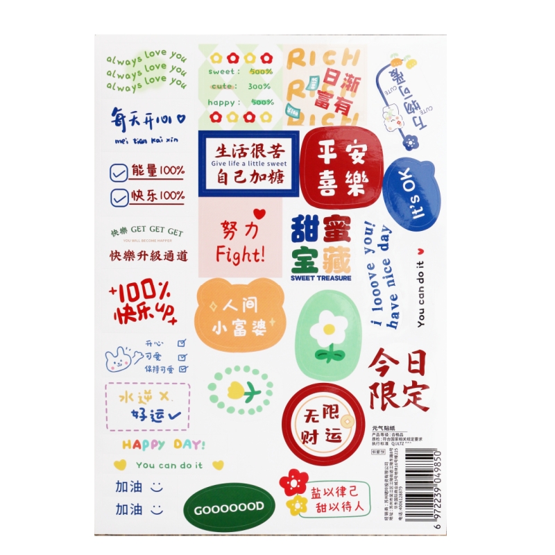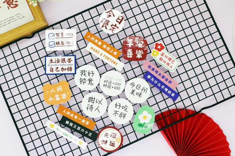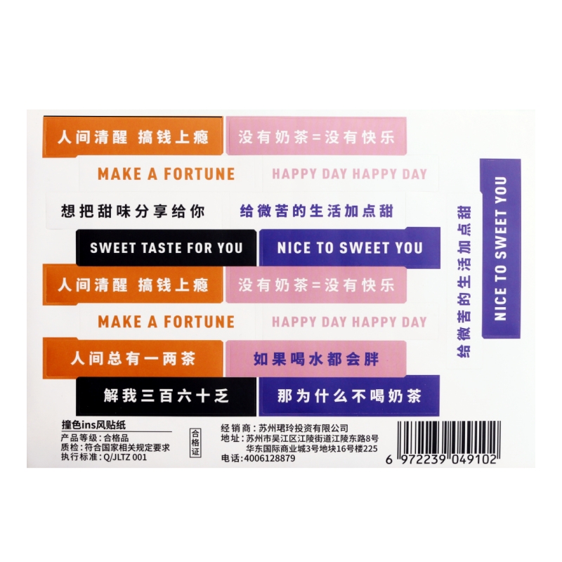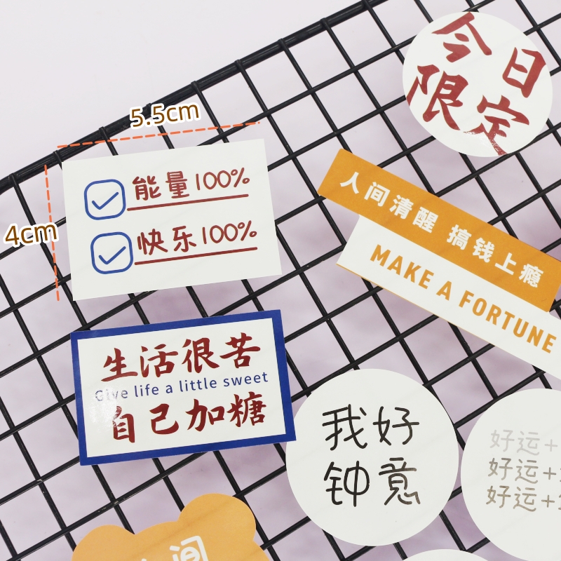 趣味文字贴纸 撞色ins风元气封口贴纸 甜以待人好吃不胖平安喜乐等 奶茶别西点盒创意贴纸