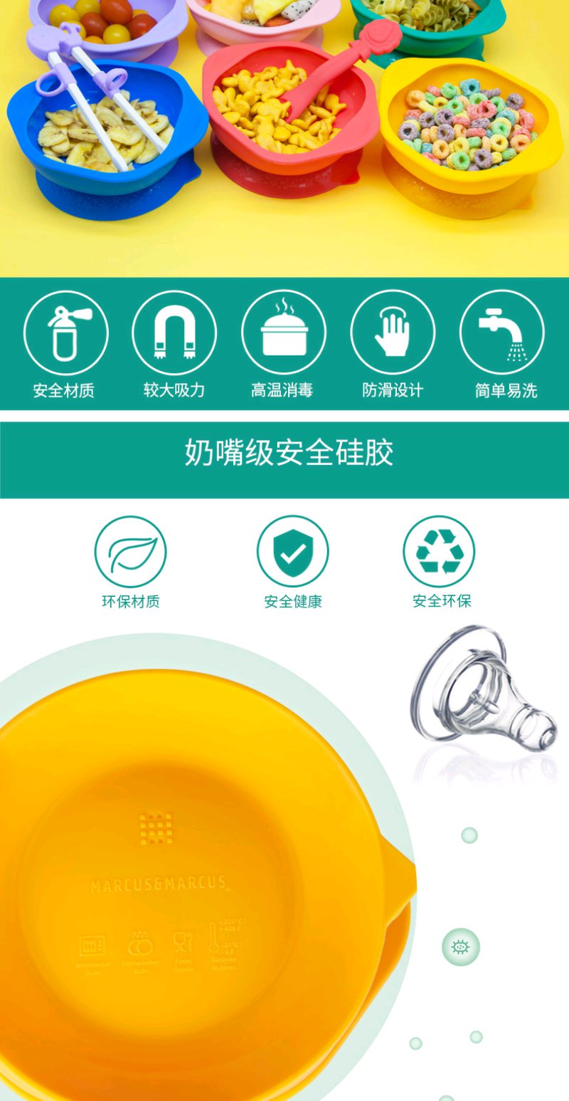 (超值)加拿大Marcus 儿童吸盘碗 硅胶 无盖 训练碗