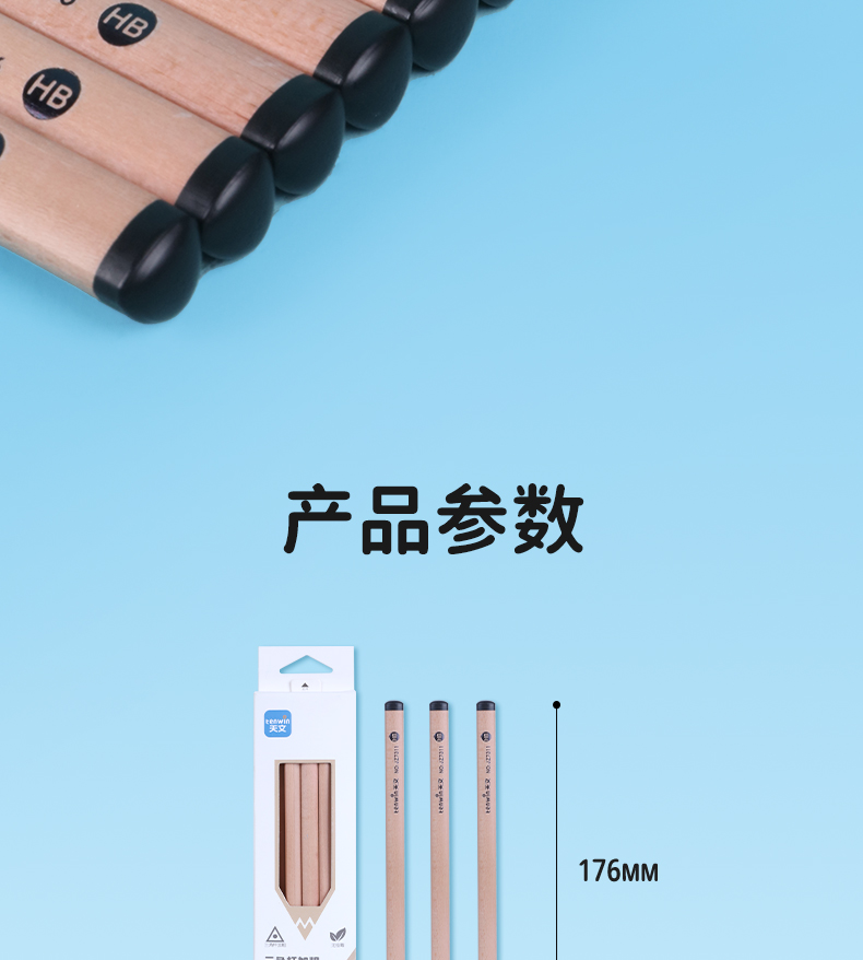 天文三角杆加粗原木铅笔HB 【12支盒装】赠笔套(清完不补)