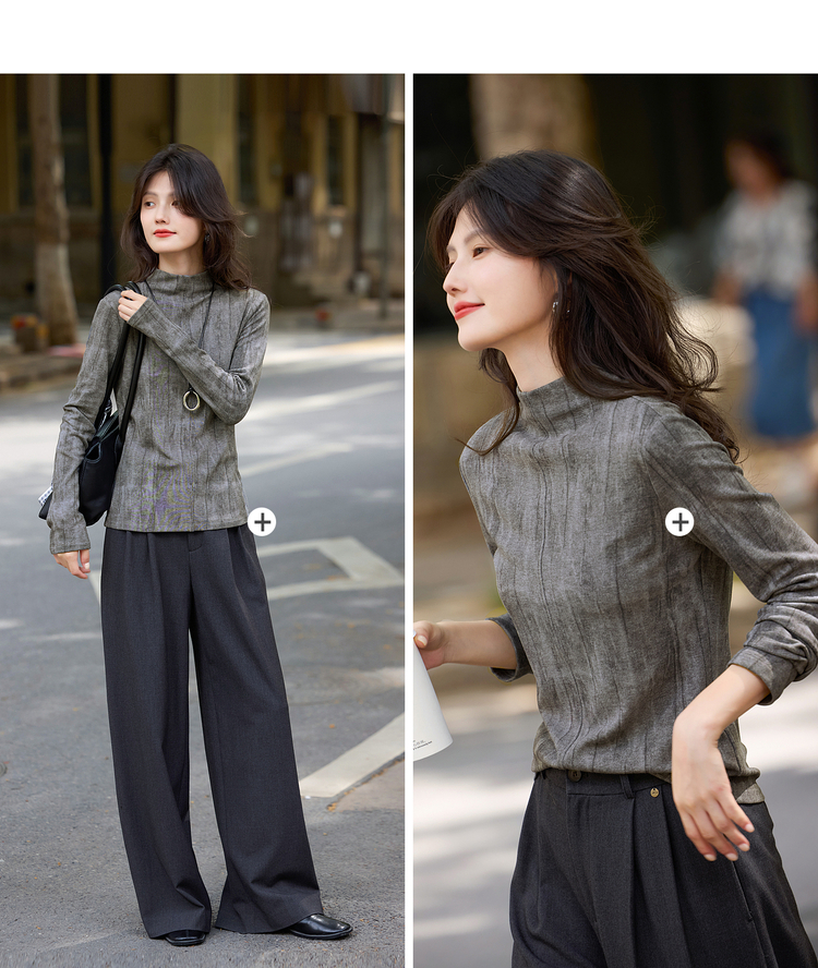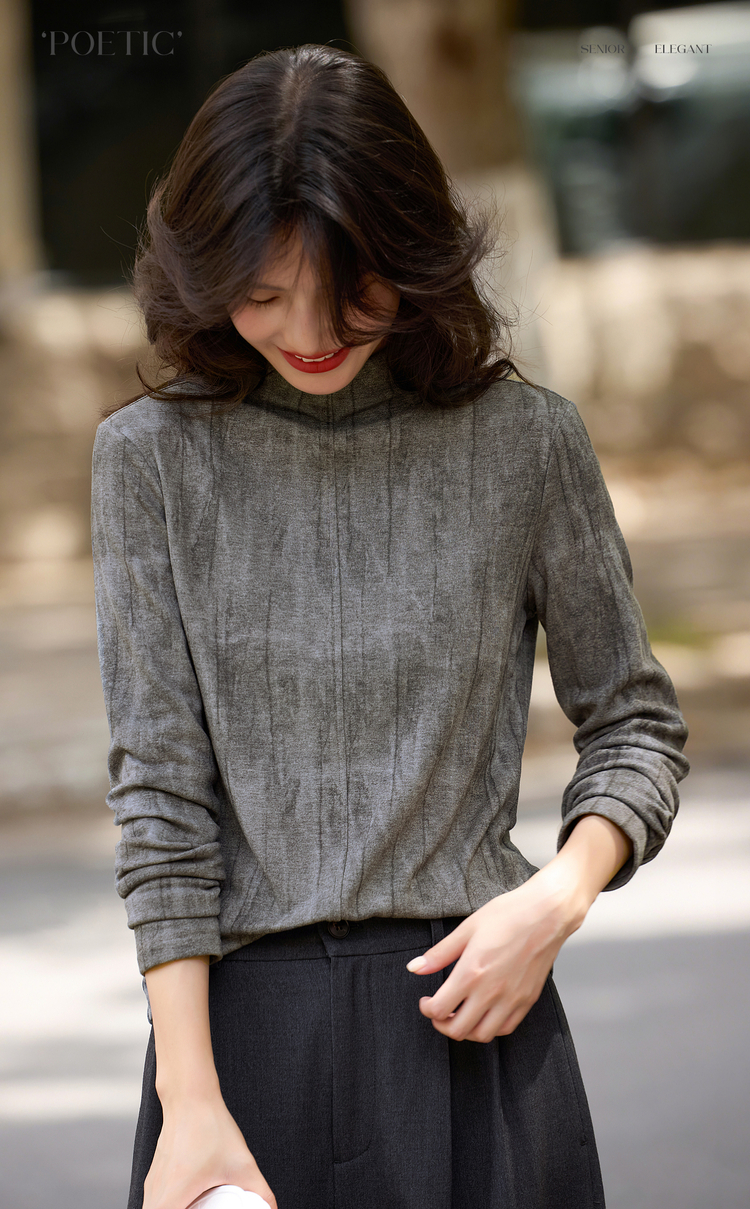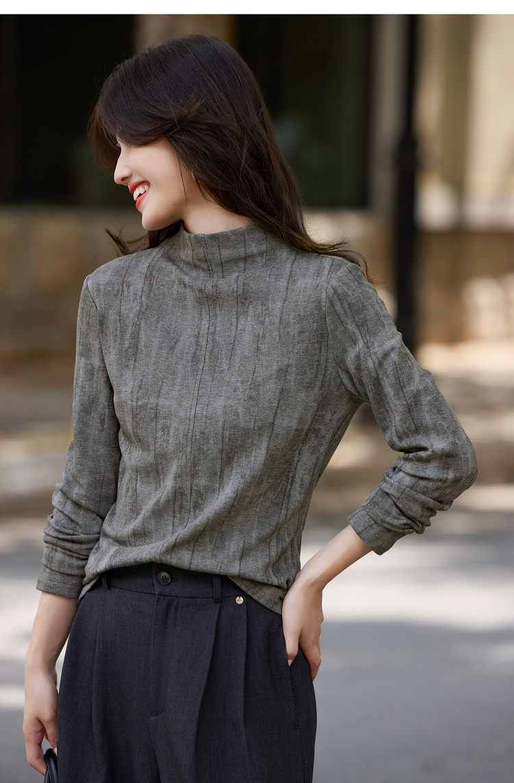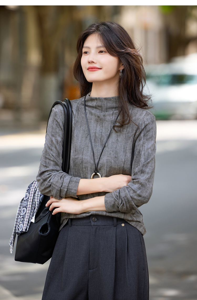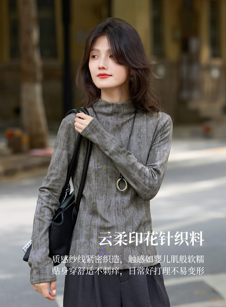 【11/5新品】熙世界云柔晕染针织T恤女长袖2025秋冬新款休闲内搭半高领打底衫
