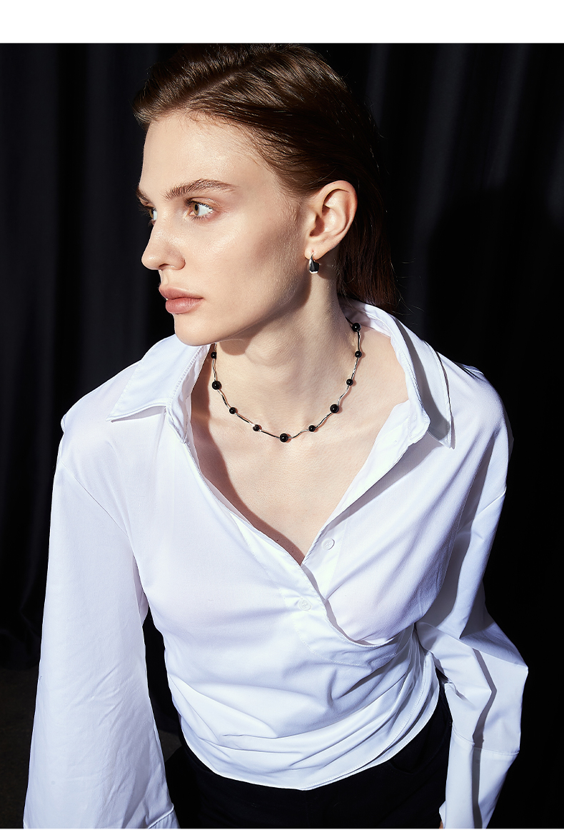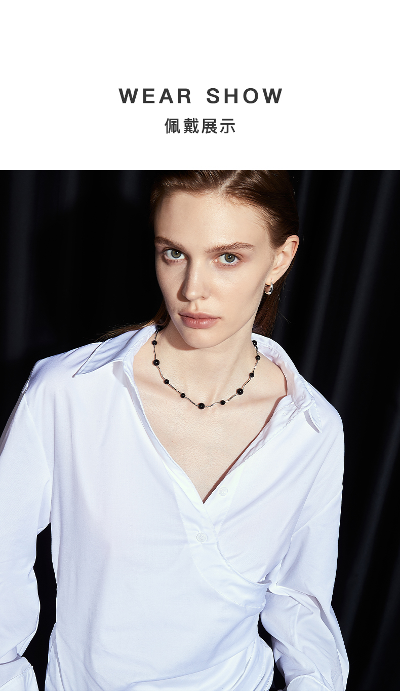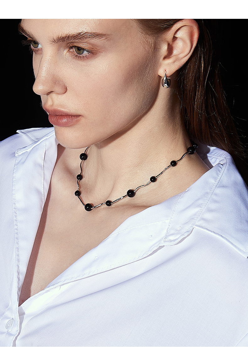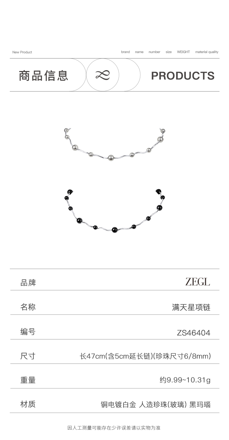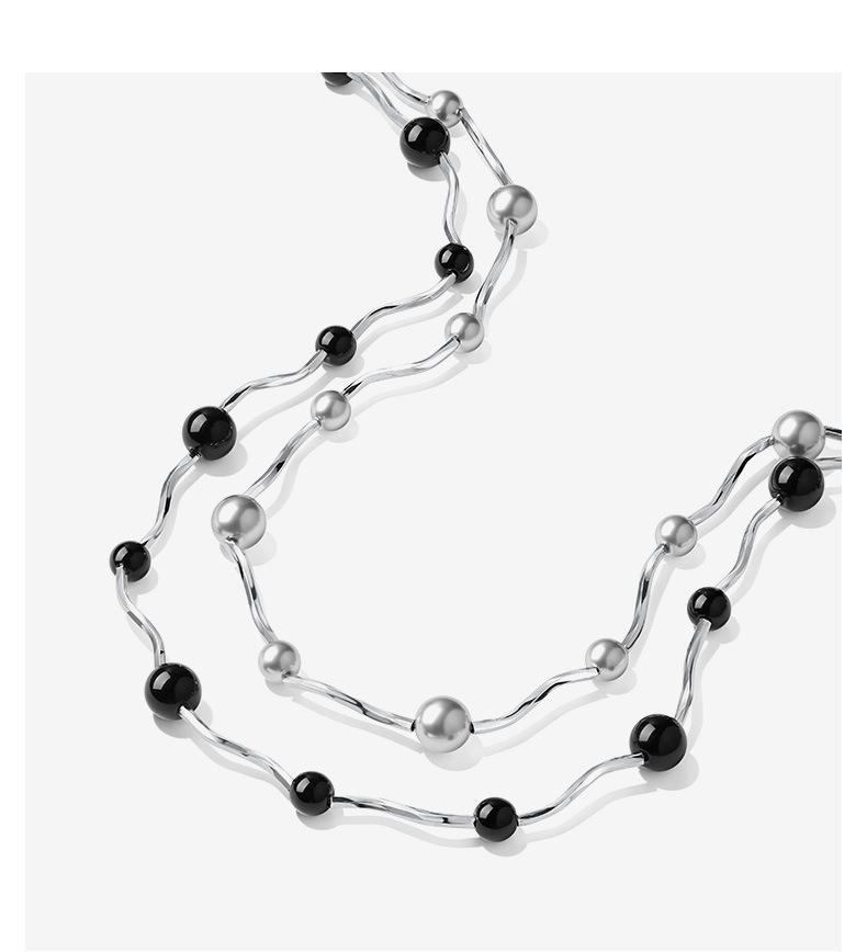 ZEGL灰色人造珍珠项链女款轻奢小众高级感锁骨链黑玛瑙秋冬毛衣链