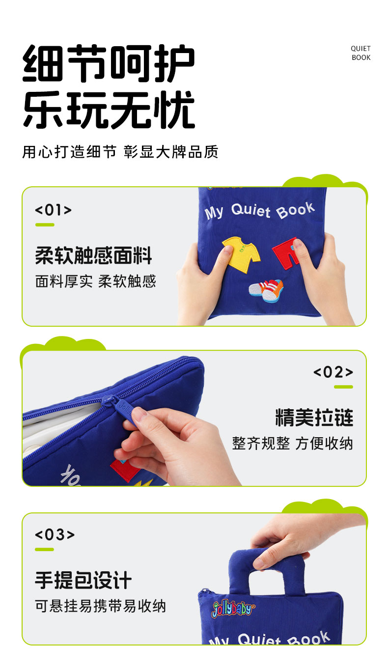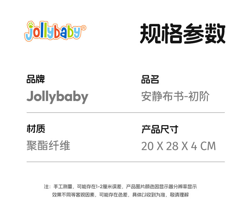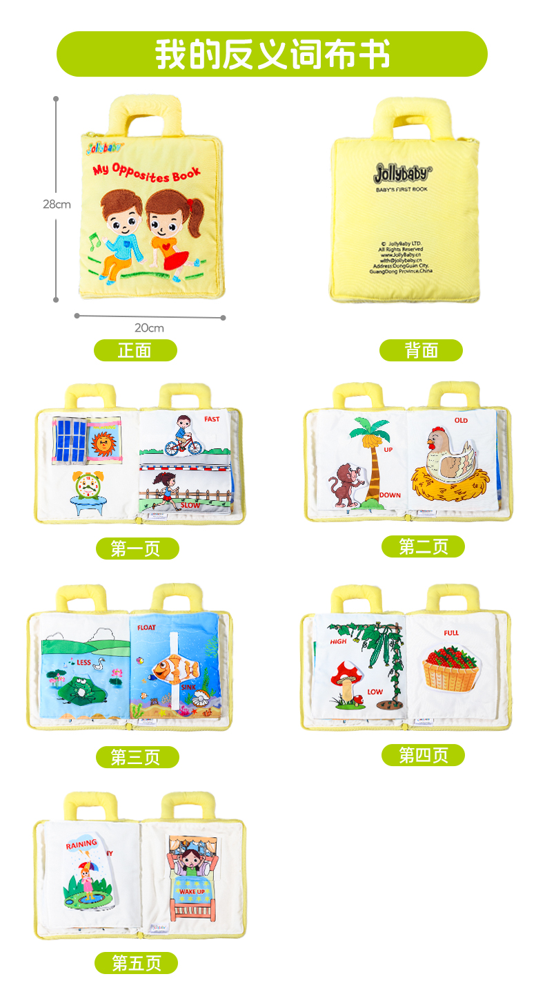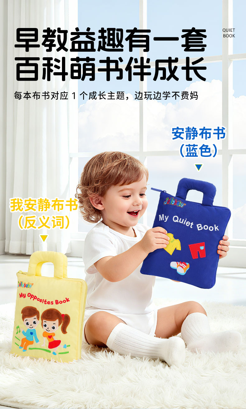 jollybaby婴儿安静布书撕不烂蒙氏早教书宝宝撕撕书动手玩具