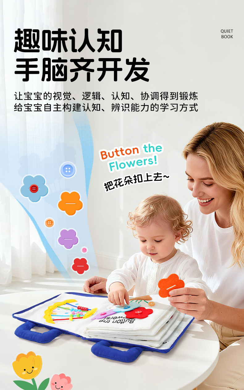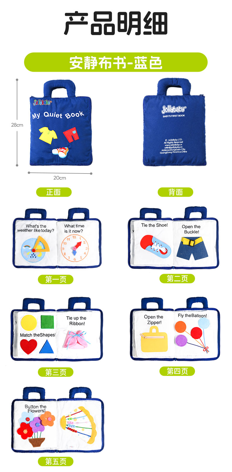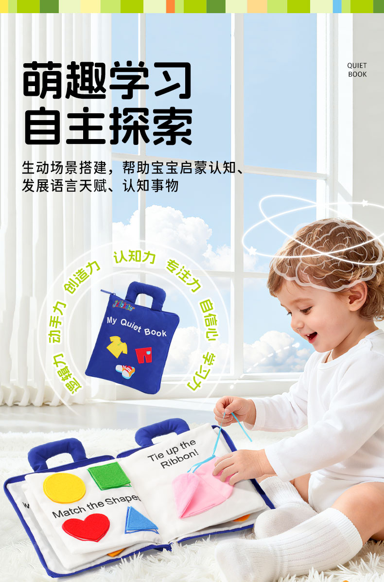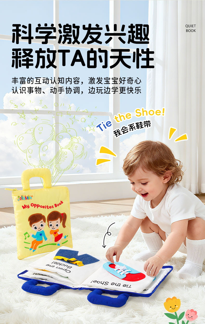 jollybaby婴儿安静布书撕不烂蒙氏早教书宝宝撕撕书动手玩具