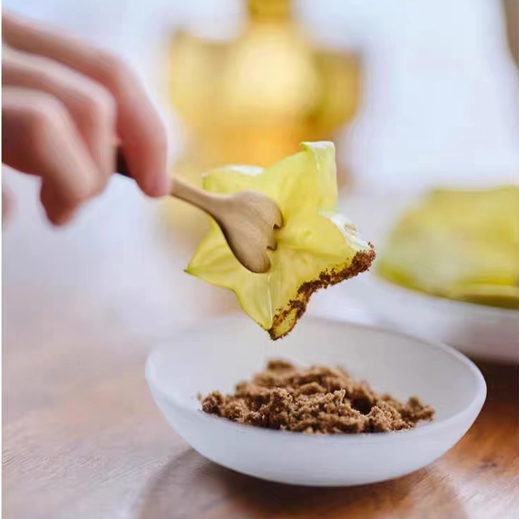 如果省去最后一起再打粉这一步,梅肉是整颗和其他原料经过炮制后打成的粉按照一定比例融合,就是我们的青梅果肉