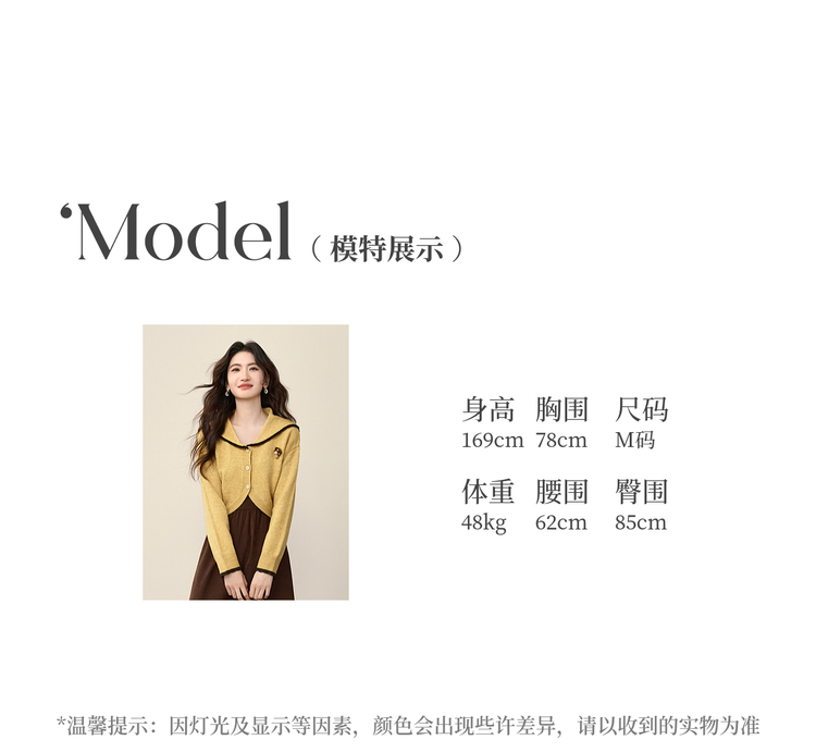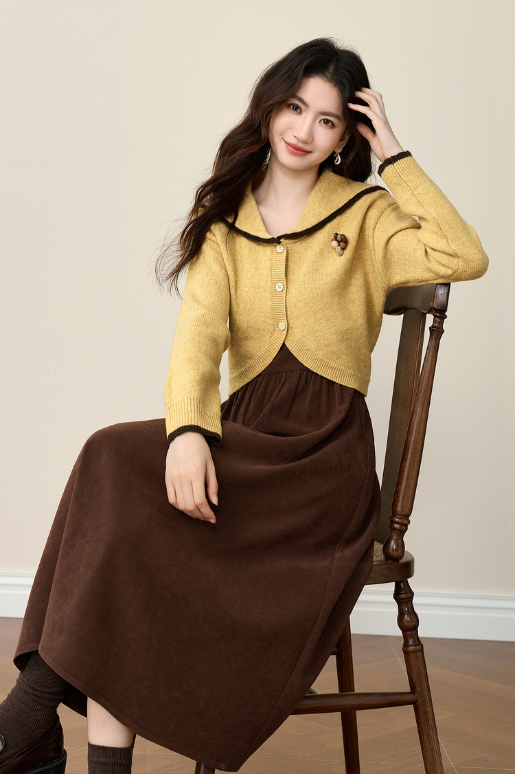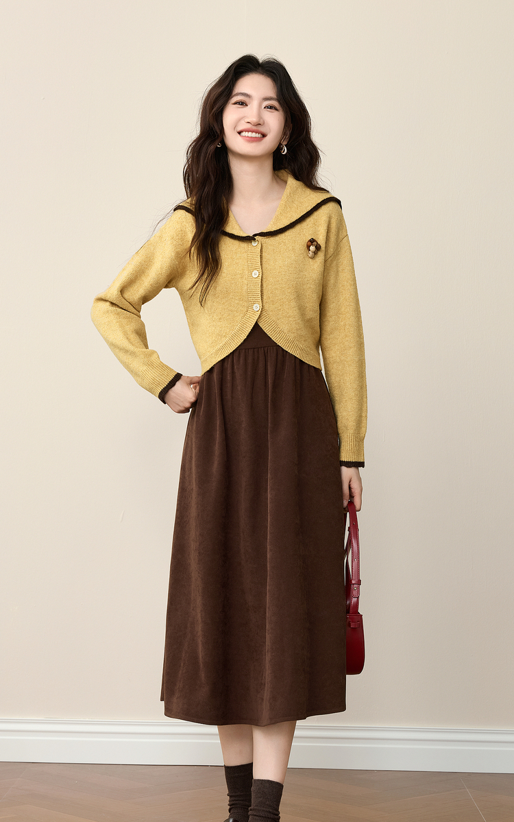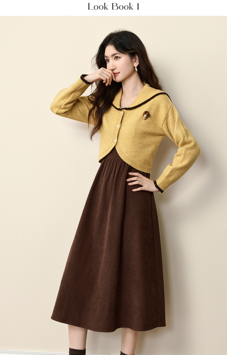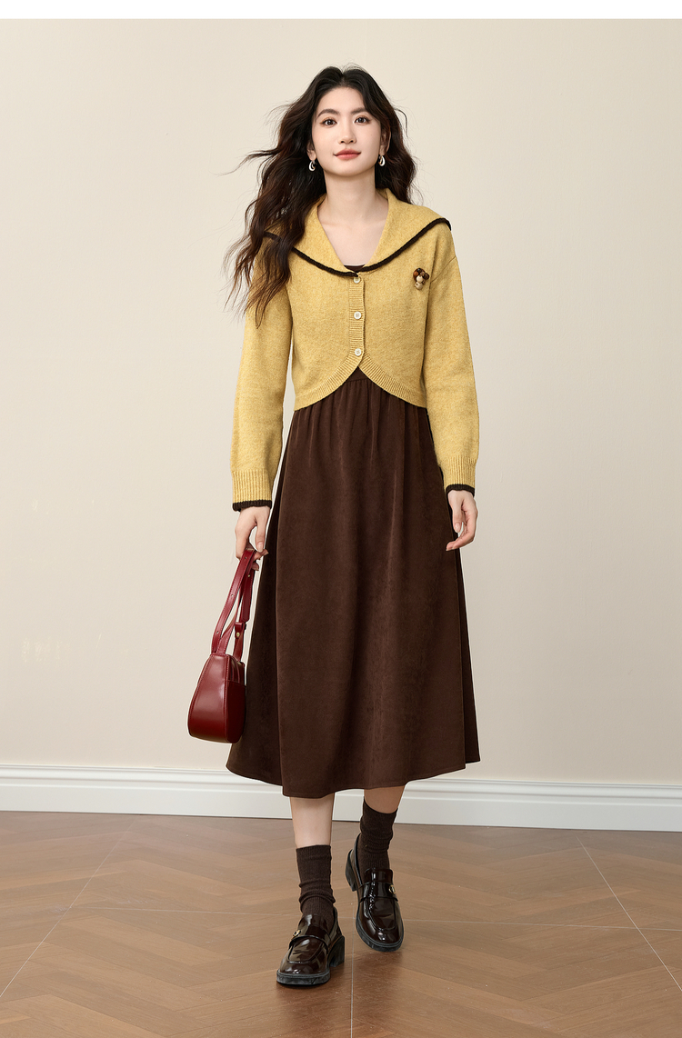 【12/10新品6折】熙世界千金感可露丽风套装女装秋冬短款翻领毛衣磨毛连衣裙两件套
