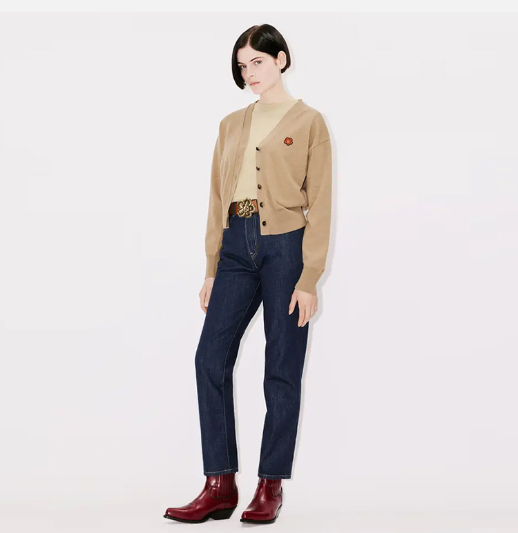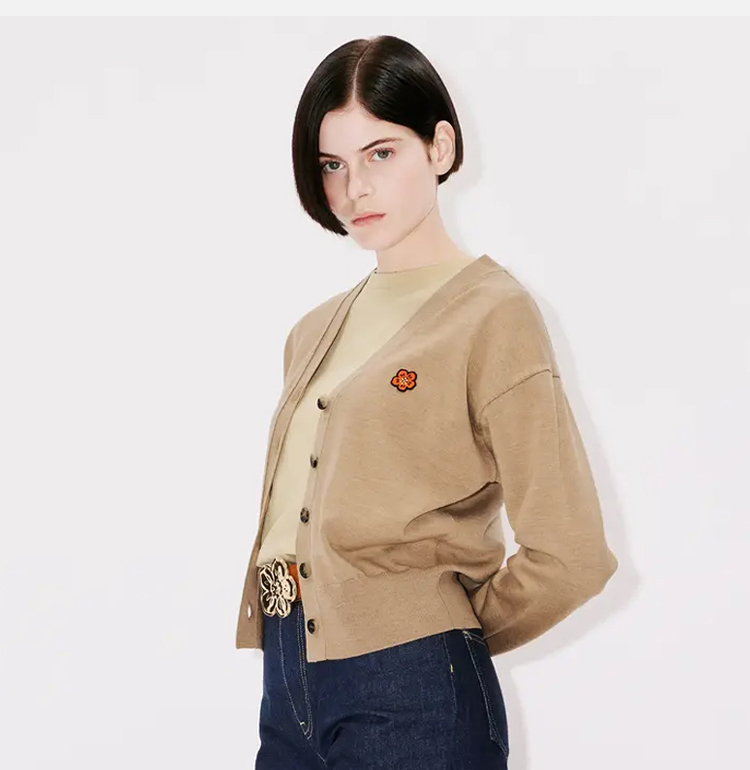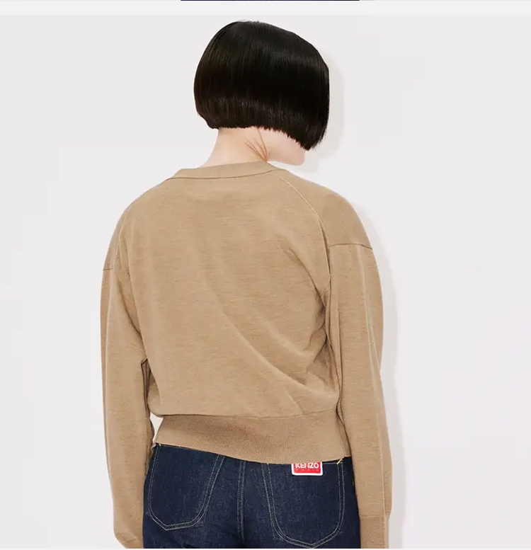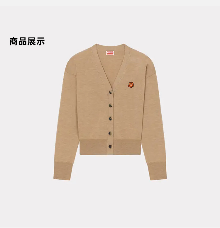 KENZO 高田贤三 女士小海棠花徽章刺绣针织开衫 驼色 FD52 CA383 3LB 87