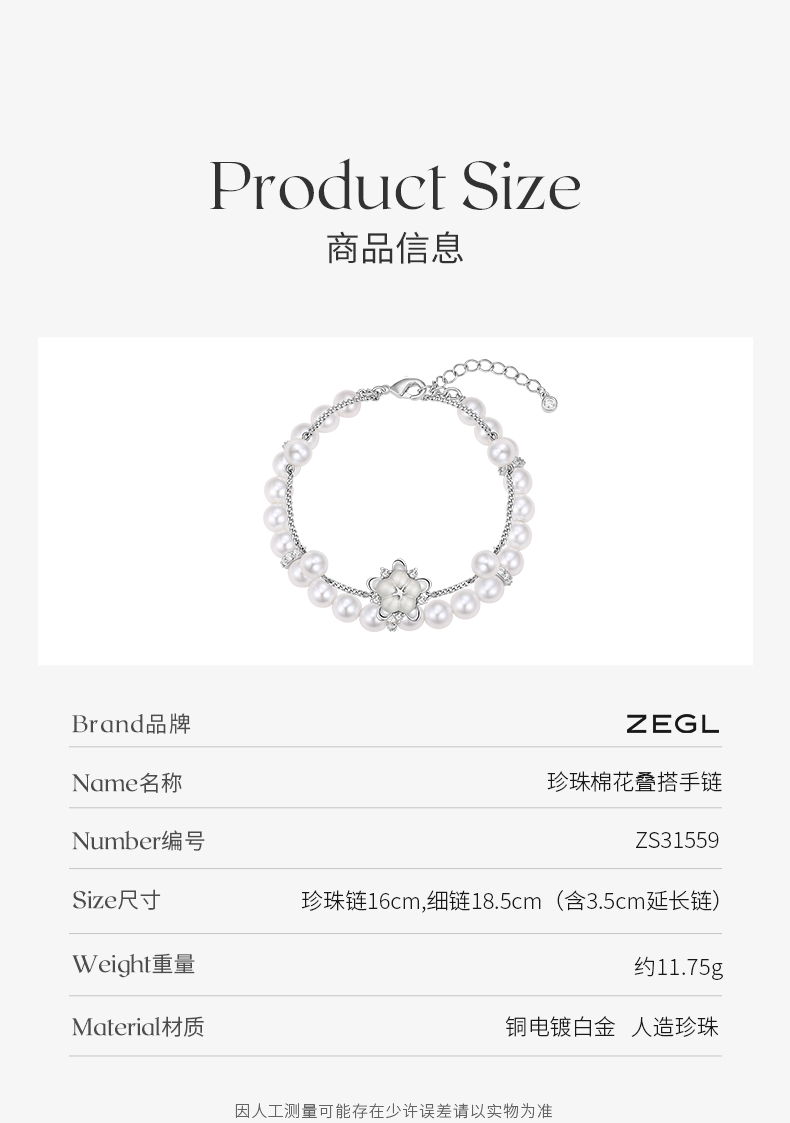 ZEGL设计师棉棉秋语系列人造珍珠手链女巴洛克轻奢2022年新款手饰