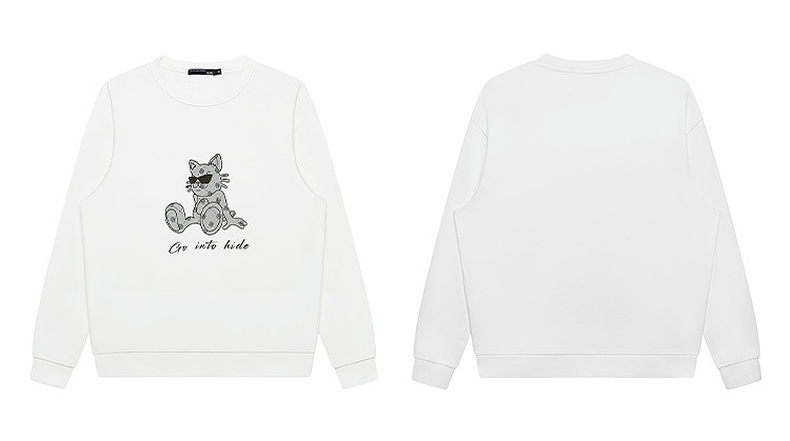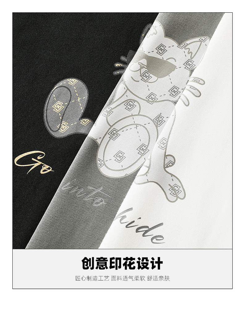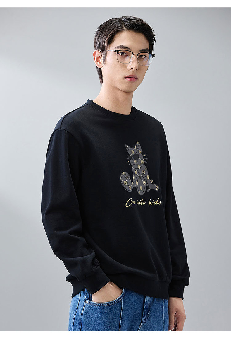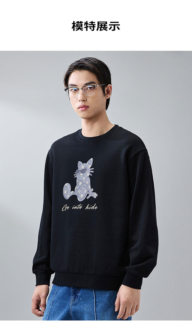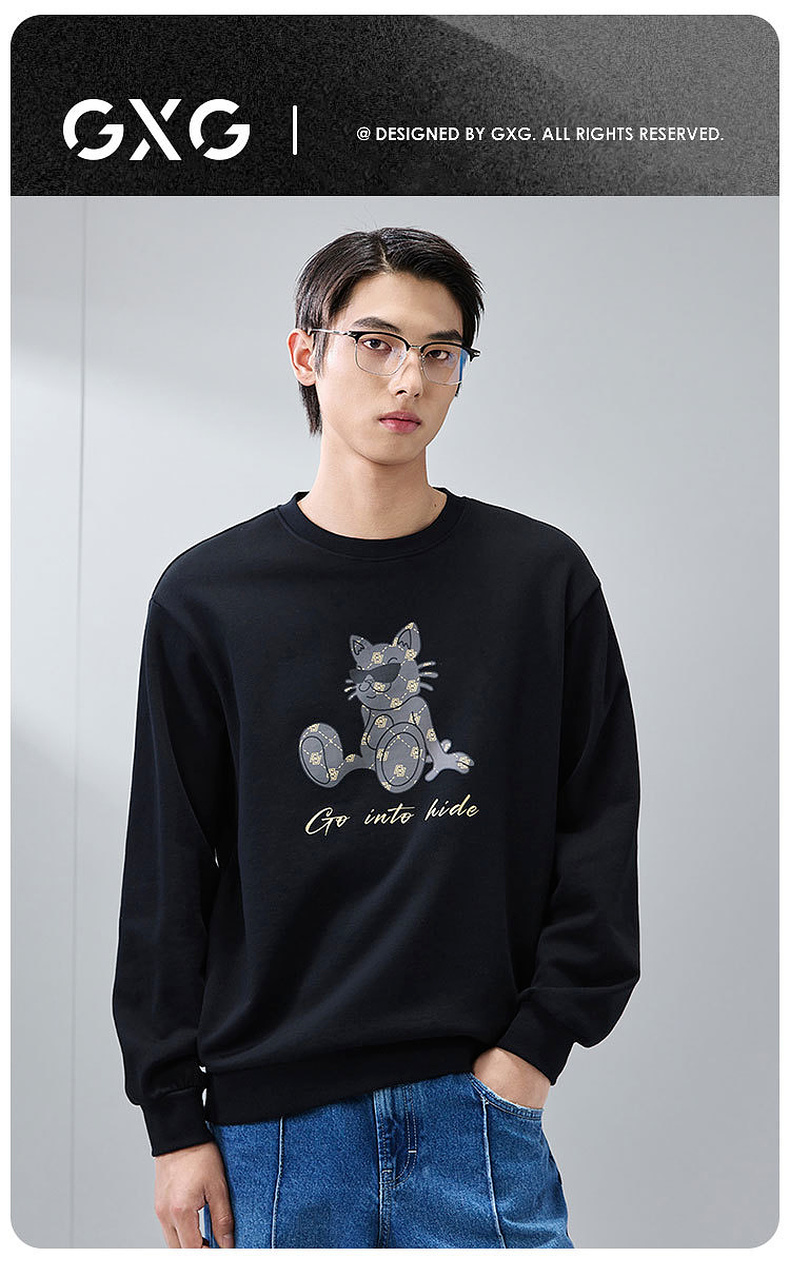 GXG男装【100%棉】春季卡通眼镜小猫情侣款圆领卫衣K&C
