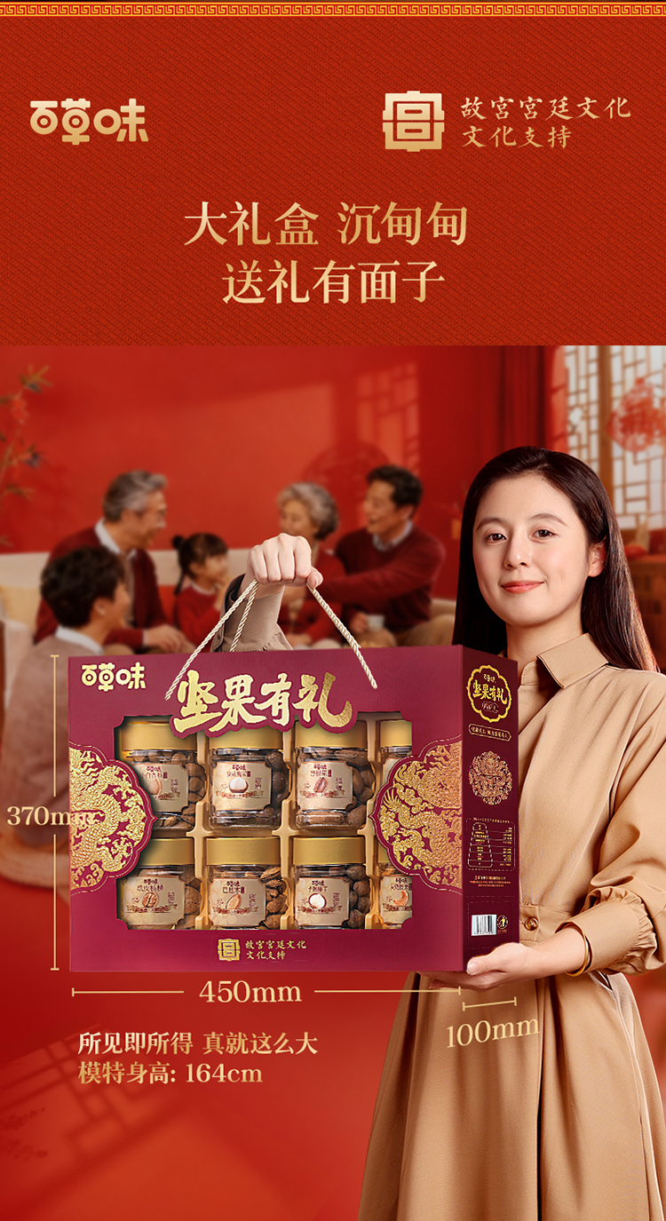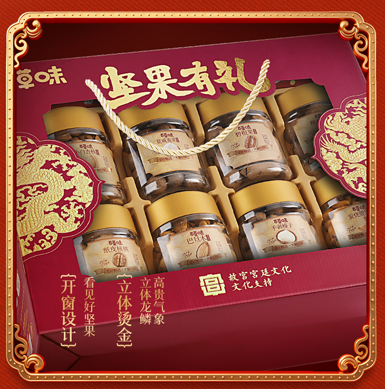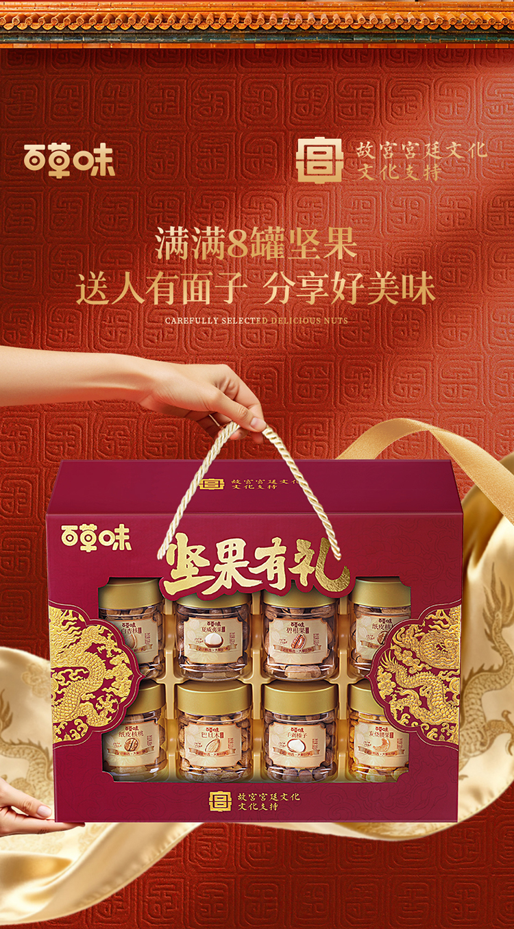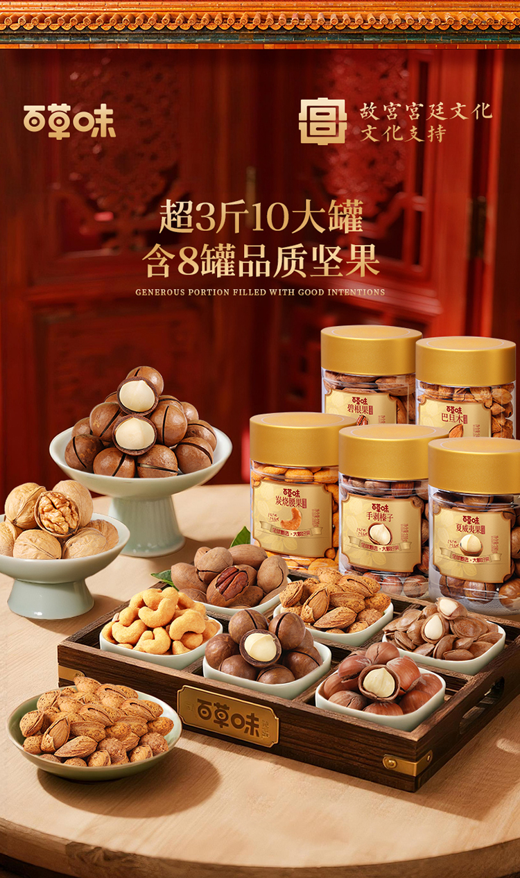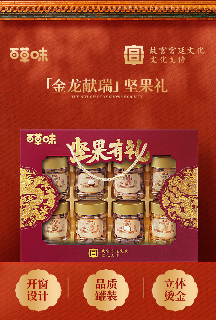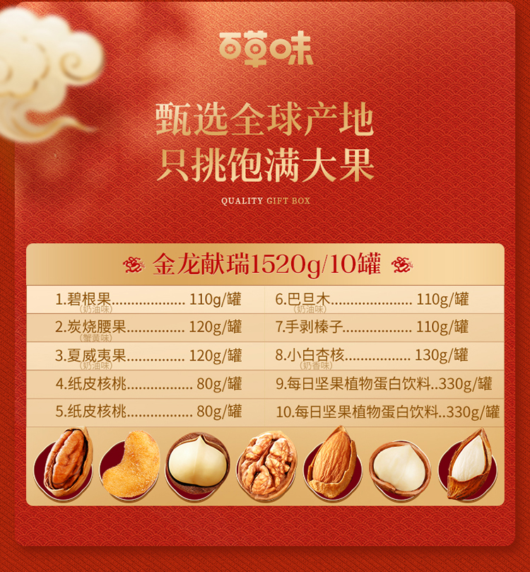 【百草味】罐装坚果零食礼盒B2-1520g(坚果有礼-椭开窗)金龙献瑞zb
