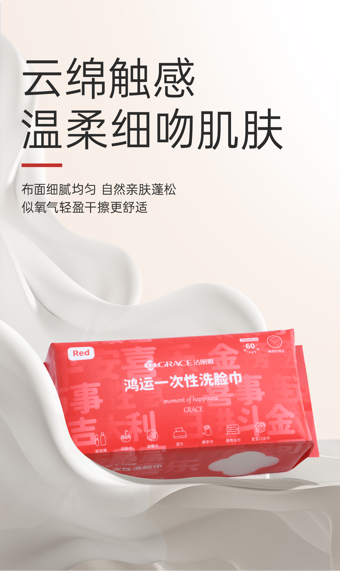 洁丽雅新年装一次性洗脸巾加厚干巾擦脸家用洁面洗脸巾棉柔巾亲肤