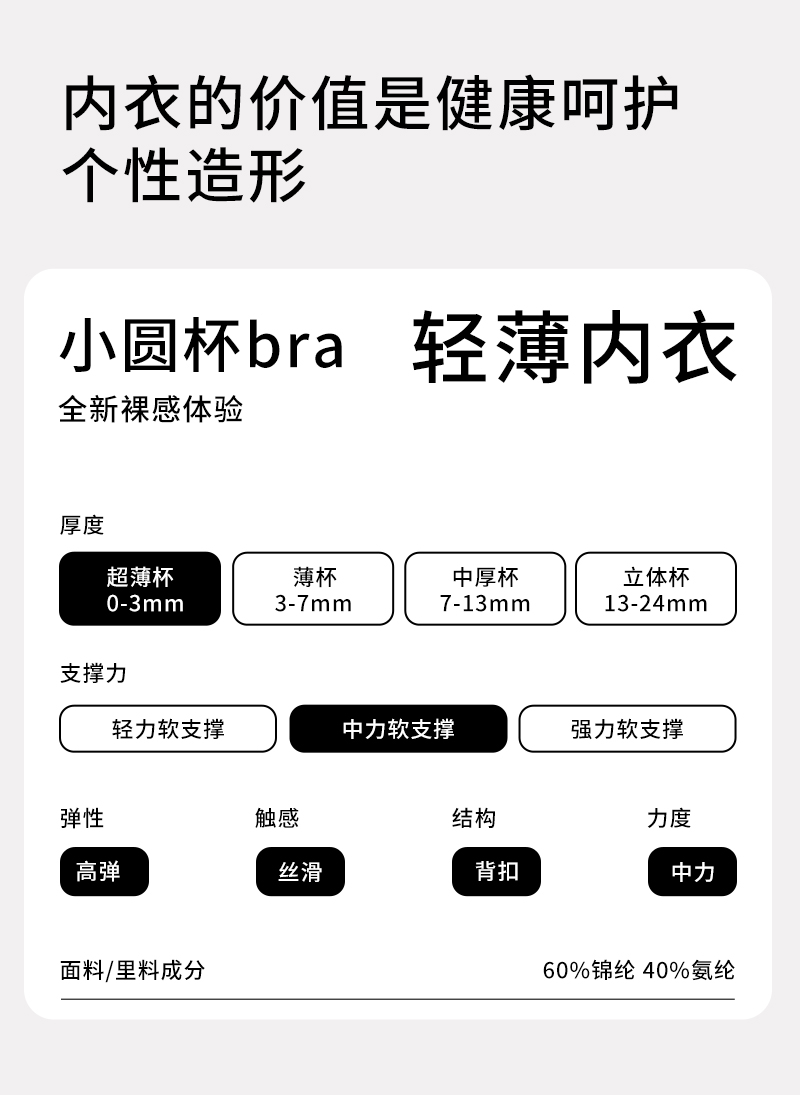 *【清仓】半醒小圆杯bra 大胸显小软钢圈无痕透气文胸B0065