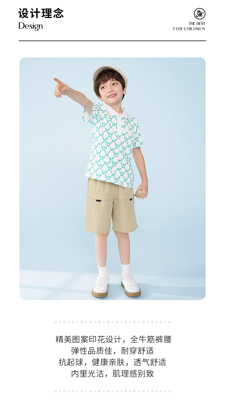 mettekids男童短裤夏季儿童休闲运动工装裤中大童时尚薄款五分裤