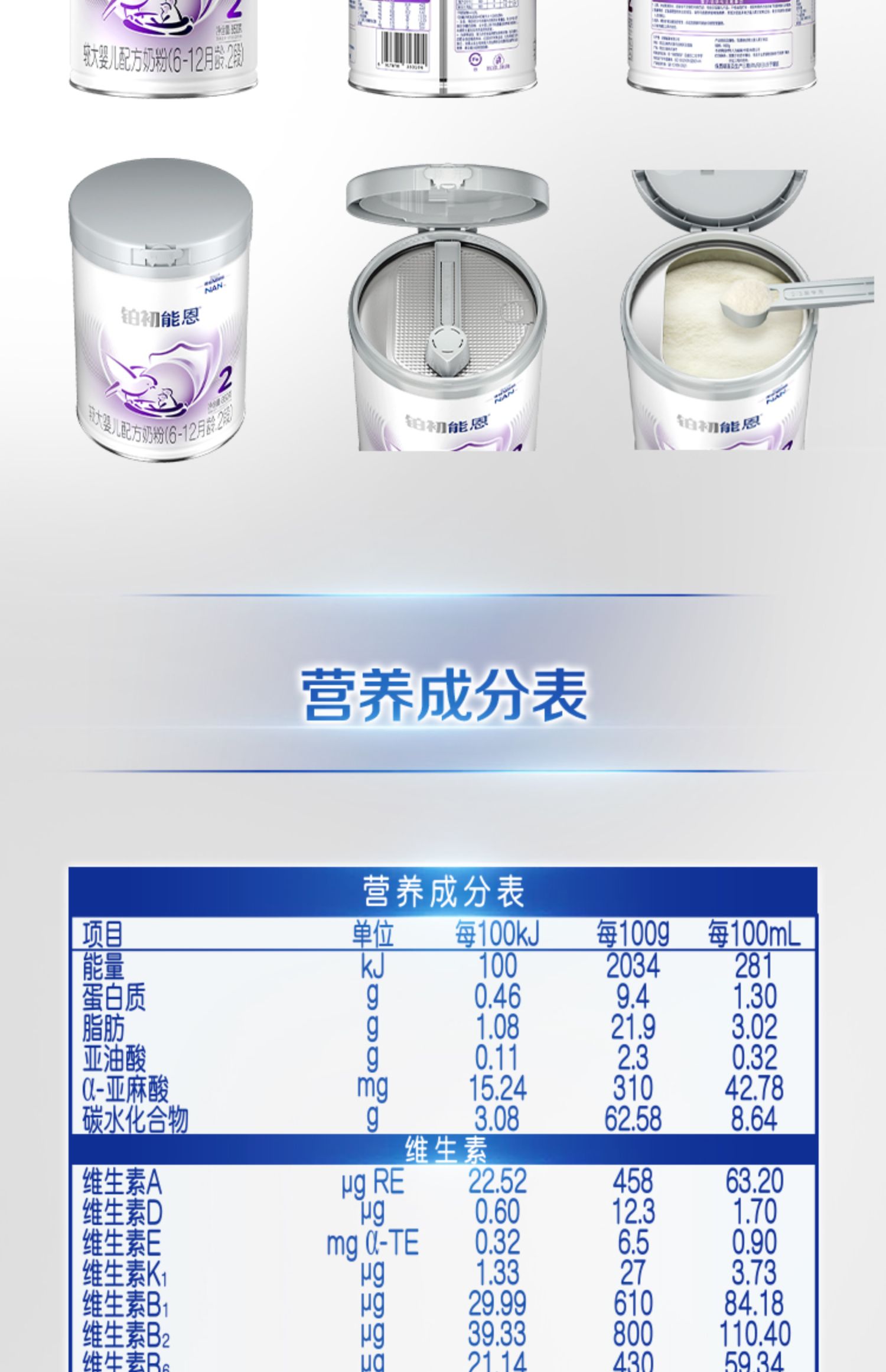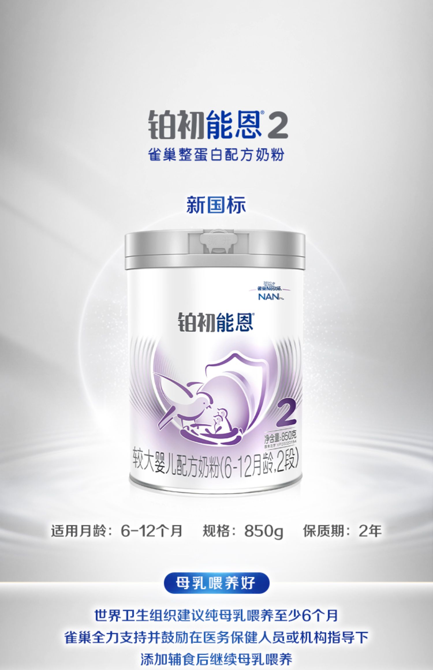 雀巢铂初能恩较大婴儿配方奶粉2段850g
