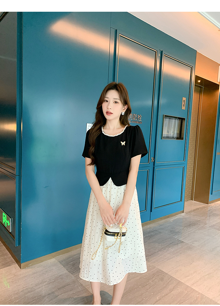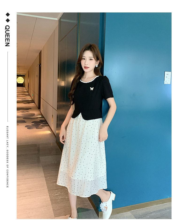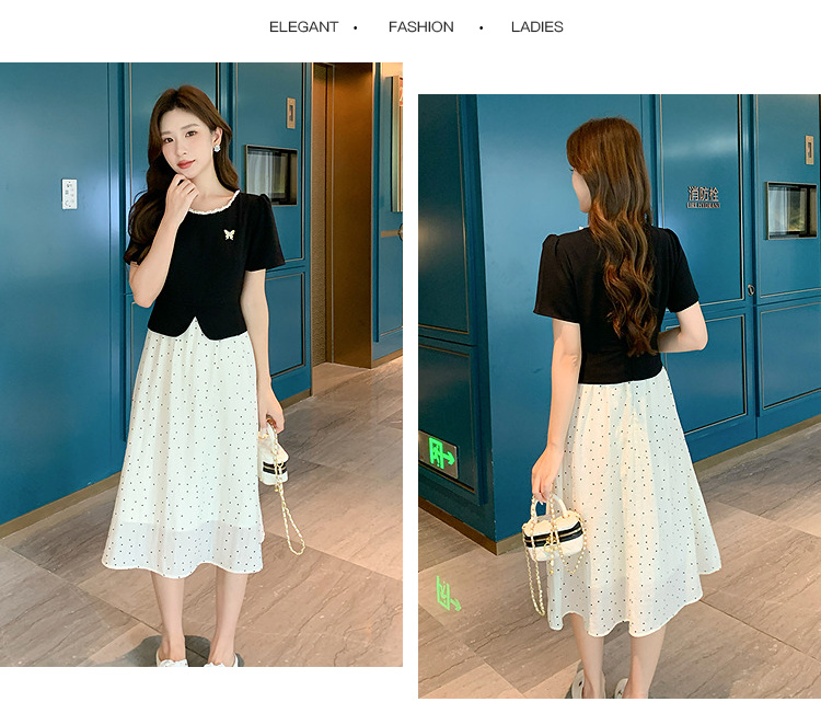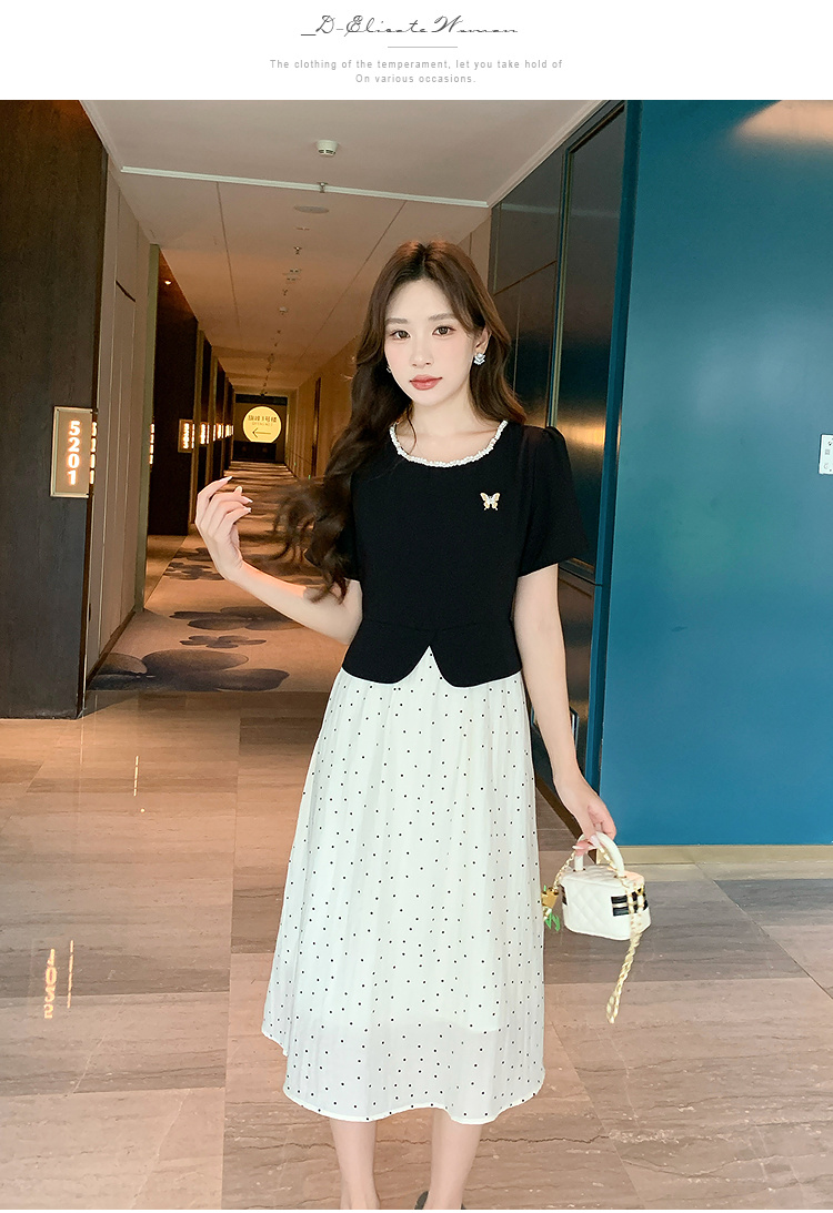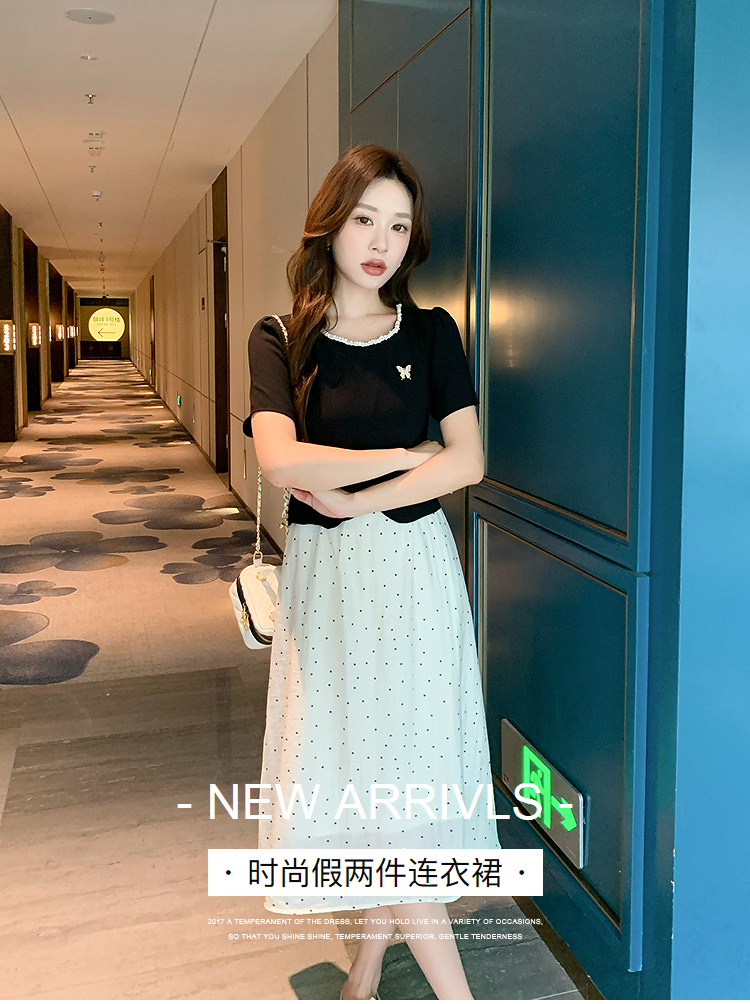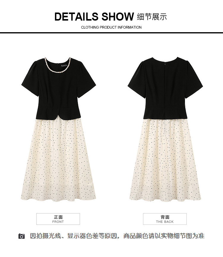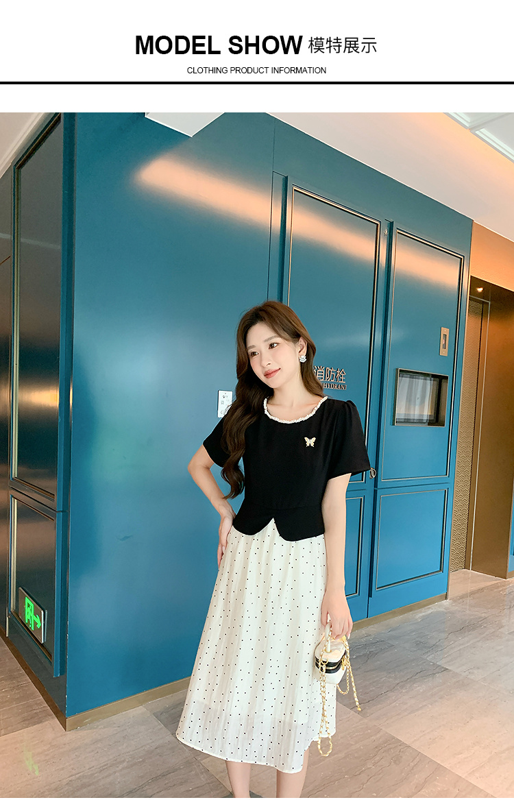 奢姿大码女装2026夏季减龄钉珠波点假两件连衣裙胖妹妹时尚裙子9952890557