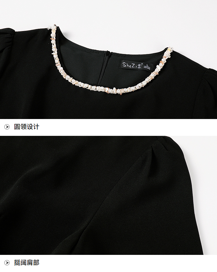 奢姿大码女装2026夏季烫钻圆领雪纺连衣裙胖妹妹遮肉减龄A字裙9962892433