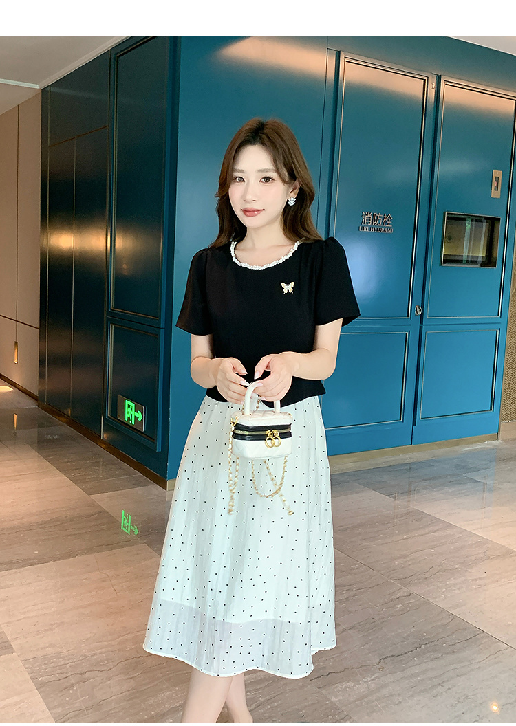 奢姿大码女装2026夏季撞色拼接半裙套装V领遮肉通勤中长裙两件套9962960039