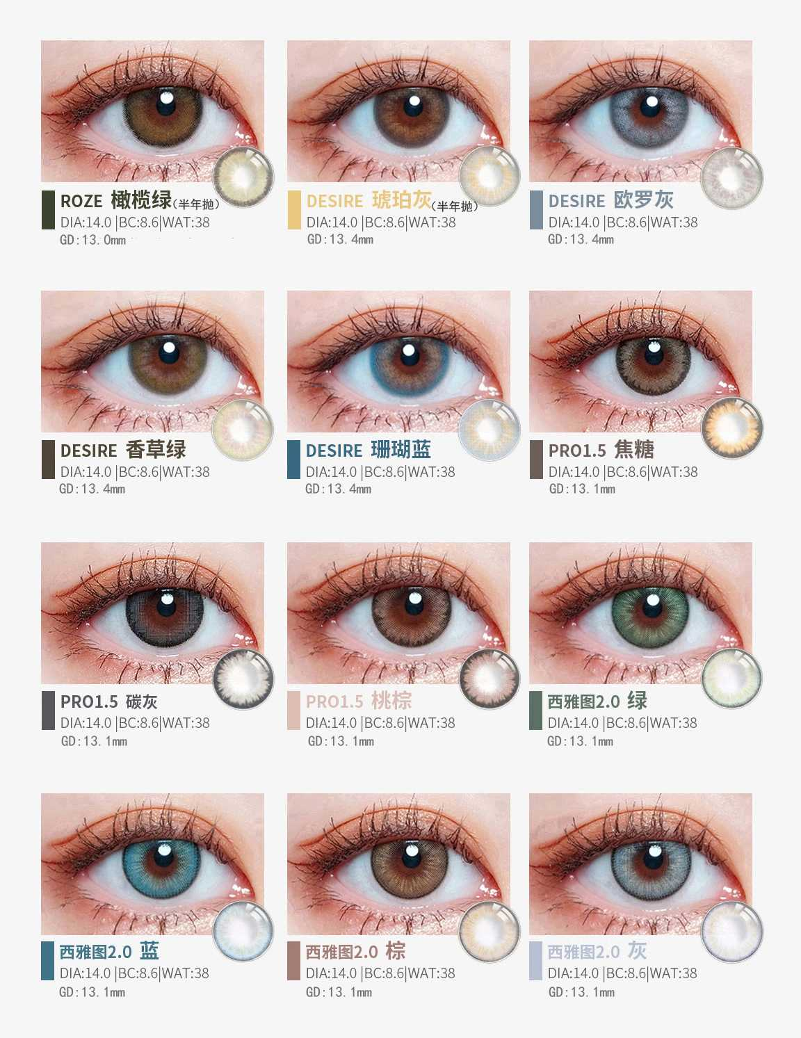 镜片材质: 硅水凝胶年抛