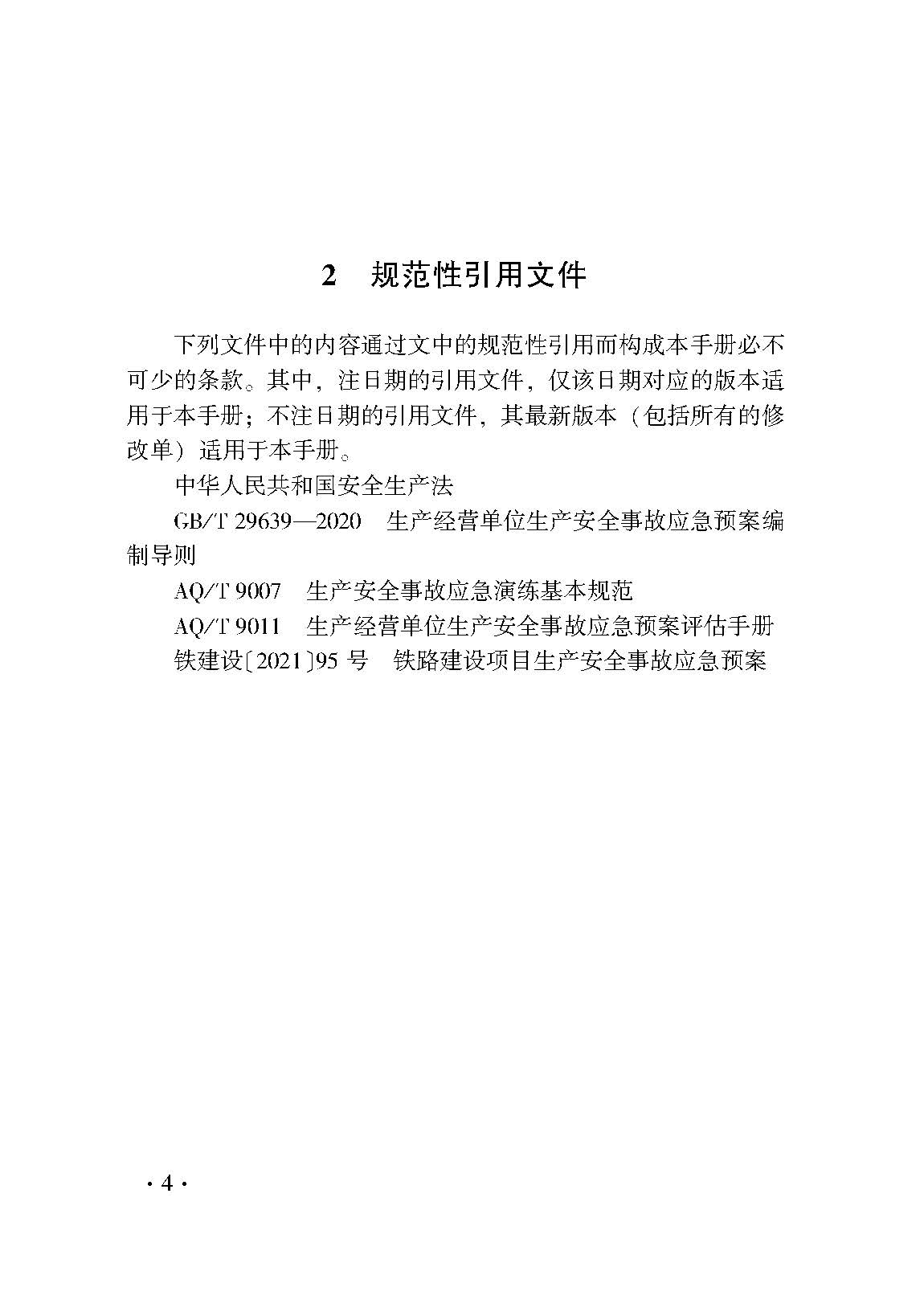 根据相关法律法规和预案管理要求编制本手册,旨在全面提升铁路建设项目生产安全事故灾害的有效预防能力、应急处置和救援能力,有序实施应急救助,及时
