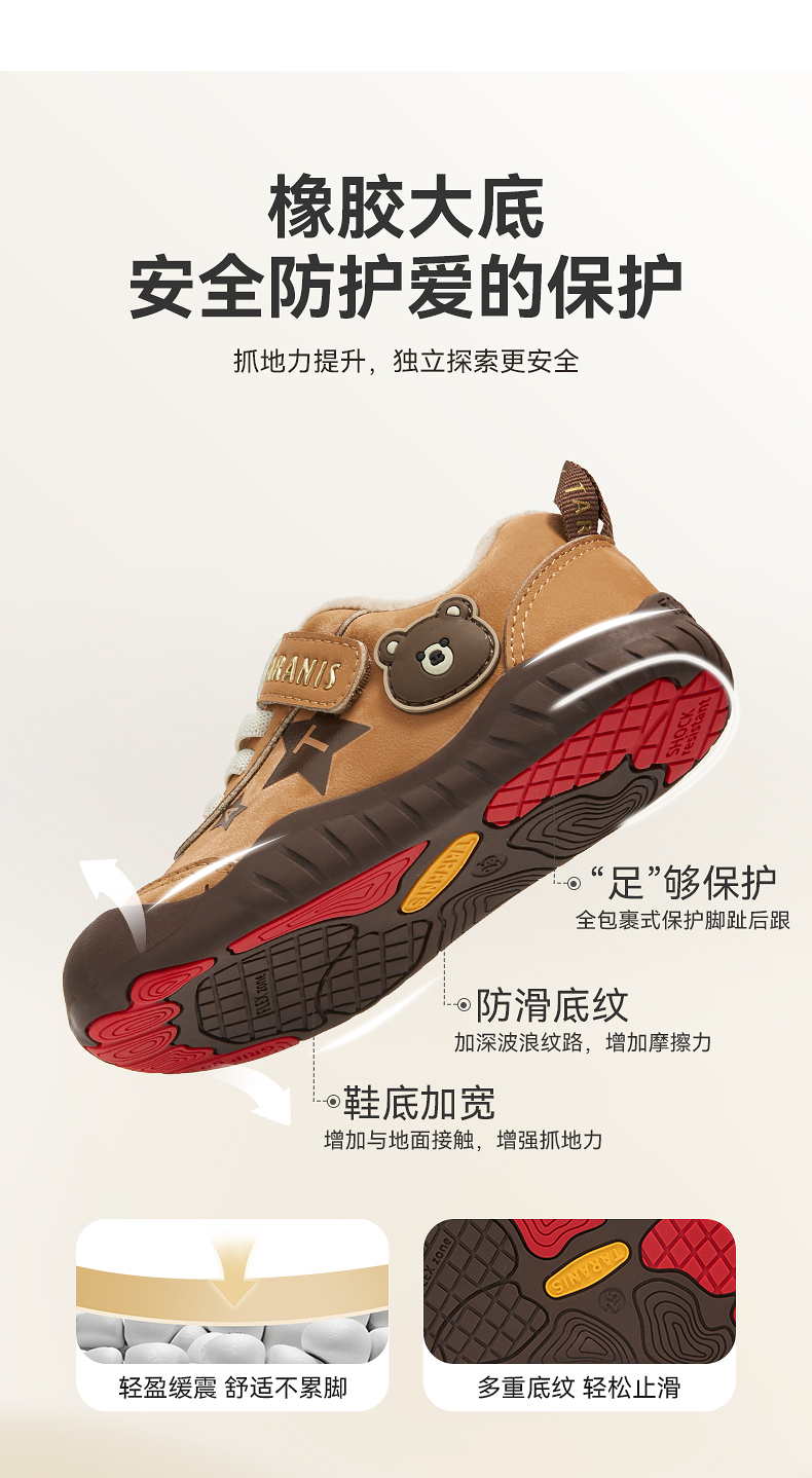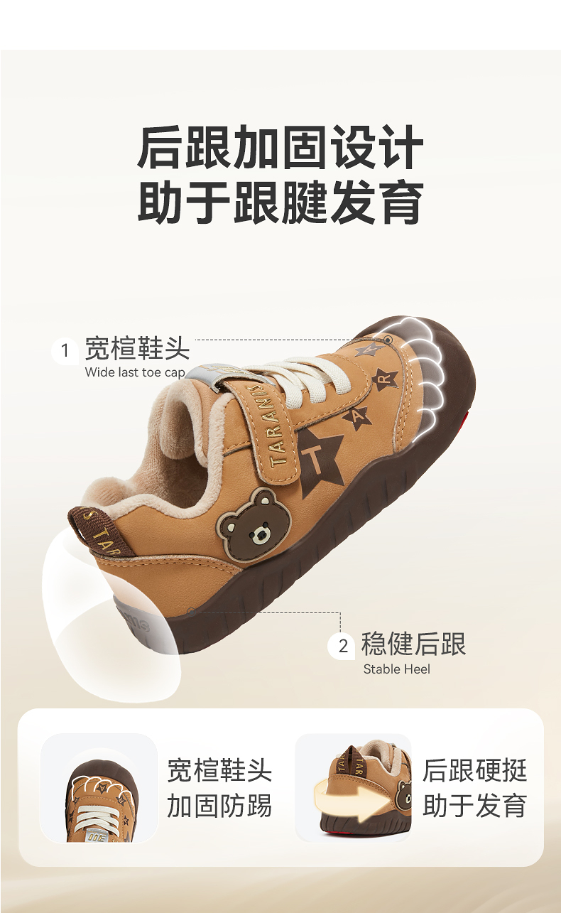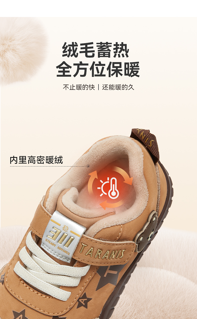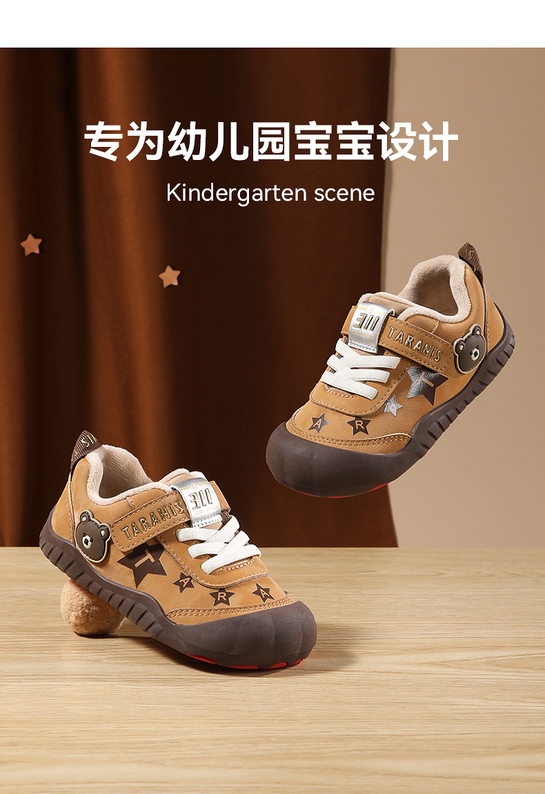 泰兰尼斯童鞋冬季新款室内鞋男女童幼儿园鞋儿童板鞋复古保暖休闲T02X5D7529