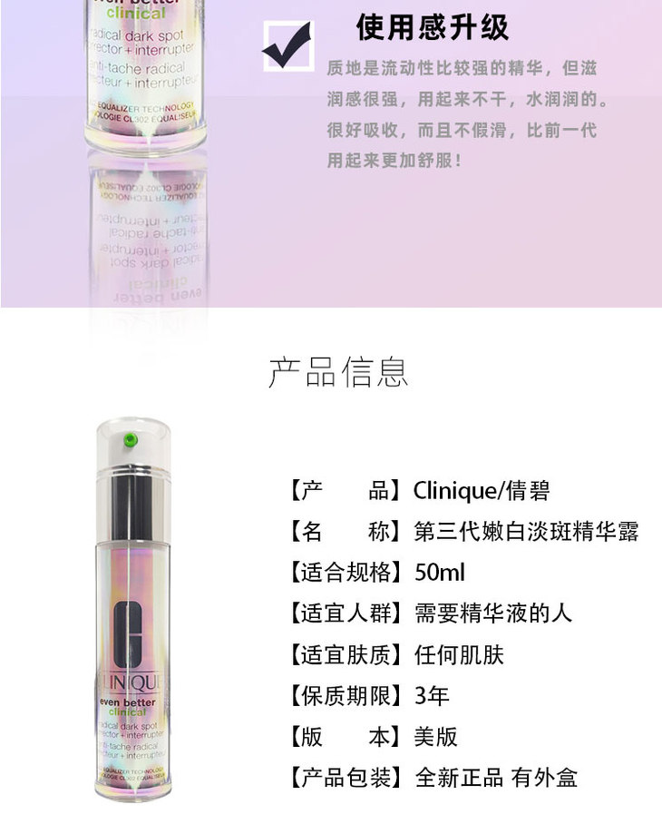 【现货】CLINIQUE/倩碧 302透白镭射精华液 30ml/50ml