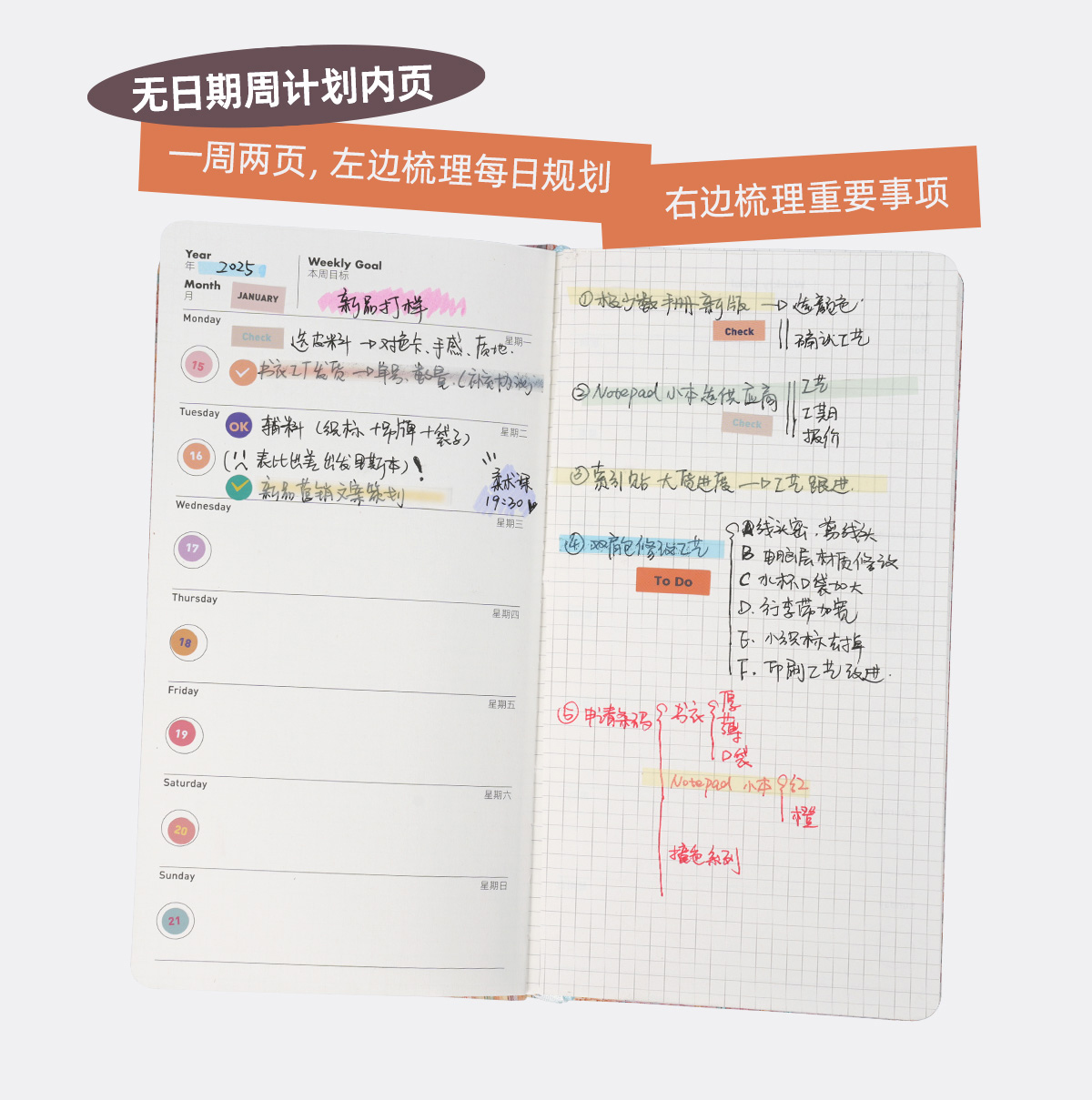 趁早编织系列A5slim窄版自填日期周计划本日程记事本随身高颜值手账笔记本