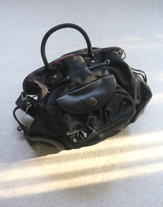 可手提 可斜跨 手柄是尼龙织物 包身上的褶皱 就是这么设计的 不是瑕疵