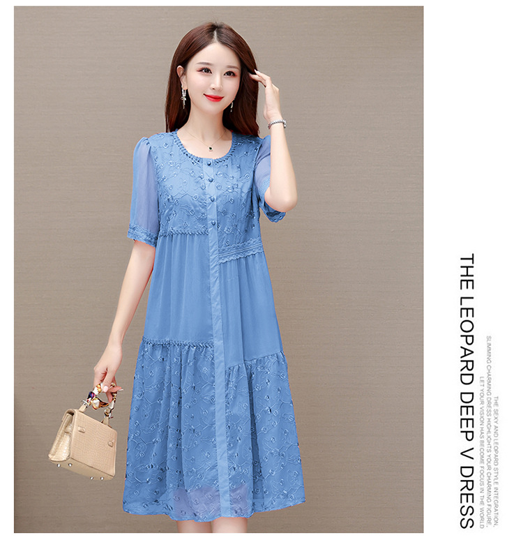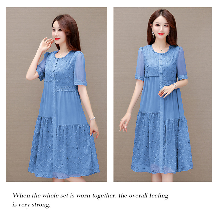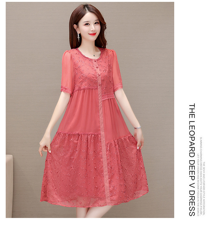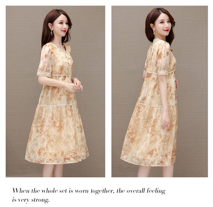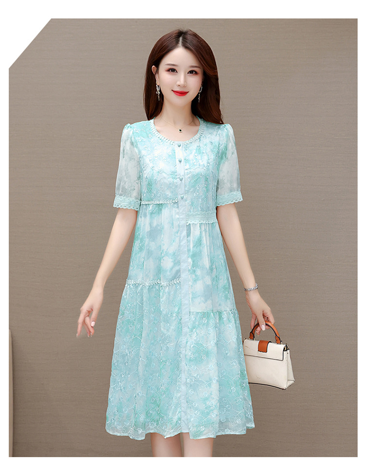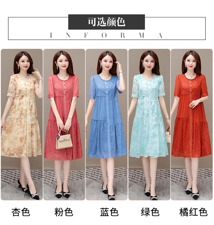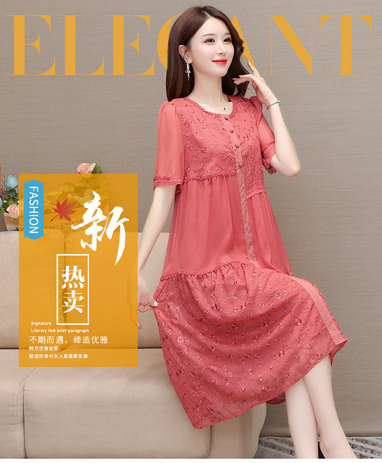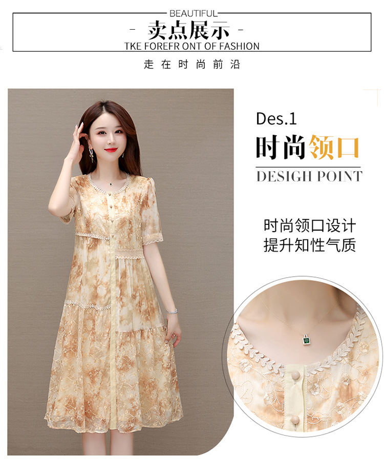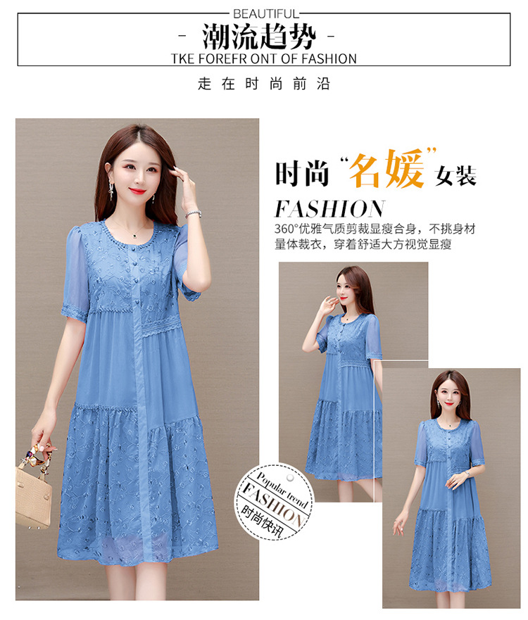 重工刺锈花裙子,夏季新款短袖裙结结中长款宽松休闲裙QYM-XY-23HDA30-Y