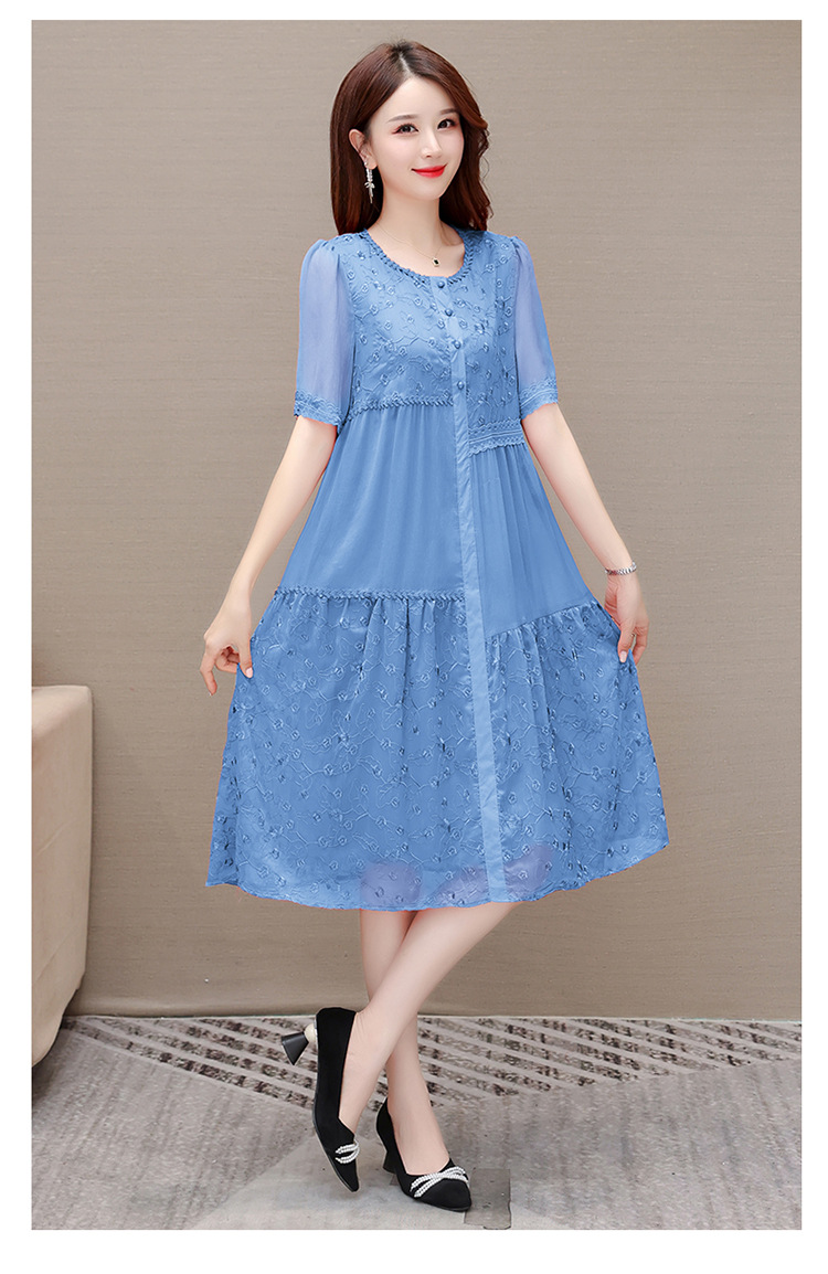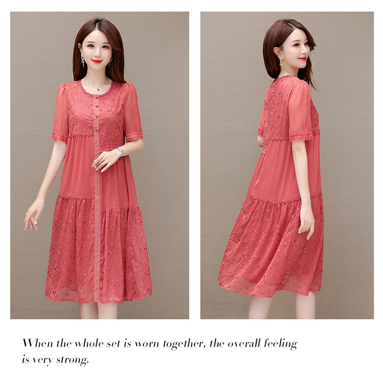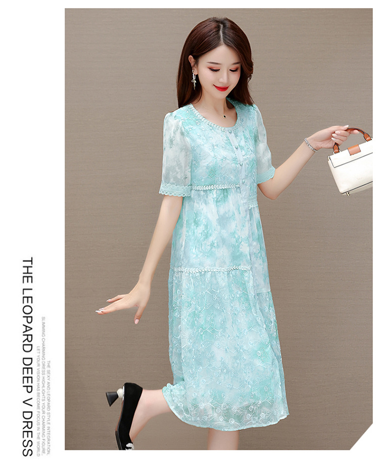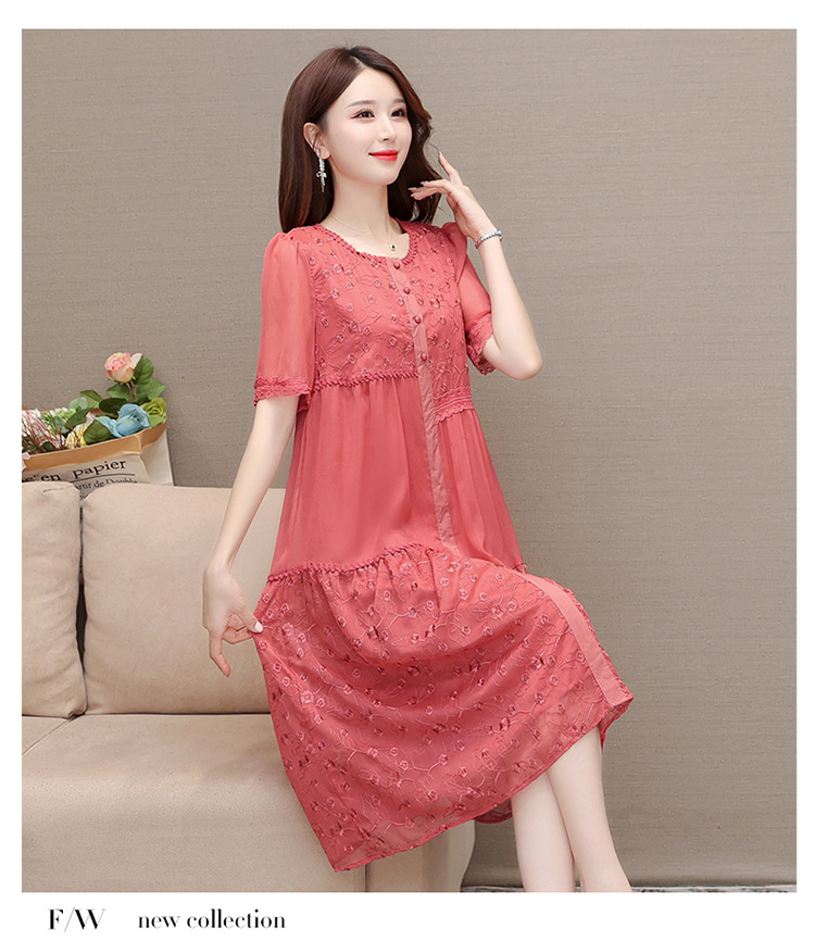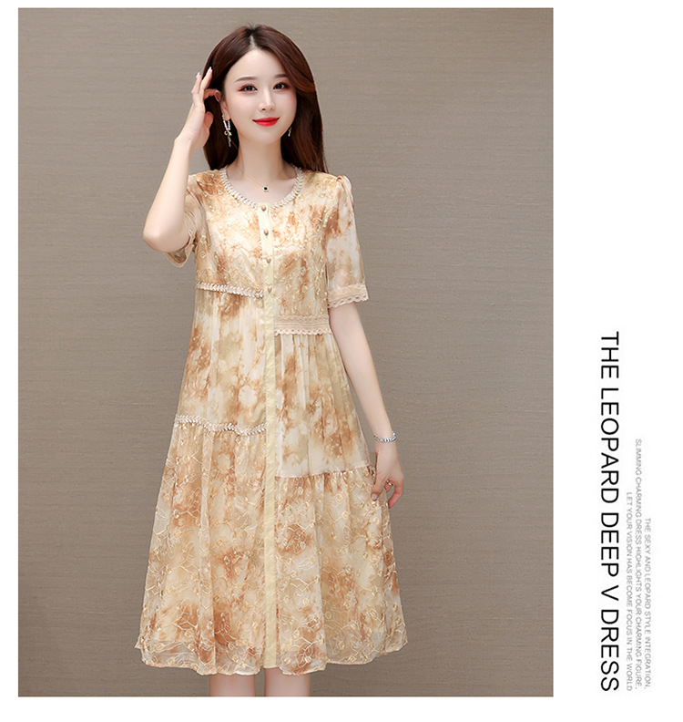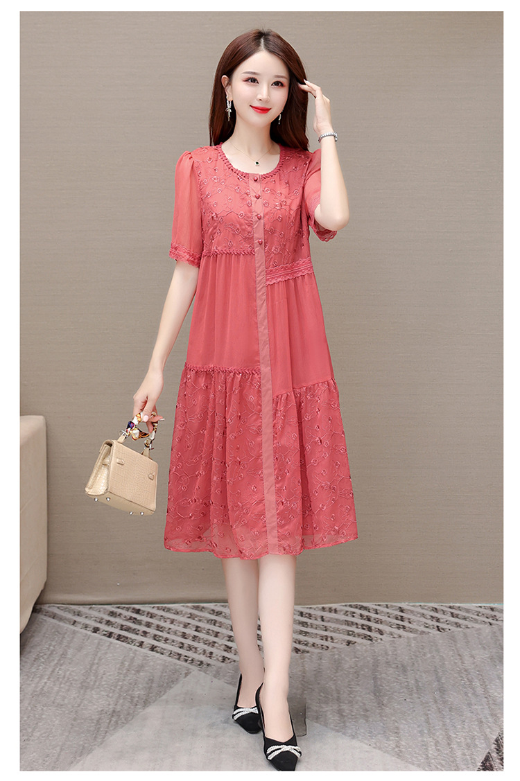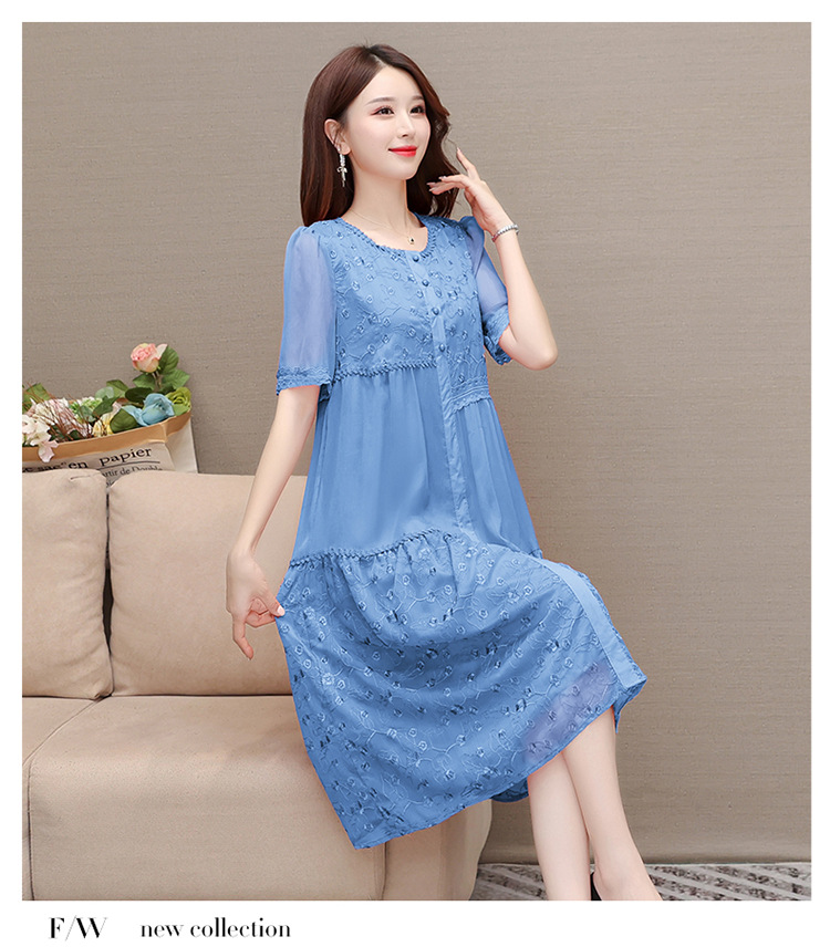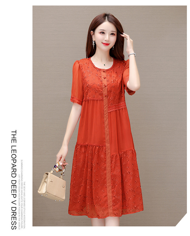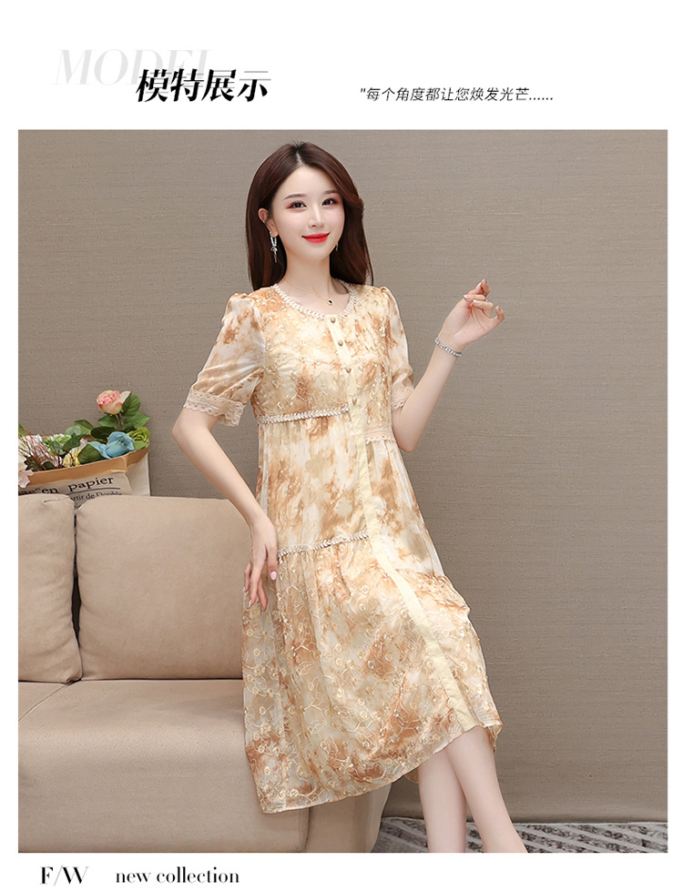 重工刺锈花裙子,夏季新款短袖裙结结中长款宽松休闲裙QYM-XY-23HDA30-Y