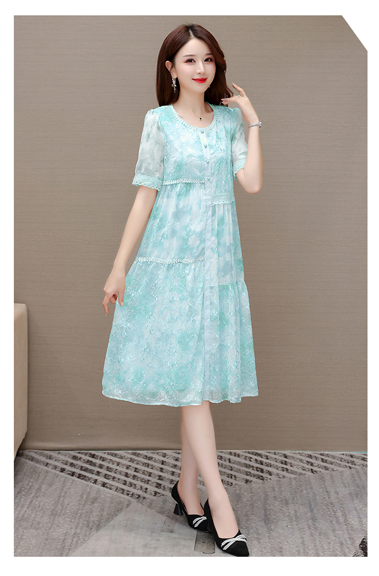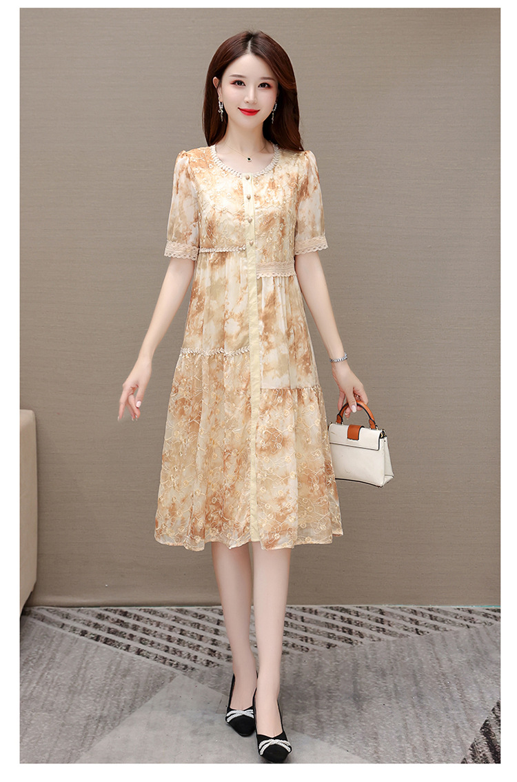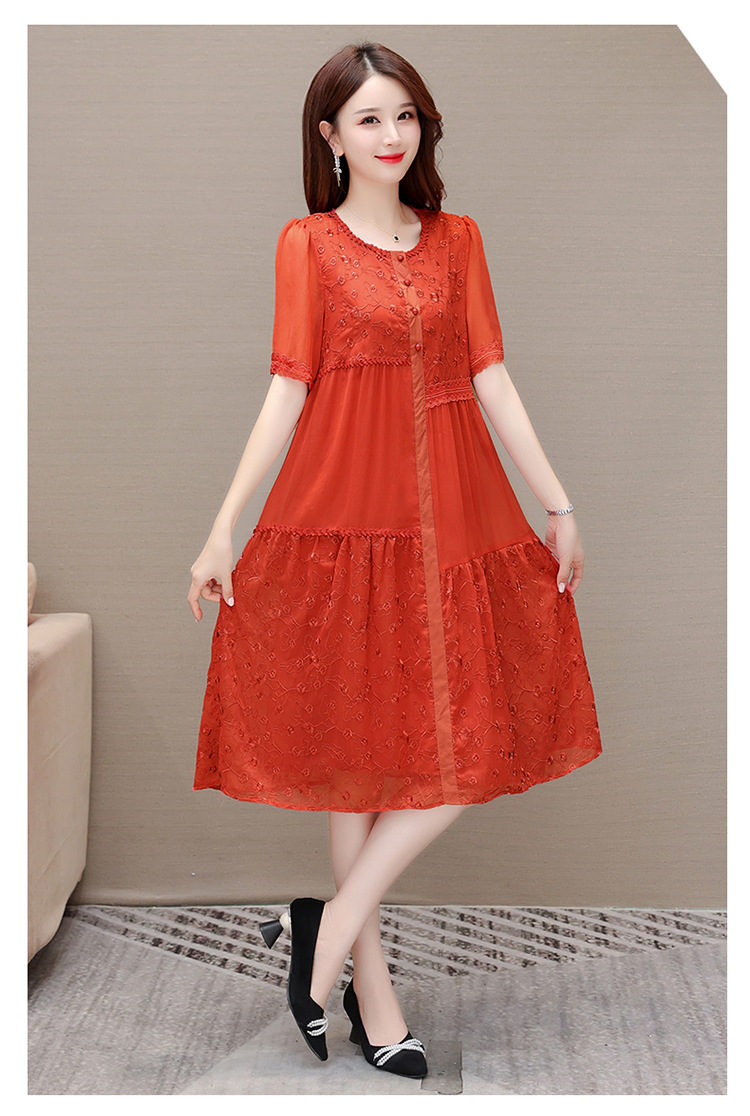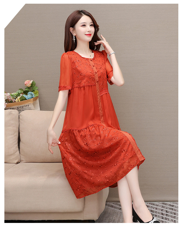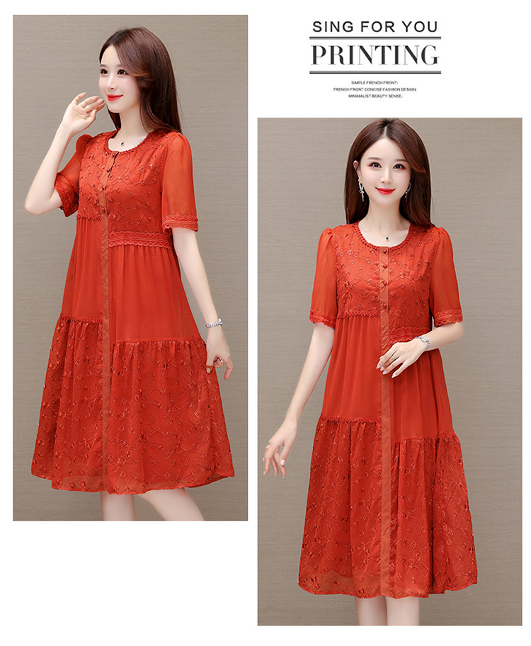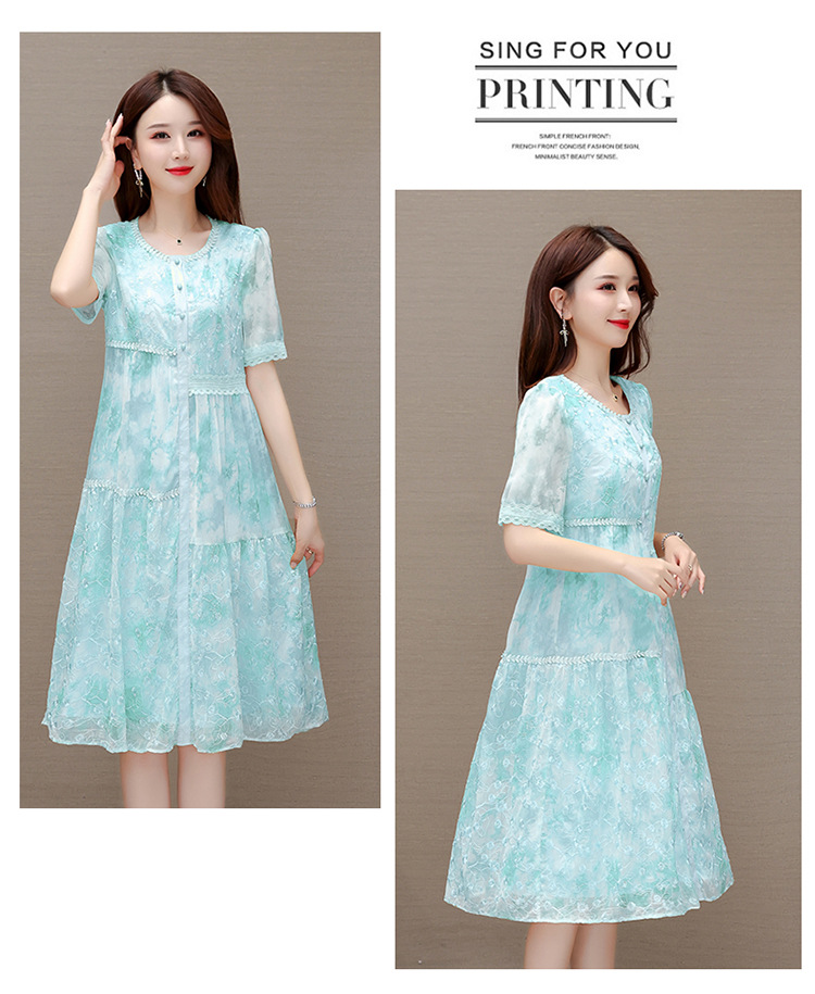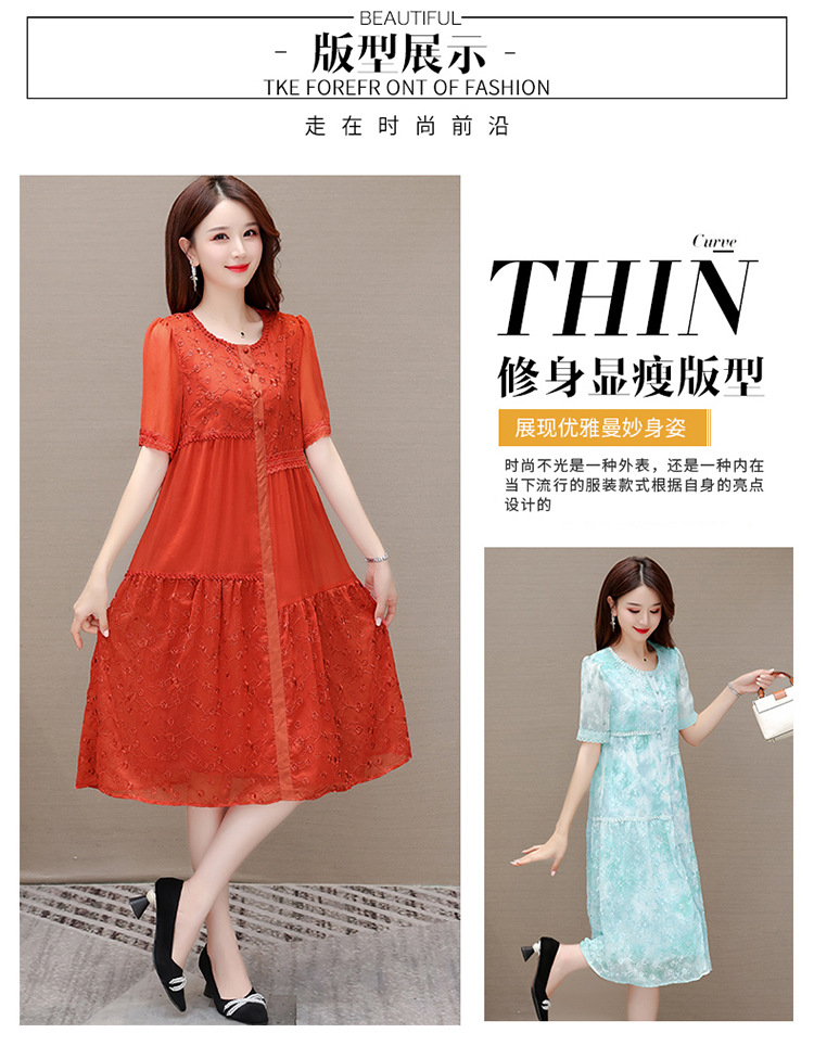 重工刺锈花裙子,夏季新款短袖裙结结中长款宽松休闲裙QYM-XY-23HDA30-Y