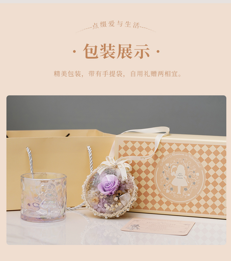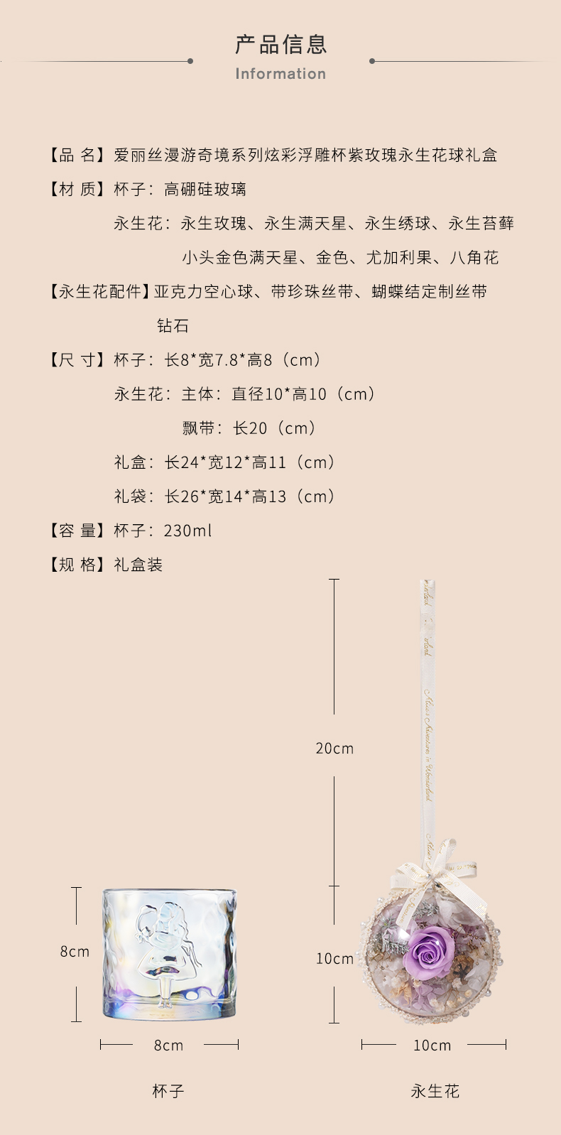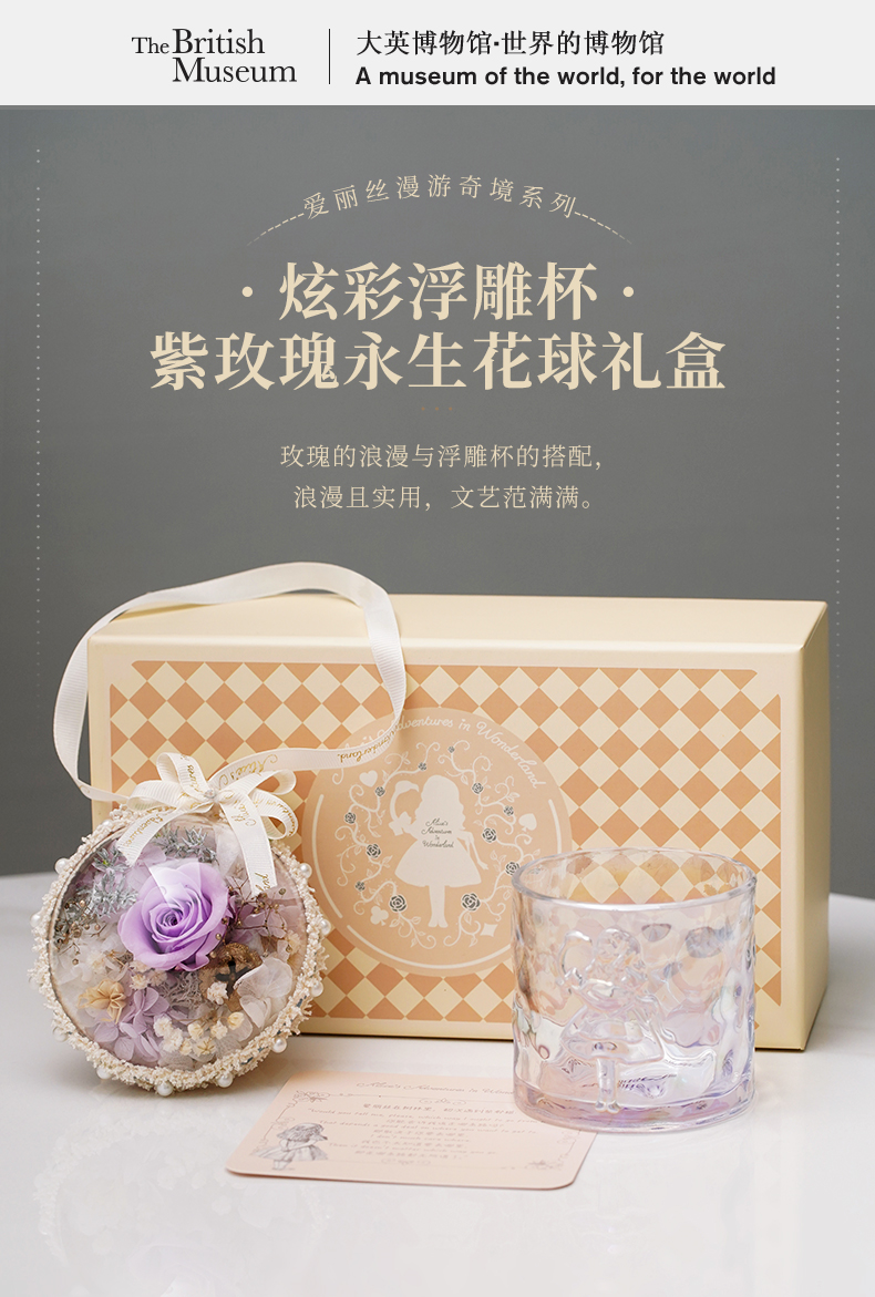 大英博物馆爱丽丝漫游奇境系列炫彩浮雕杯紫玫瑰永生花球礼盒