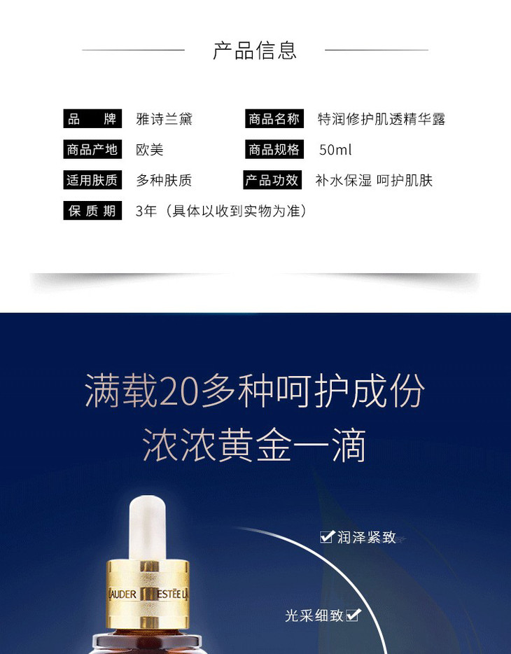 【女神狂欢嗨购】(一般贸易)雅诗兰黛小棕瓶全新第七代正装100ml特润精华 买一送一